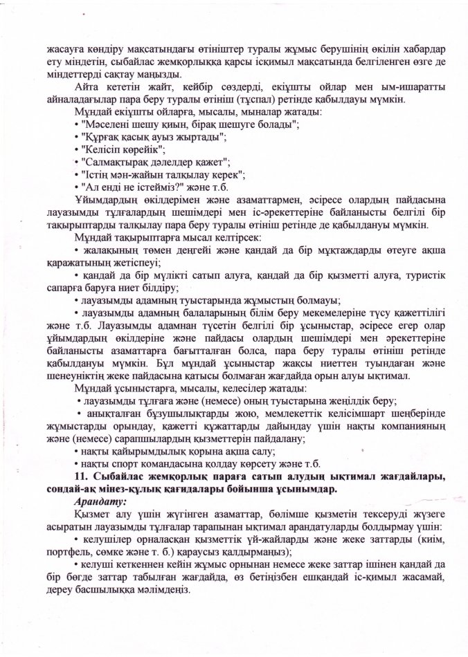 » » » Казақстан Республикасының пара алу және беру әрекеттері заңғы қайшы