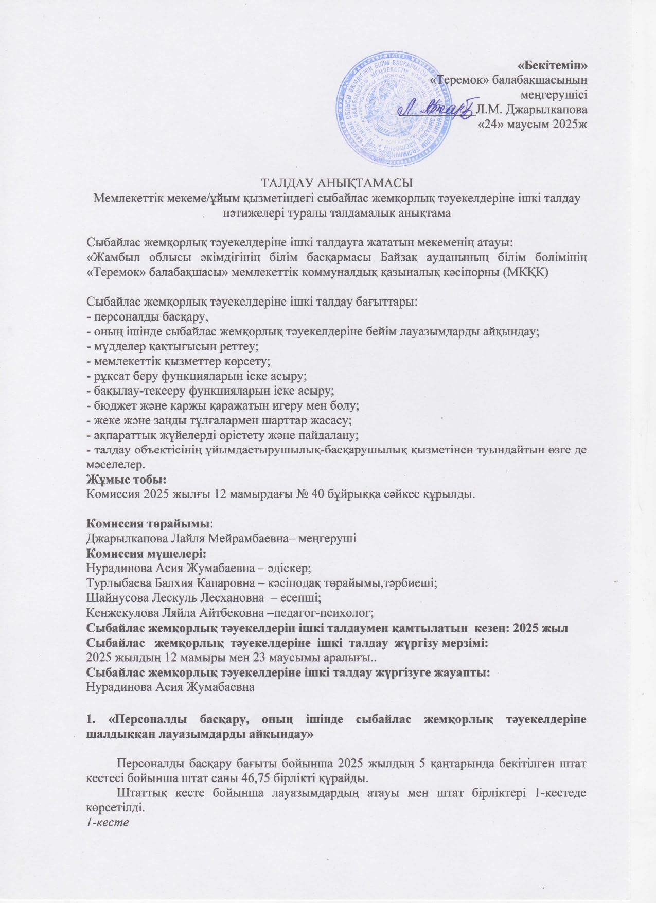 24 июнь 2025 0 1 2 3 4 5 Сыбайлас жемқорлық тәуекелдеріне ішкі талдау нәтижелері туралы талдамалық АНЫҚТАМА