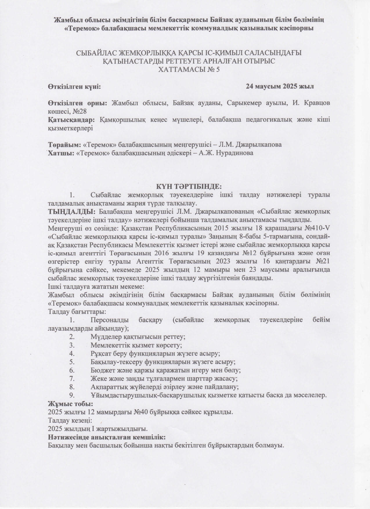 24 июнь 2025 0 1 2 3 4 5 Сыбайлас жемқорлық тәуекелдерін ішкі талдау нәтижелерін жария талқылау ХАТТАМАСЫ
