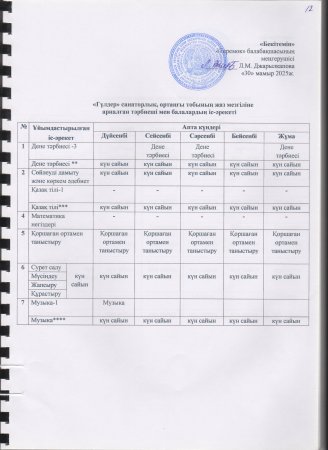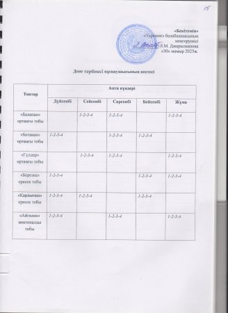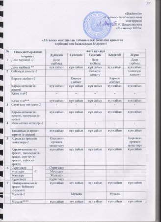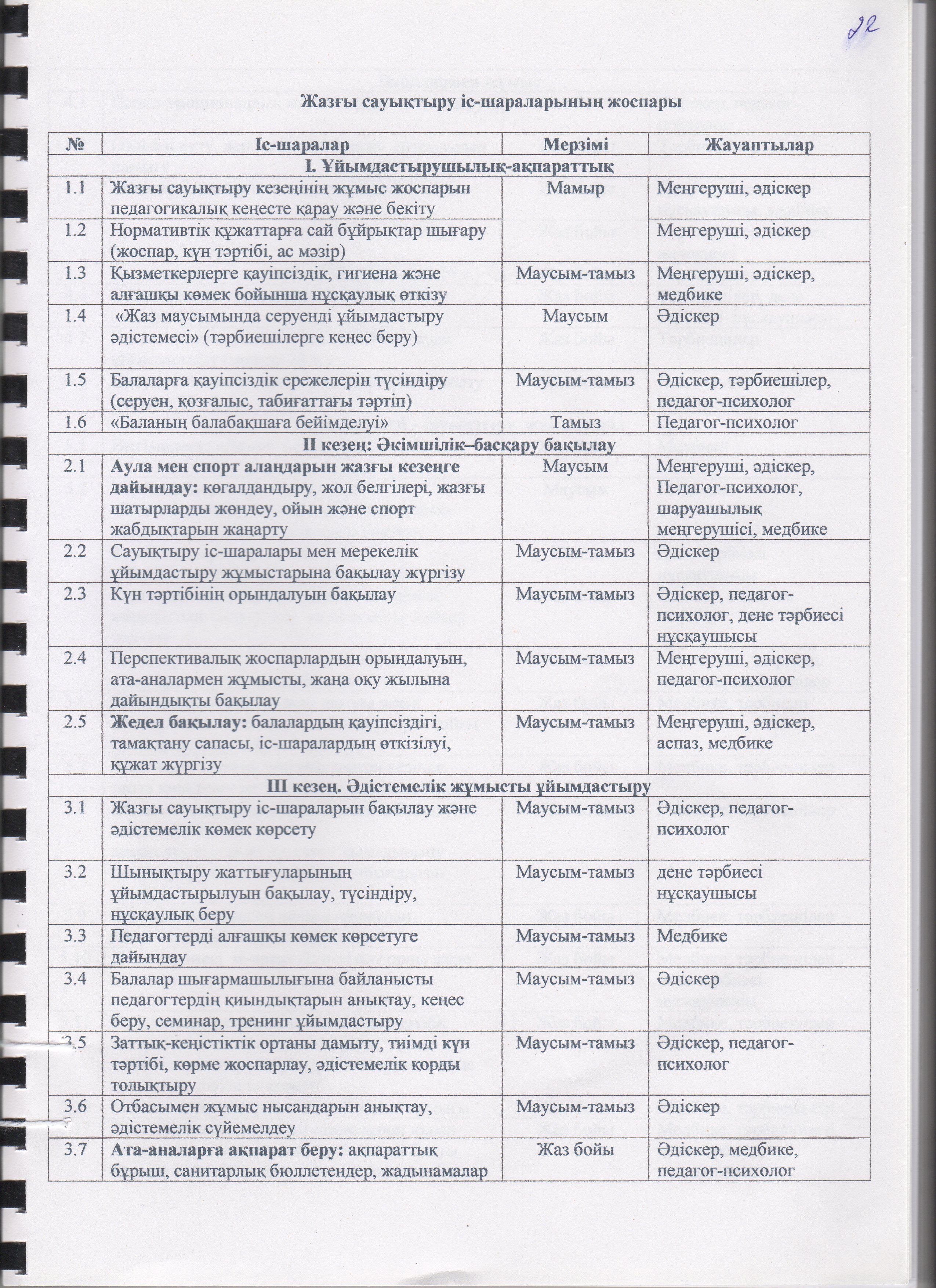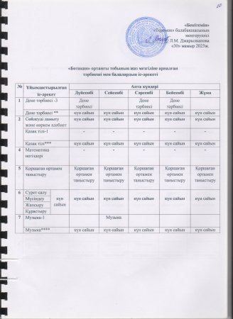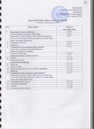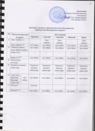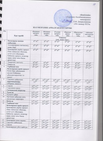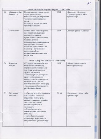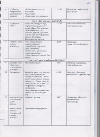 Жаз мезгілінің тәрбие мен оқытудың сауықтыру жұмыс жоспары