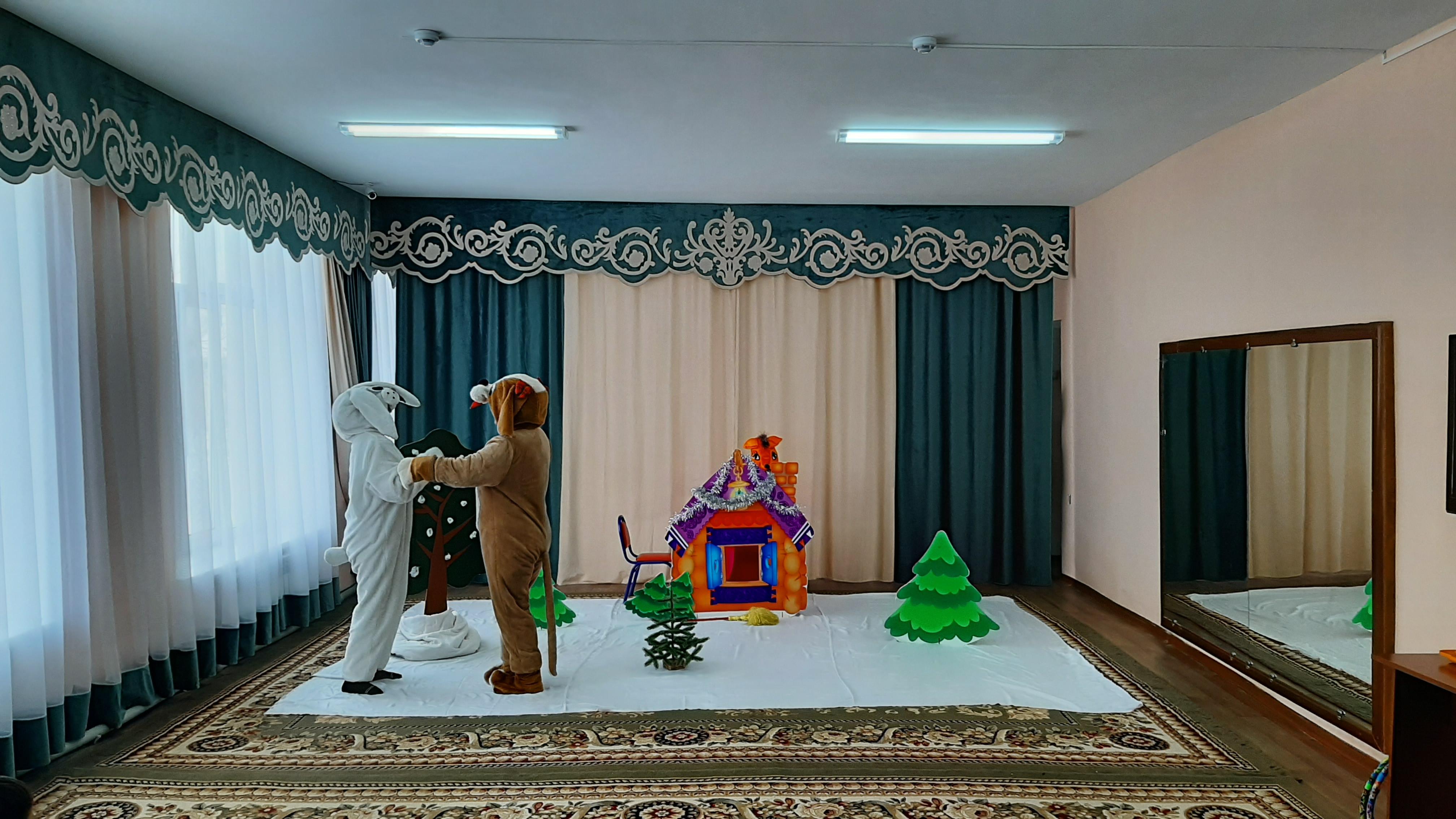 Тәрбиешілердің ұйымдастырған сахналық қойылымы "Түлкі мен қоян"