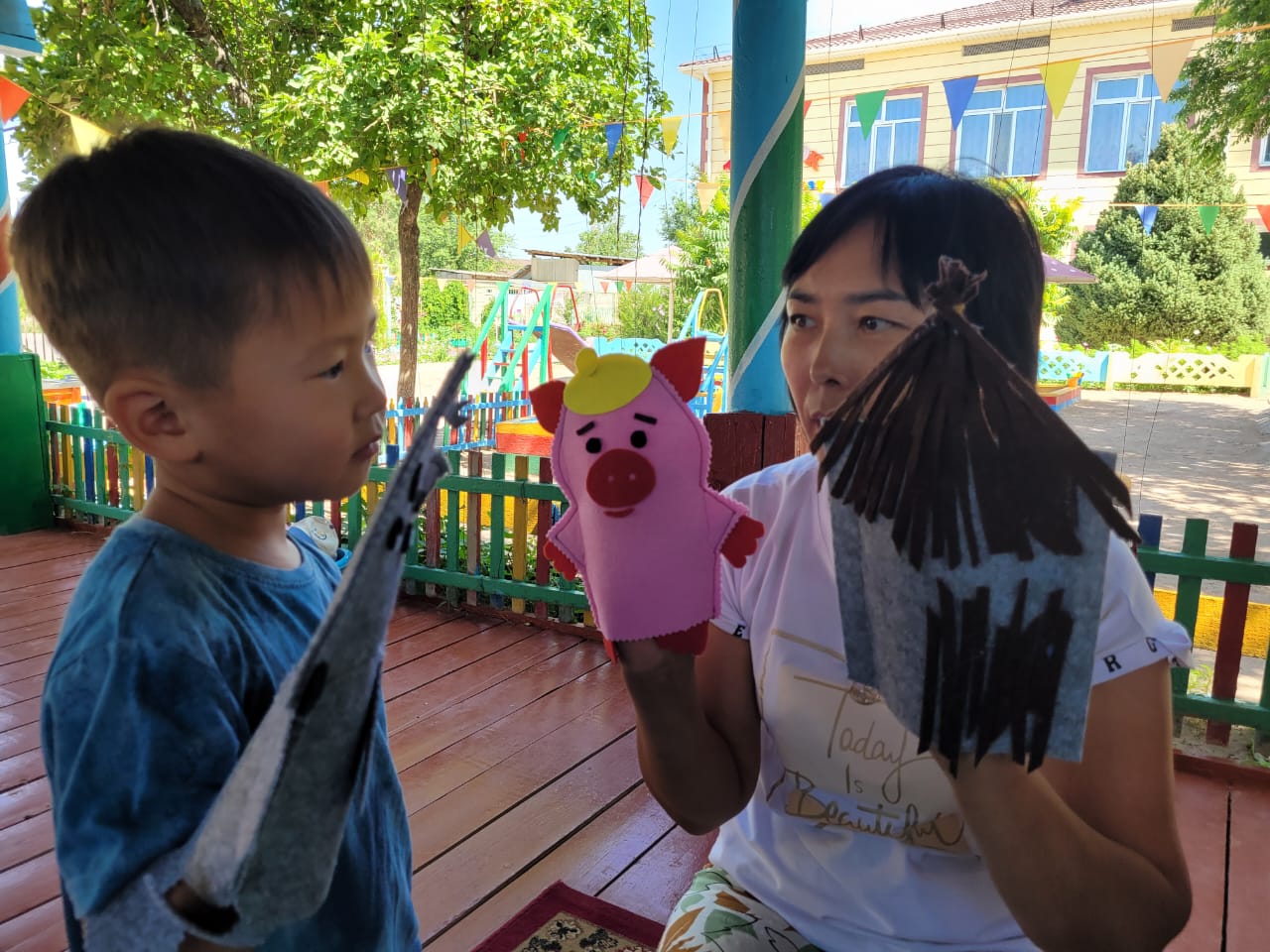 26.06.2023 ж. күні "Өнер апталығы" апталығы өткізілуде. Апталықтың жоспарына сай педагогтер қолғап театры арқылы «Үш торай » ертегісін сахналады. Сахналау барысында балалар кейіпкерлердің жағымды және жағымсыз қасиеттері мен олардың әрекеттерін танып, оларды атай білді. Сонымен қатар балалар ертегі мазмұны бойынша өздері де сахналап, қойылған сұрақтарға жауап берді.