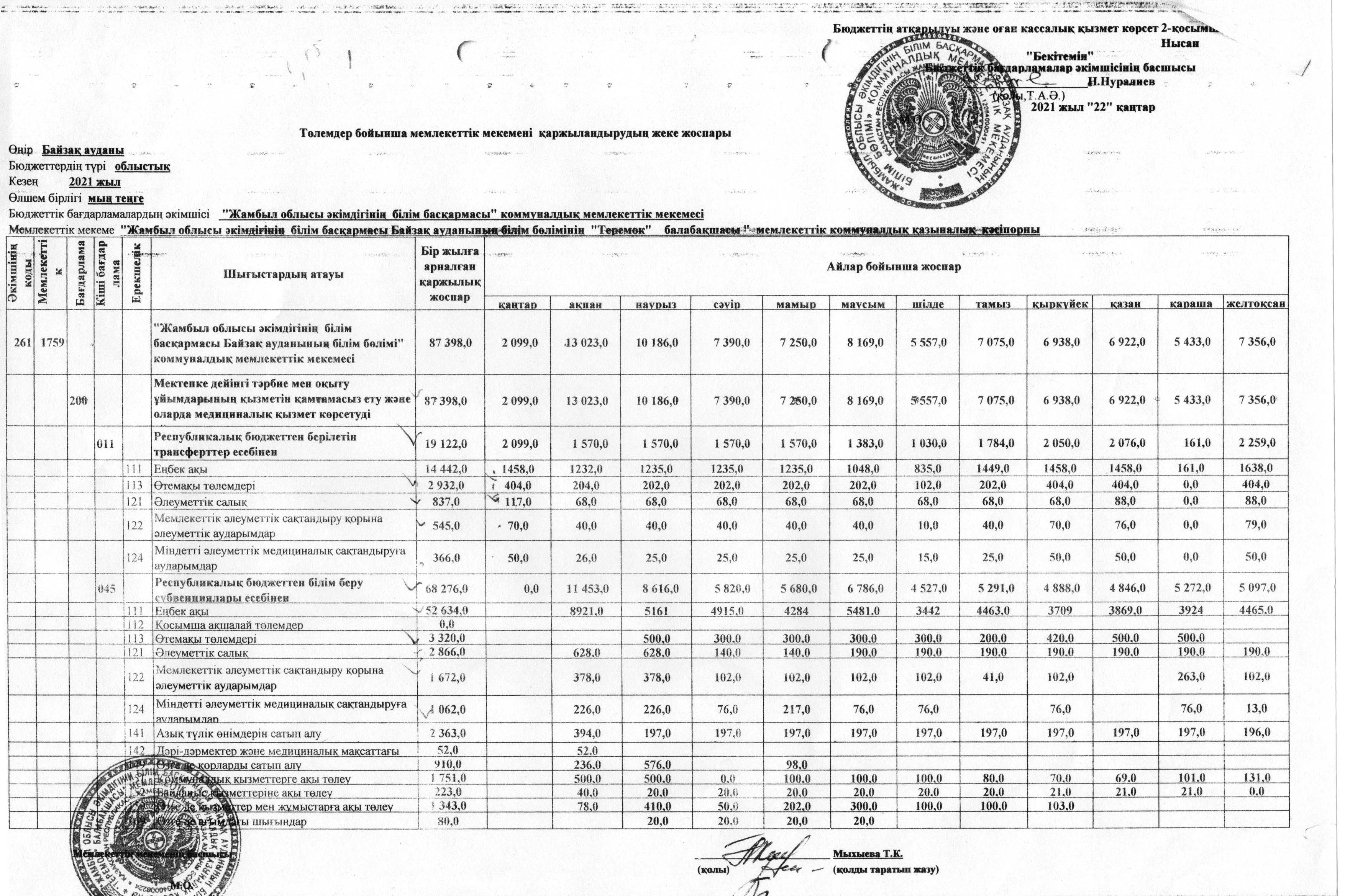 02 апрель 2021 0 1 2 3 4 5 Төлемдер бойынша мемлекеттік мекемені қаржыландырудың жеке жоспары Төлемдер бойынша мемлекеттік мекемені қаржыландырудың жеке жоспары