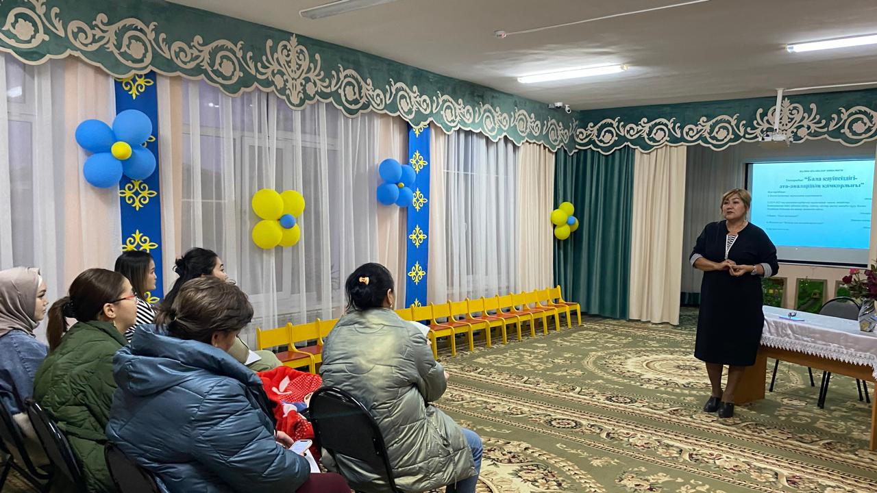 “Бала қауіпсіздігі - ата-аналардың қамқорлығы” тақырыбында жалпы ата-аналар жиналысы өтті. Меңгеруші Т.К.Мыхыева жиналыстың күн тәртібіндегі мәселелерді таныстыра отырып, балабақшадағы қазіргі кезде жүргізіліп жатқан жұмыстарды ата-аналарға айтып өтті. Балаларды балбақшаға күнделікті қабылдаудың жаңа ережесімен таныстырды. Педагог-психолог Л.А. Кенжекулова “Бала қауіпсіздігі” тақырыбында ата-аналарға кеңес беріп, тренинг ұйымдастырды. Ата-аналар тренингке белсене қатысты. Ата-аналар “Көңілді сәлемдесу” түрінде кіріп, жиналысқа жағымды сезім мен эмоция қалыптасты. Әдіскер А.Ж. Нурадинова “Балалардың жолдағы қауіпсіздігі” тақырыбында жадынама таратты. Жиналыста әртүрлі балабақшаға қатысты сұрақтар қаралды.