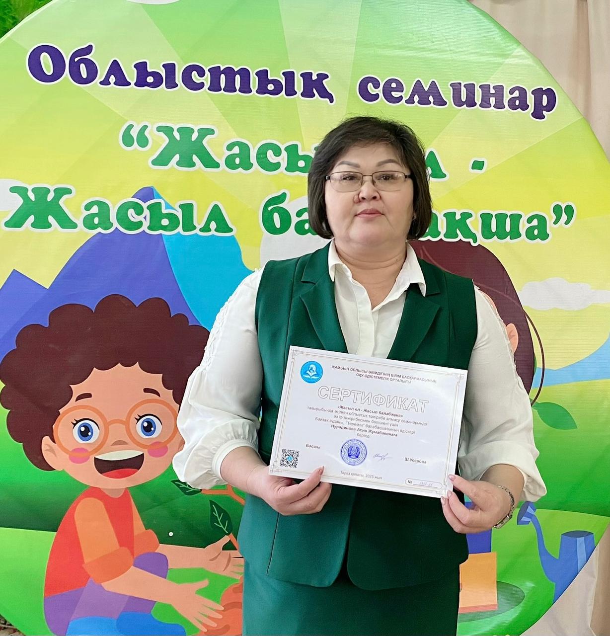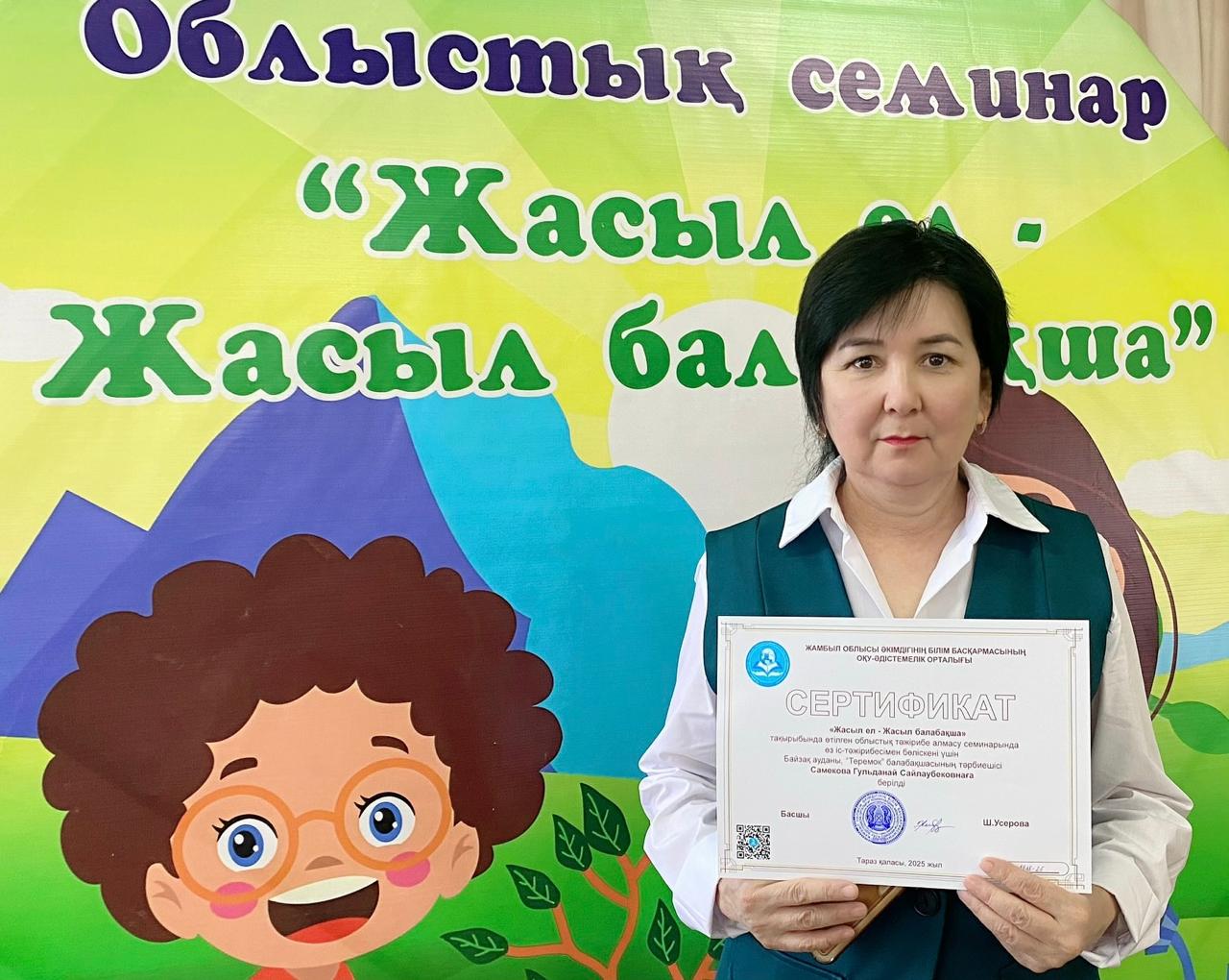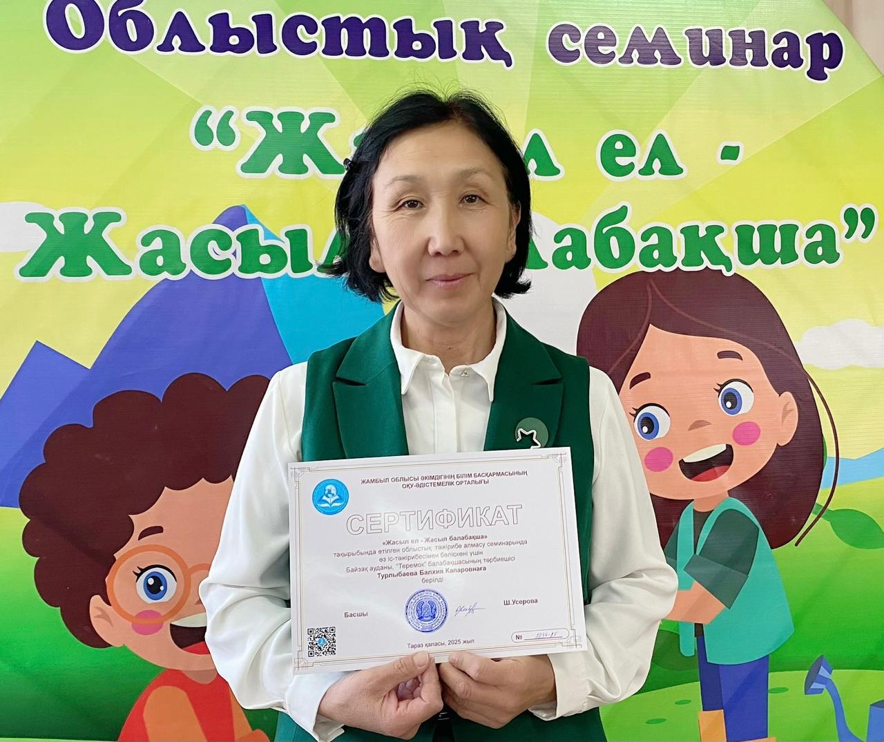 21.11.2025ж. күні Жамбыл облысы әкімдігінің оқу-әдістемелік орталығының ұйымдастыруымен «Теремок» балабақшасында «Жасыл ел-Жасыл балабақша» тақырыбында облыстық тәжірибе алмасу семинары өткізілді. Семинарда «Жасыл балабақша» желісін көбейту, мектепке дейінгі ұйымда тәрбиеленушілердің экологиялық мәдениетін қалыптастыру және экологиялық сауаттылықты арттыру жолдары көрсетіліп, педагогтер тиімді әдіс-тәсілдерін ұсынып, іс-тәжірибелерімен бөлісті.