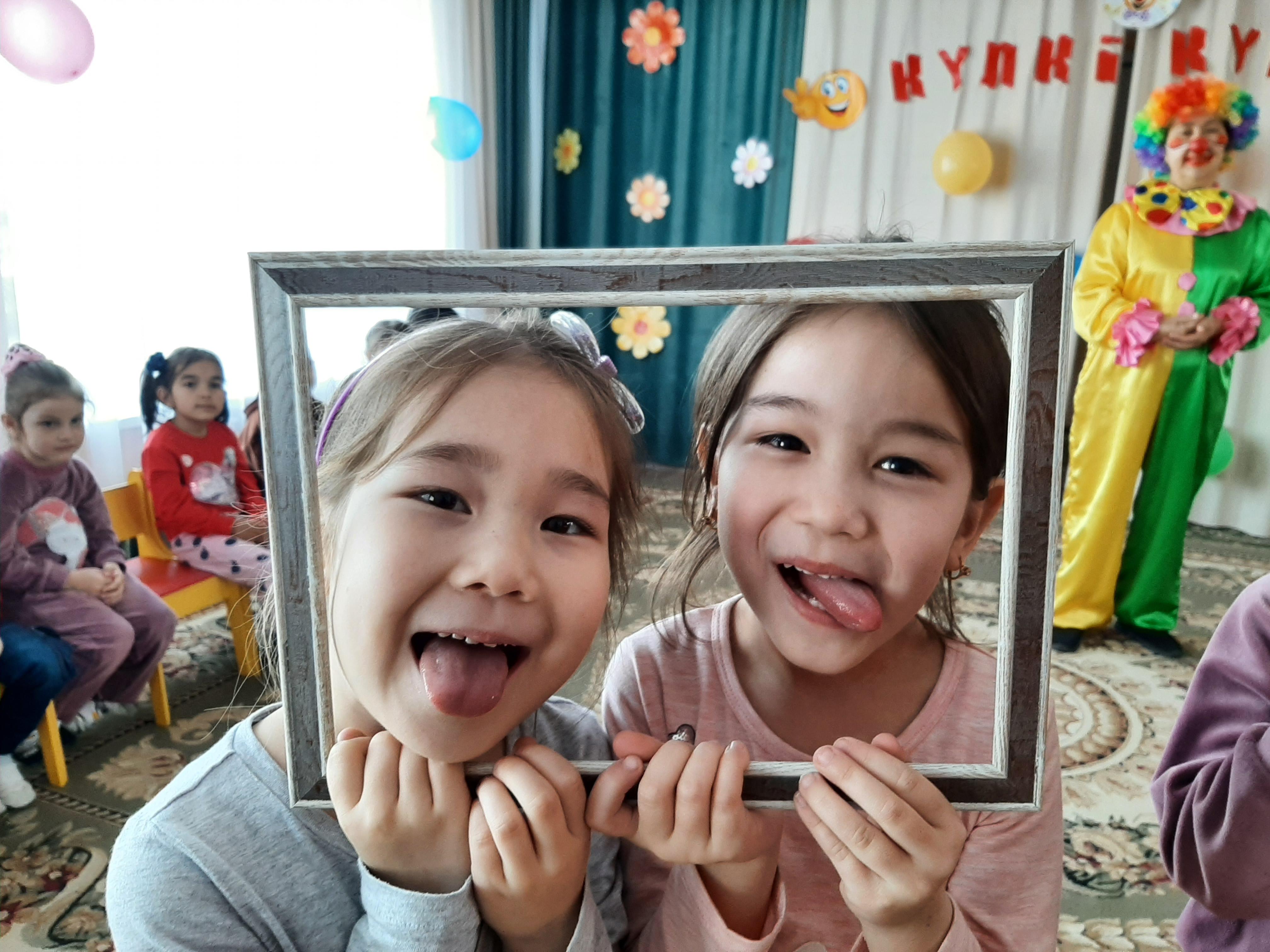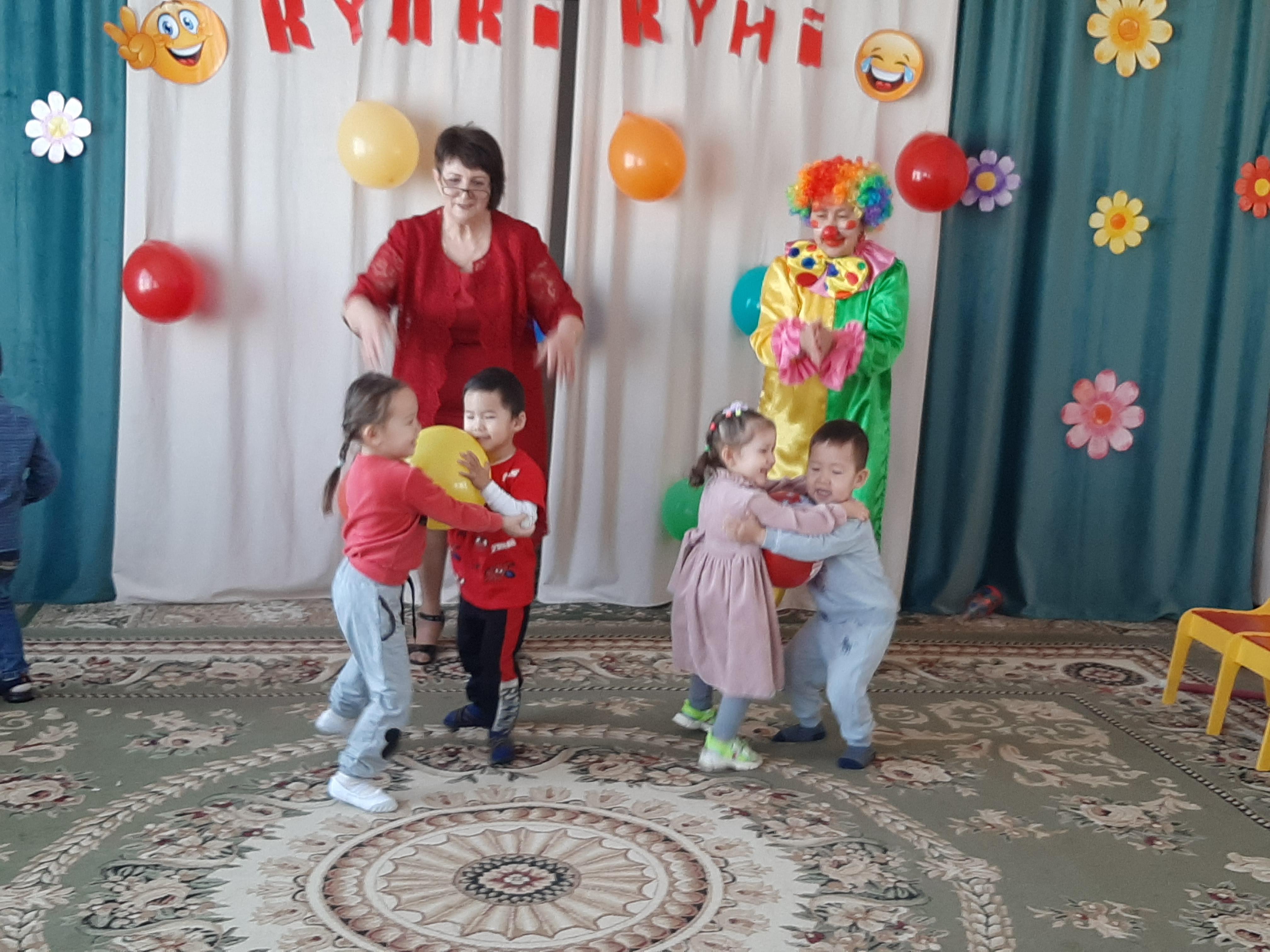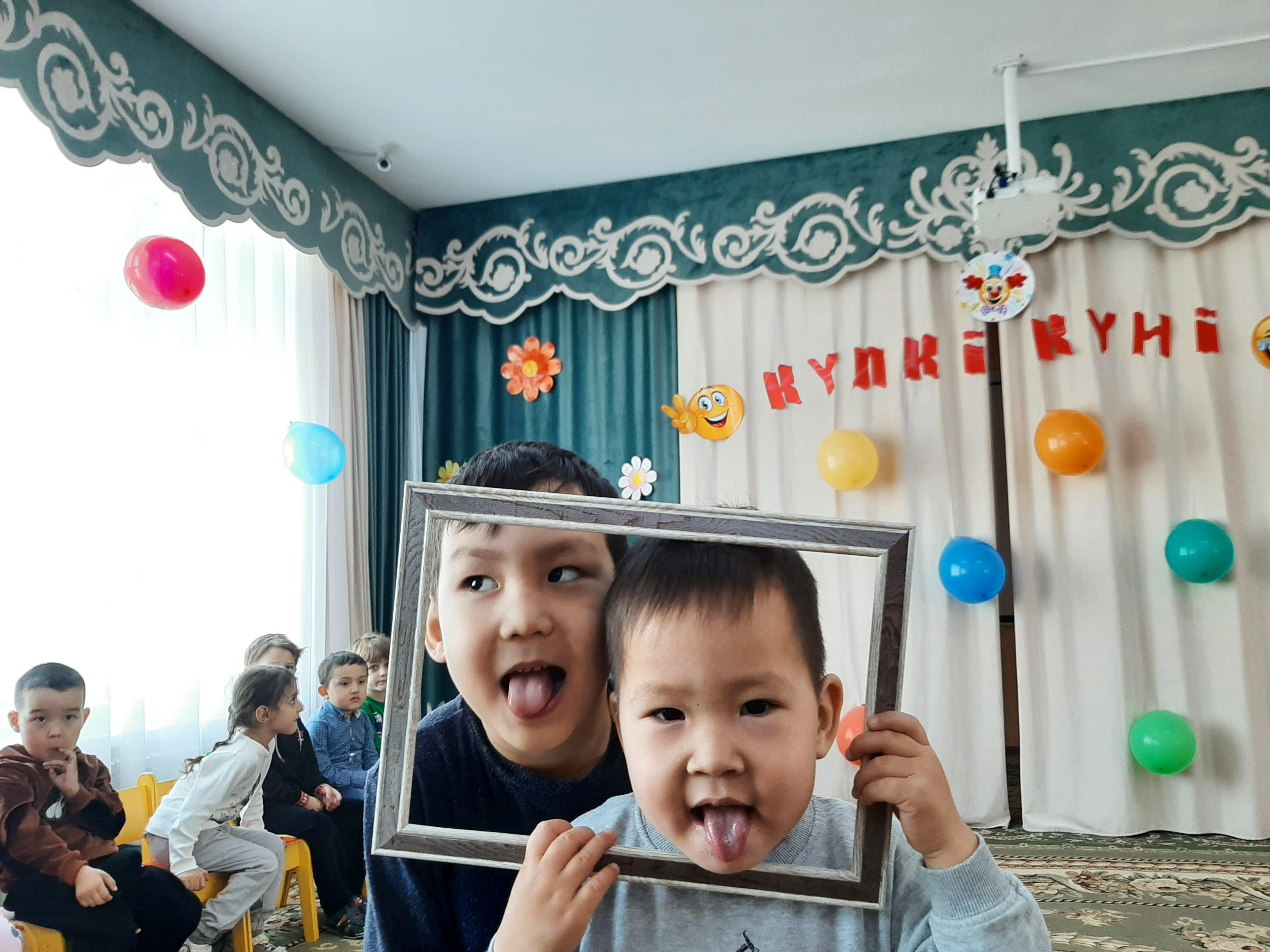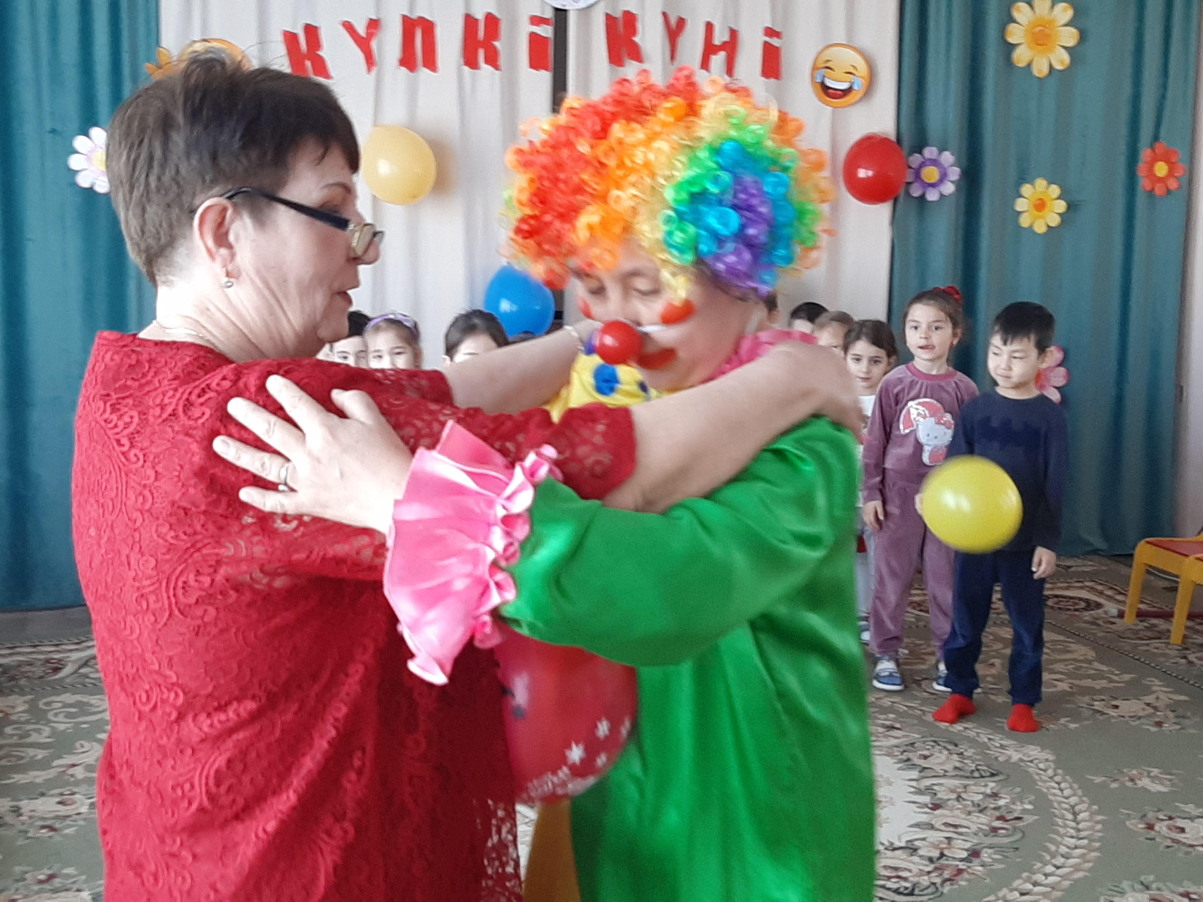 1-сәуір күлкі күнінде "Березка" ересек тобы тәрбиешілері Сапрыкина Галина, Куанышбекова Акжибек "Кел, балалар күлейік!" ойын-сауығын өткізді. Балалар әртүрлі ойындар ойнап, көңіл көтерді. Түрлі көңіл күй түрлерін көрсетті. Балаларға ойын-сауық қатты ұнады.