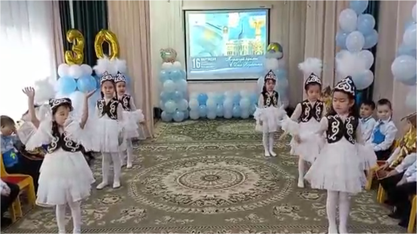 Мақсаты: Балаларды, Қазақстан Республикасының рәміздерін қастерлеуге, туған жерге деген сүйіспеншілігін арттыруға тәрбиелеу. Тәуелсіздік – еліміздің баға жетпес байлығы. Тәуелсіз – әлемдегі ең құдіретті сөз. Ел еркіндігі. Қазақстан тәуелсіздіктің бесігінде тербеліп жатқанына 30 жыл екендігін түсіндіру. Әрбіріміз үшін Отан ошақ басынан басталады: туған жер, туған көше, туған қала екендігін ұғындыру.