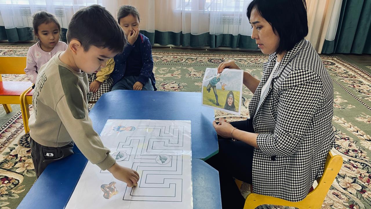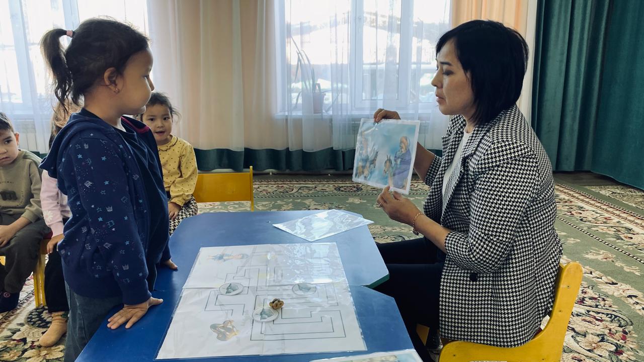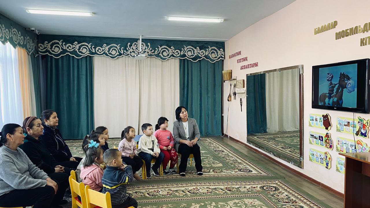 Педагог-псиолог Л.А.Кенжекулова мектепке дейінгі ұйыдармен қамтылмаған балалар үшін ата-аналарға арналған консультаиялық пункт жұмысының жоспарына сәйкес ата-аналар мен балалардың қатысуымен «Ертегіде қонақта» тақырыбында қазақ халқының ертегілері мен ауыз әдебиетінің бай мұрасымен танысуына бағытталған тәрбие жұмысын өткізді.