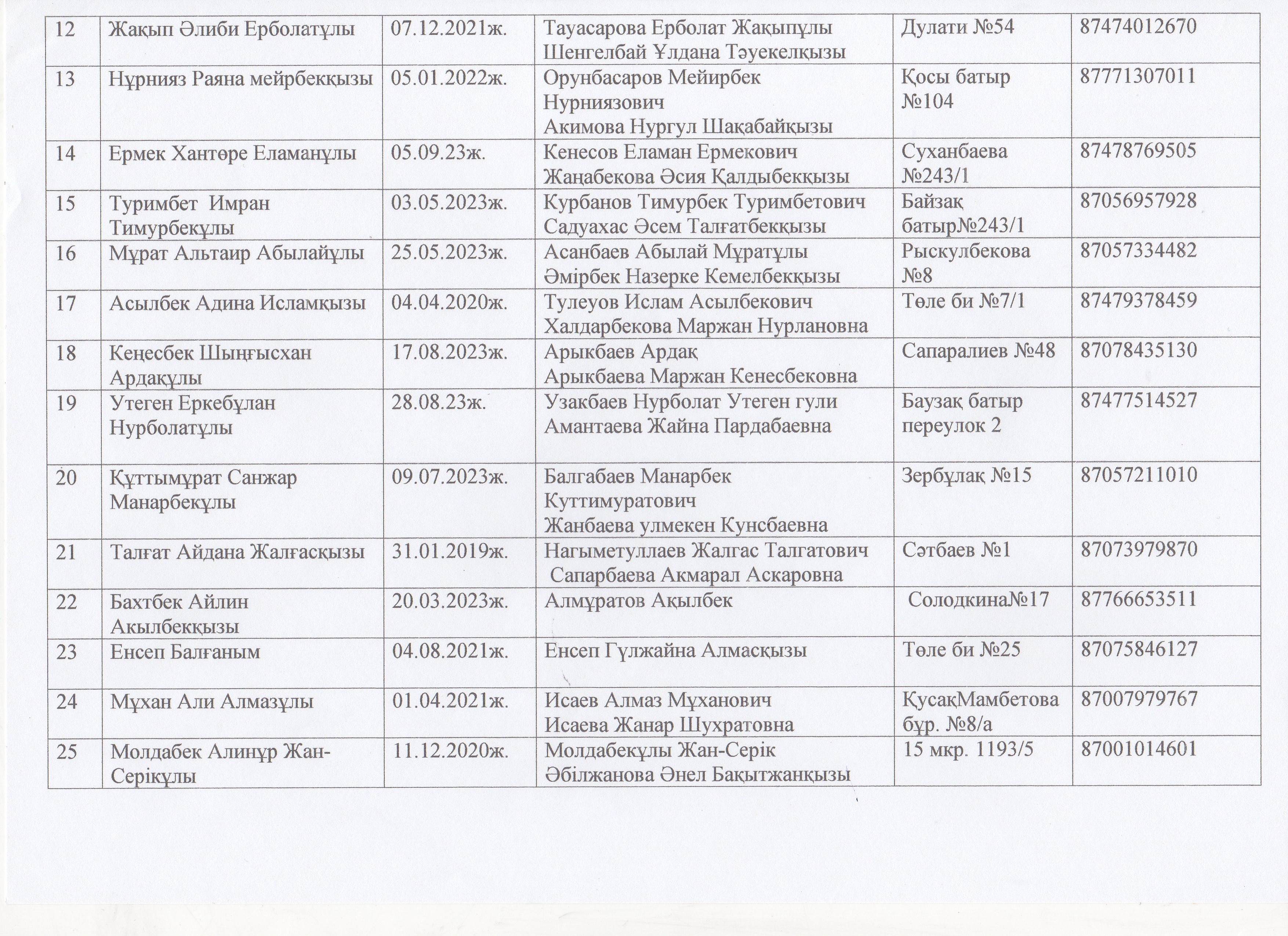 20 октябрь 2025 Балалар тізімі