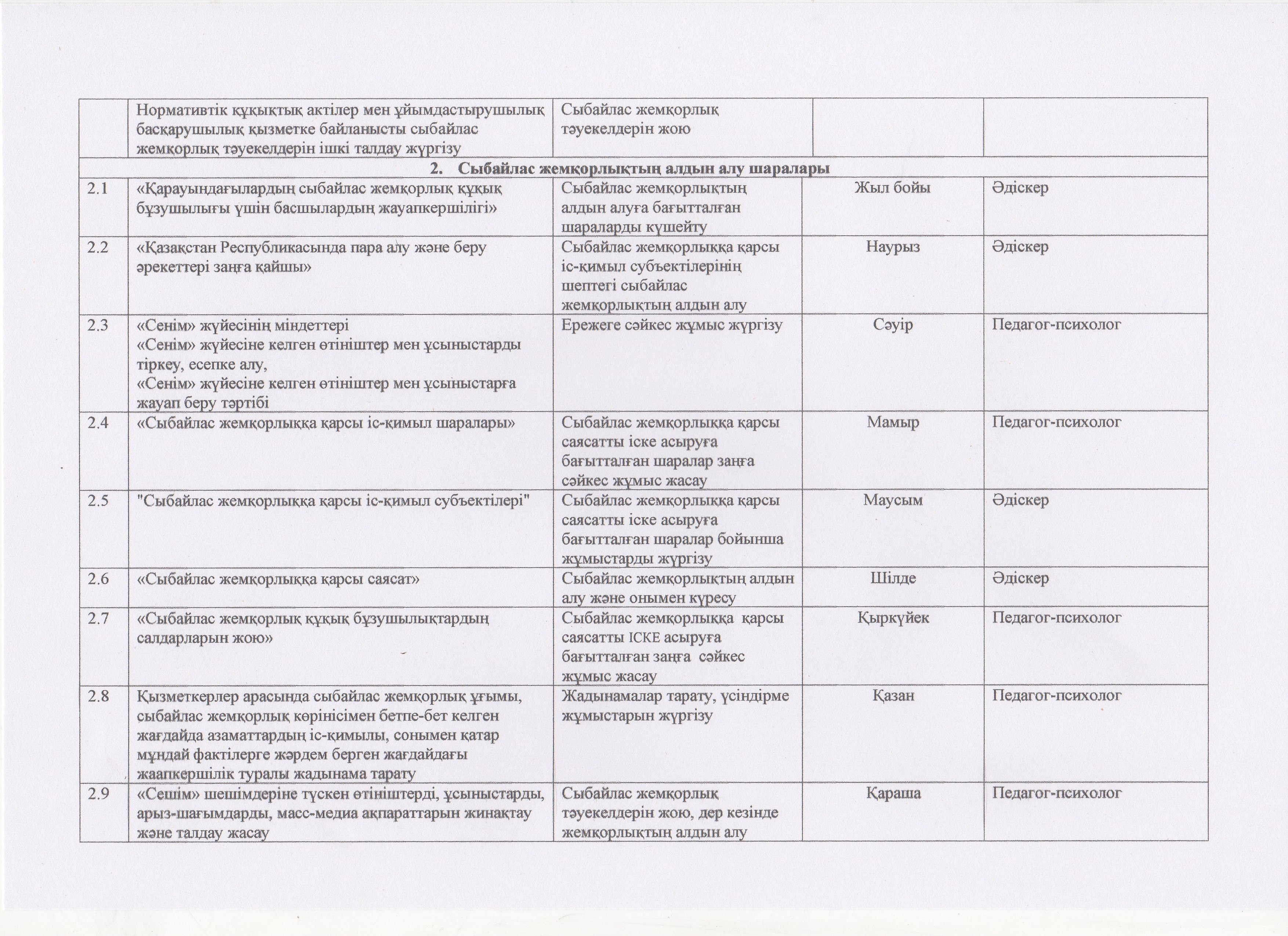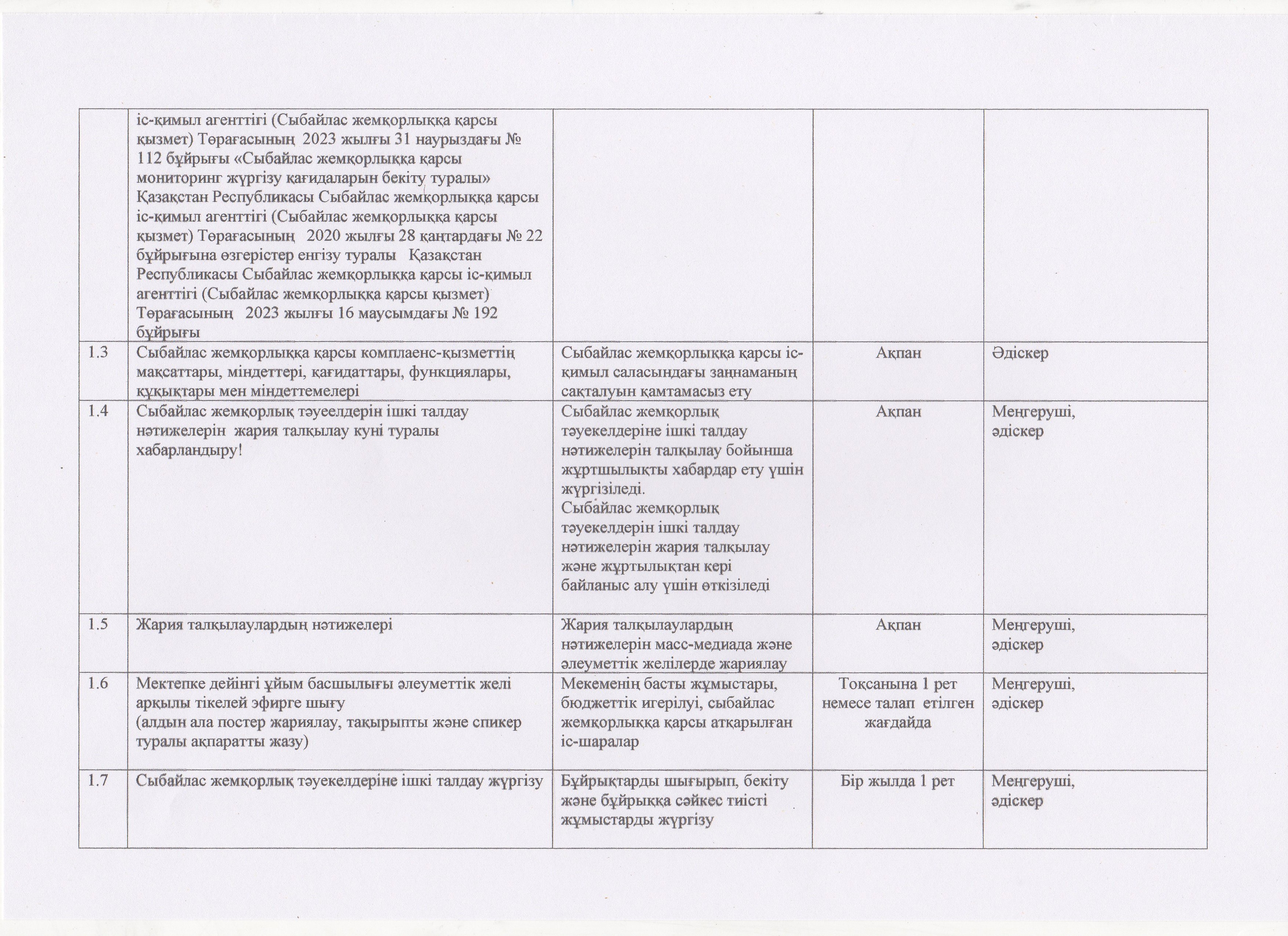 08 январь 2025 0 1 2 3 4 5 Сыбайлас жемқорлық тәуекелдеріне ішкі талдау жүргізу жөніндегі жұмыс жоспары