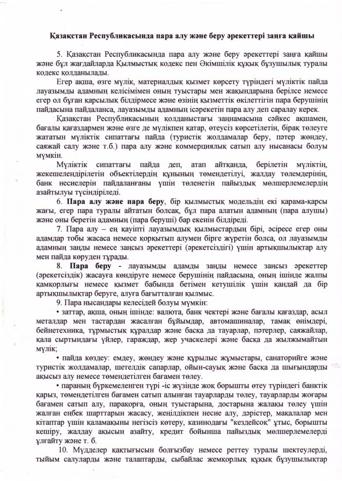 » » » Казақстан Республикасының пара алу және беру әрекеттері заңғы қайшы