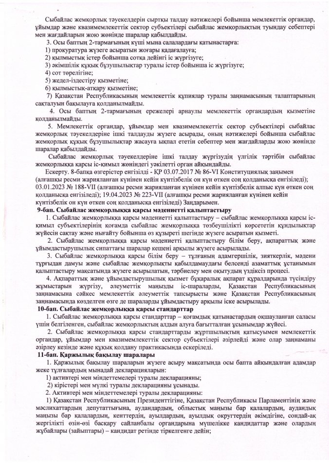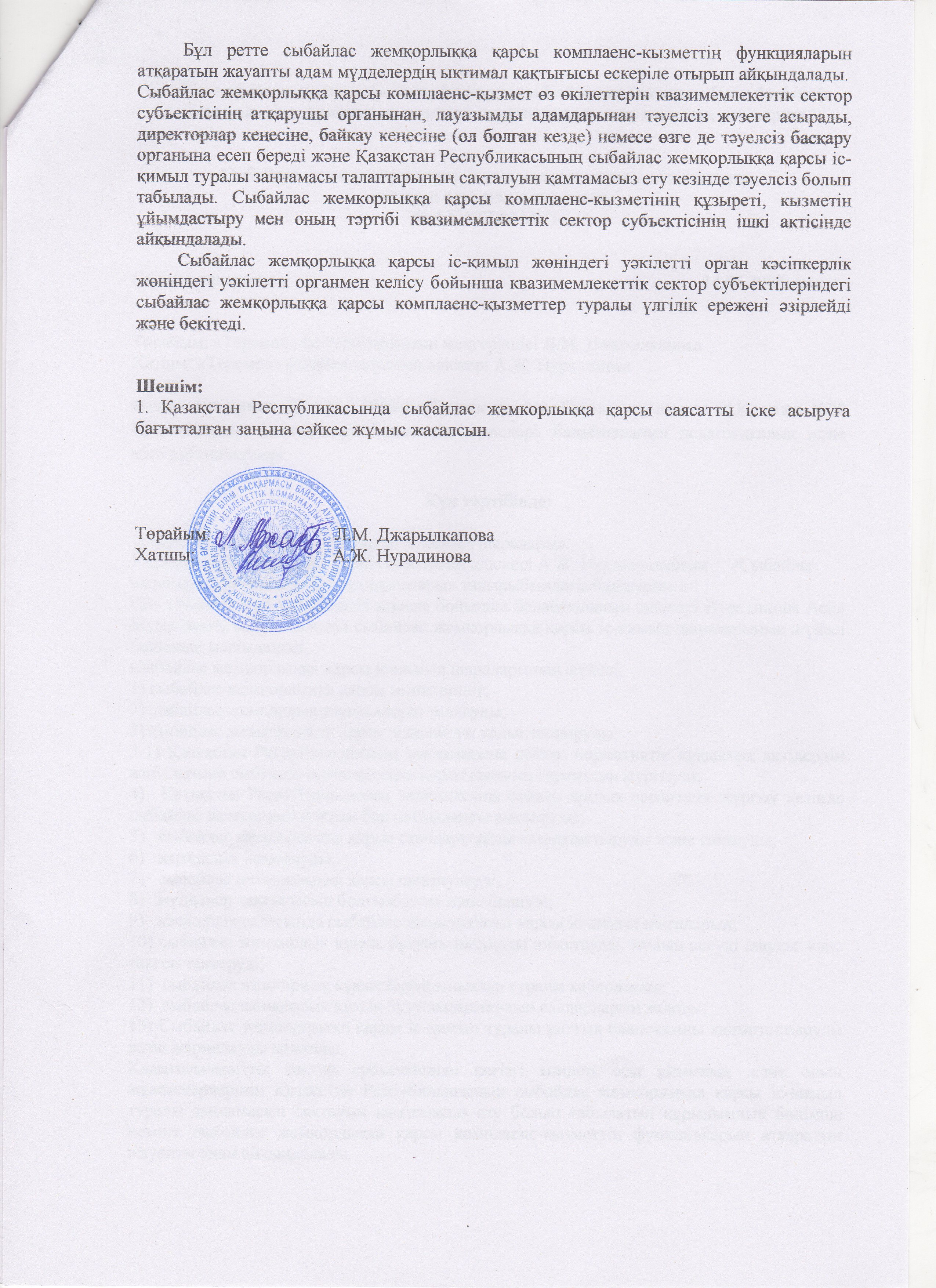 » » » «Сыбайлас жемкорлыққа қарсы ic-қимыл шаралары»