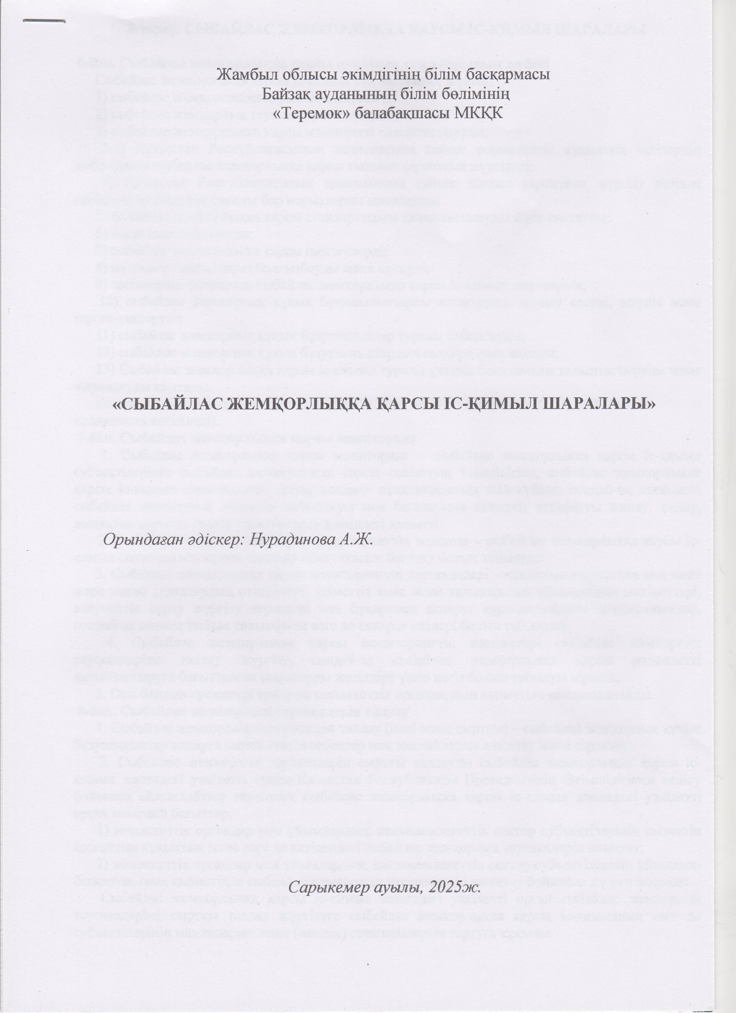 «Сыбайлас жемкорлыққа қарсы ic-қимыл шаралары» » "Теремок" балабақшасы