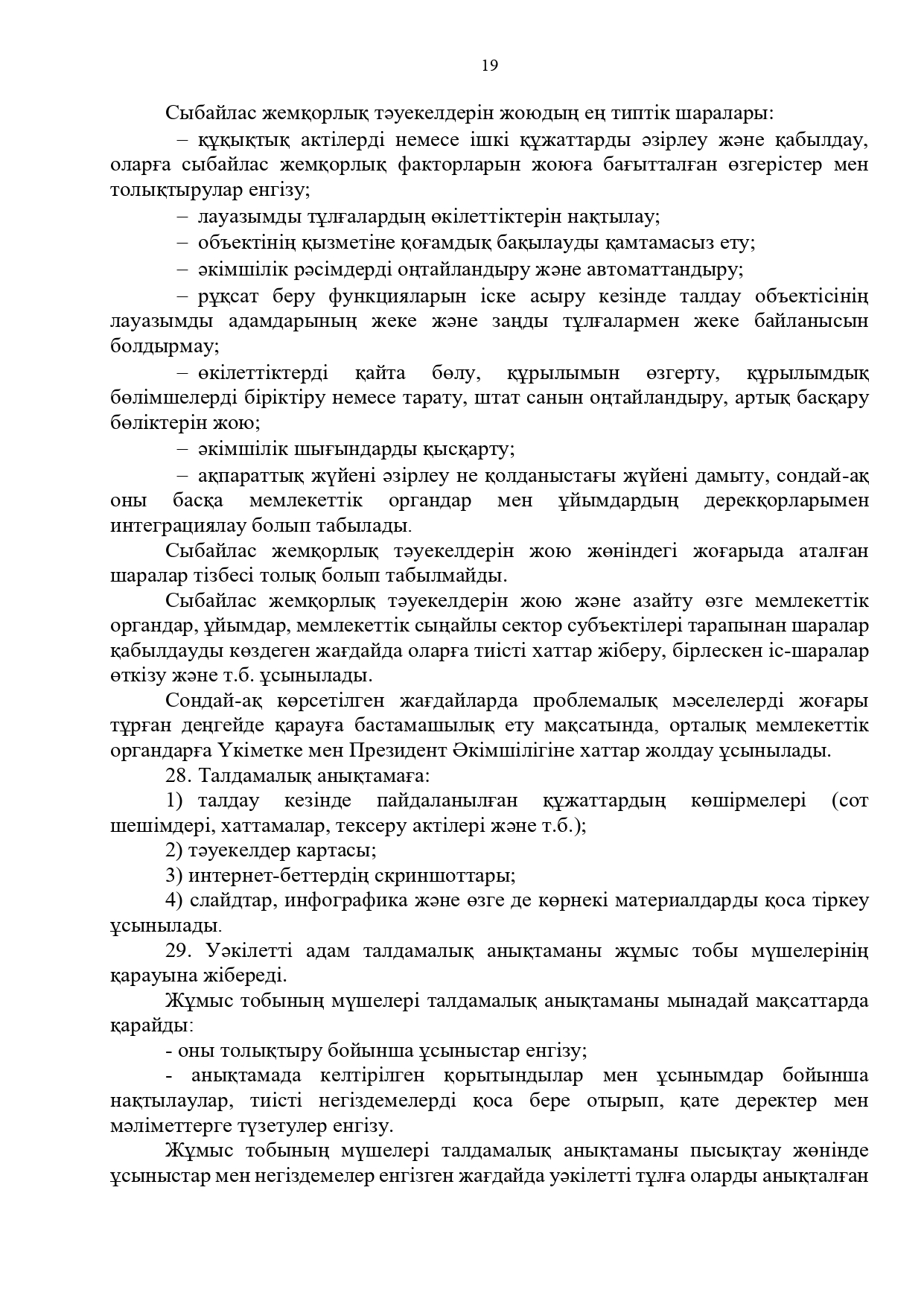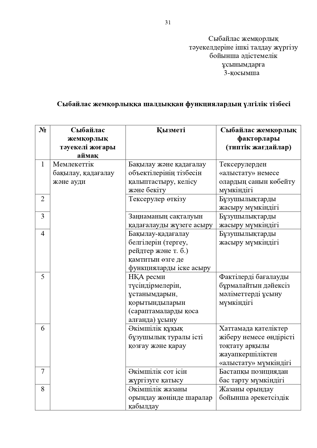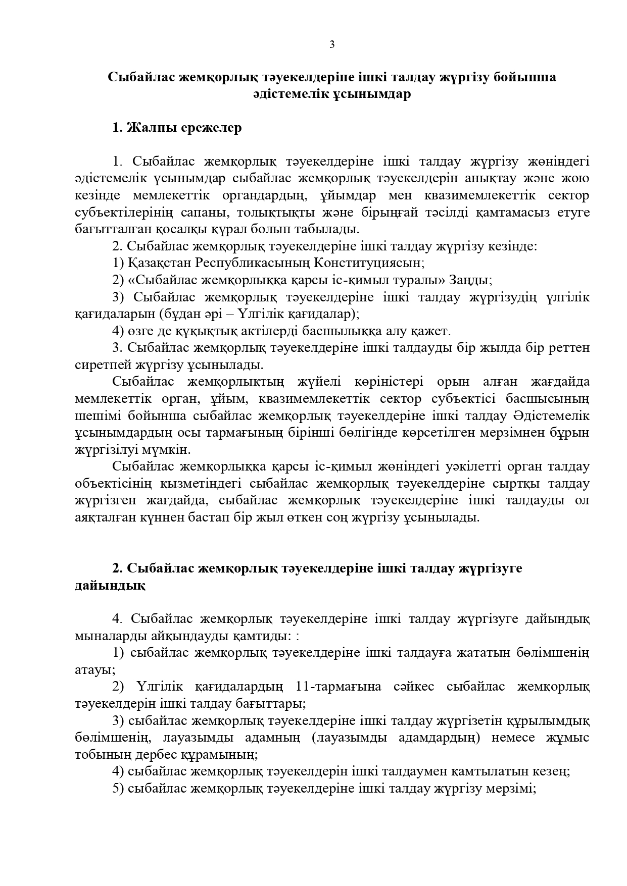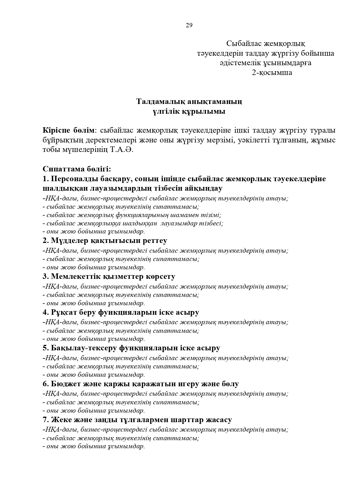 21 июль 2025 0 1 2 3 4 5 Сыбайлас жемқорлық тәуекелдеріне ішкі талдау жүргізу бойынша әдістемелік ұсынымдар