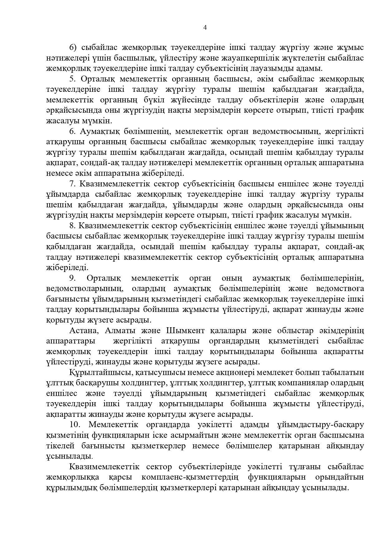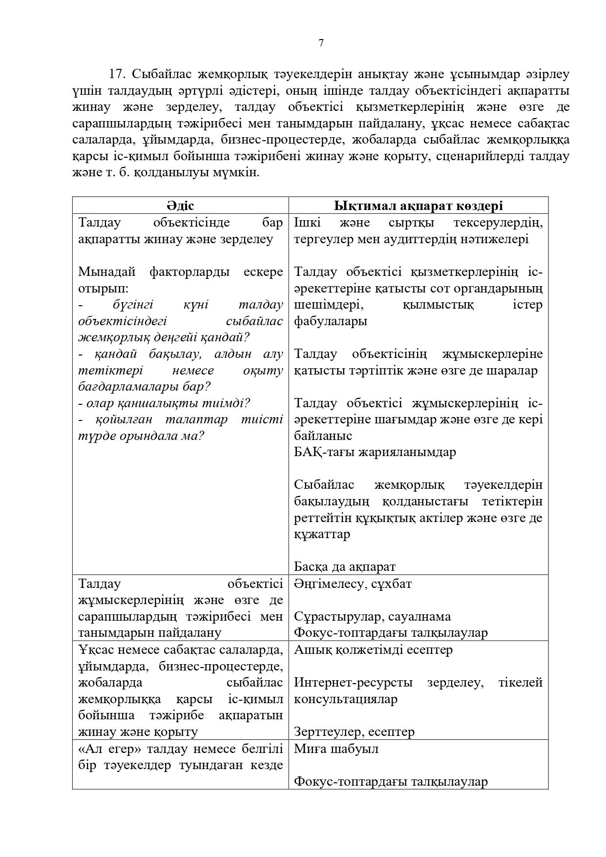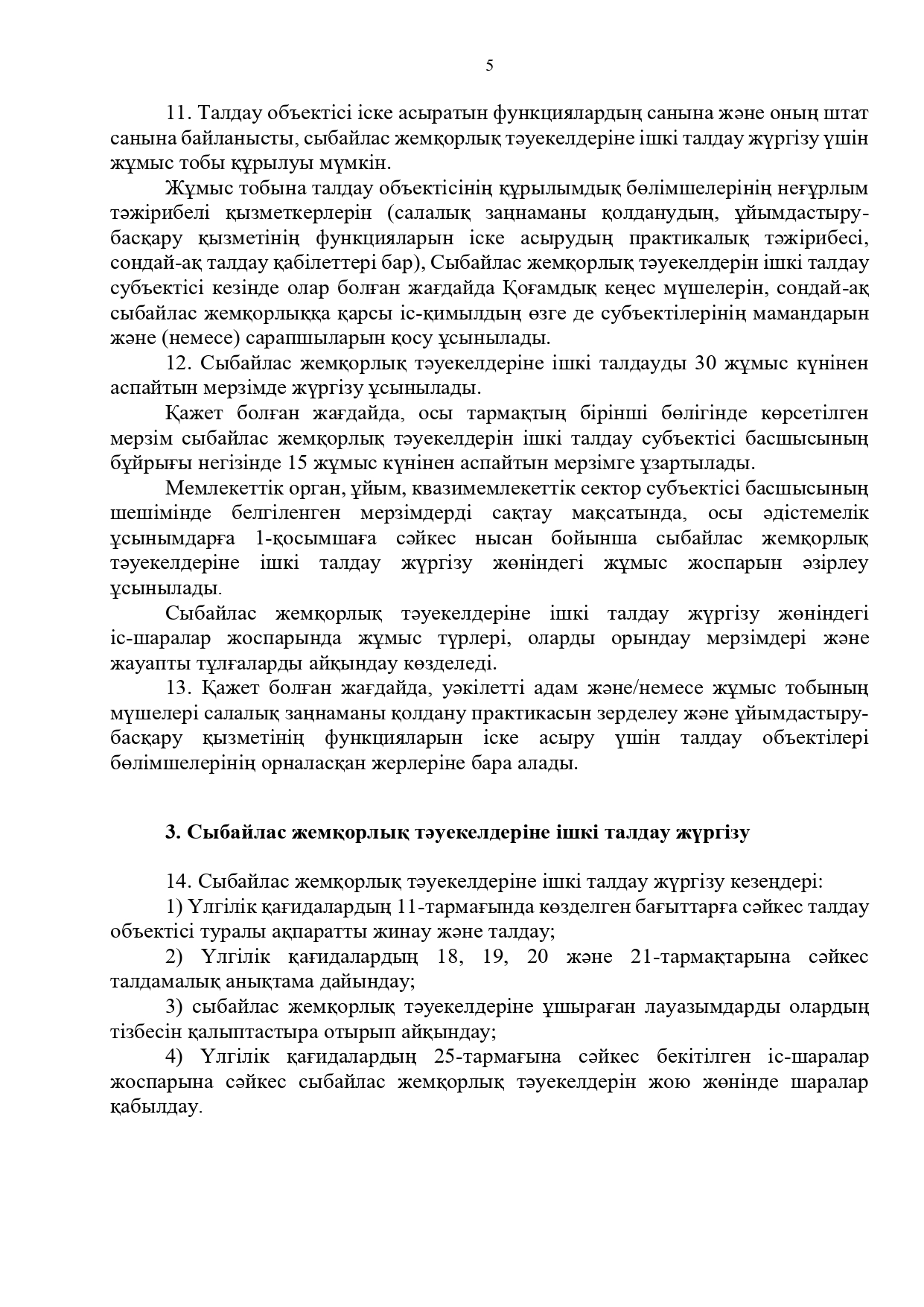 21 июль 2025 0 1 2 3 4 5 Сыбайлас жемқорлық тәуекелдеріне ішкі талдау жүргізу бойынша әдістемелік ұсынымдар
