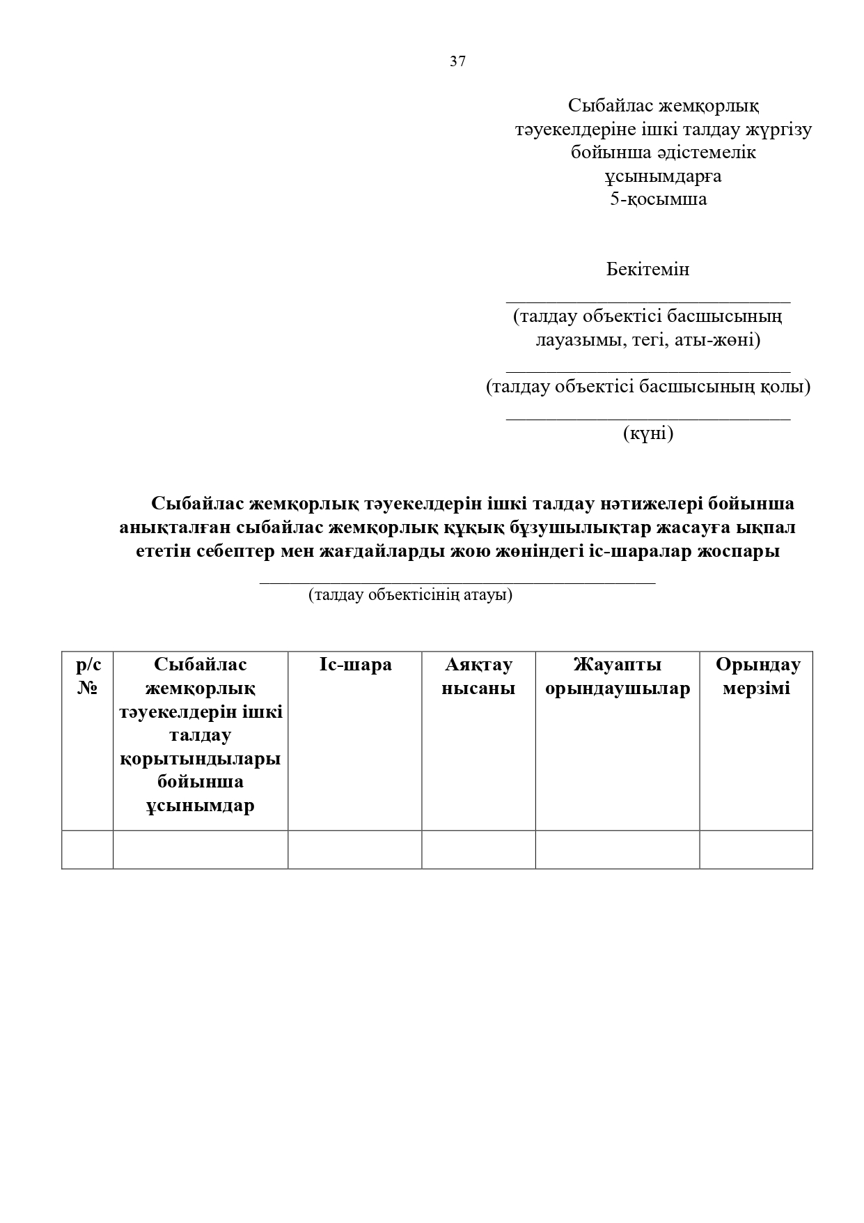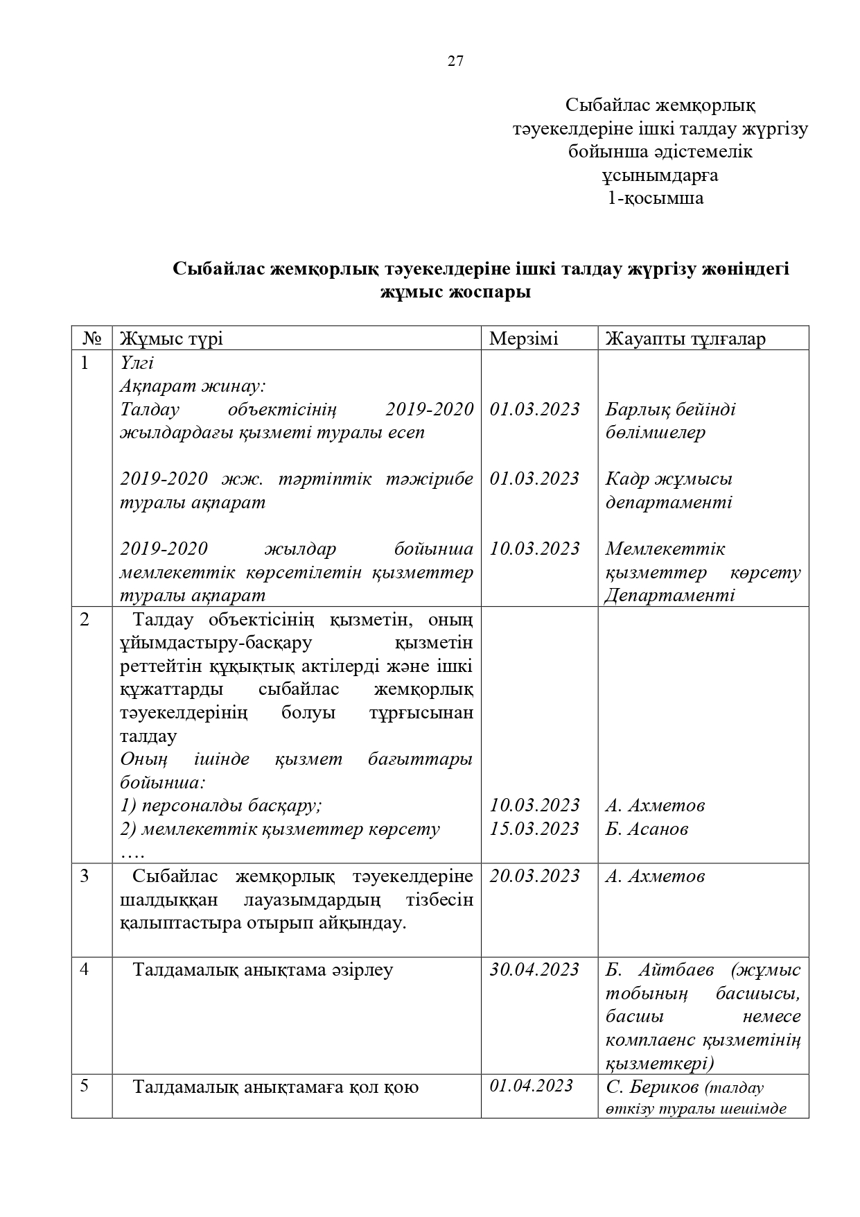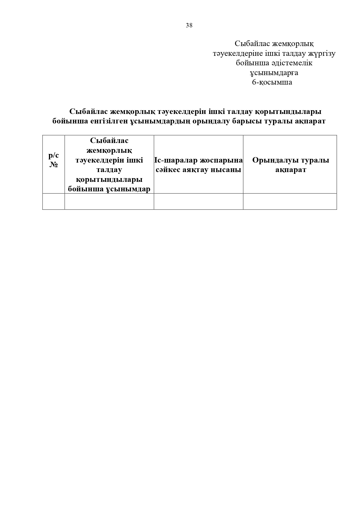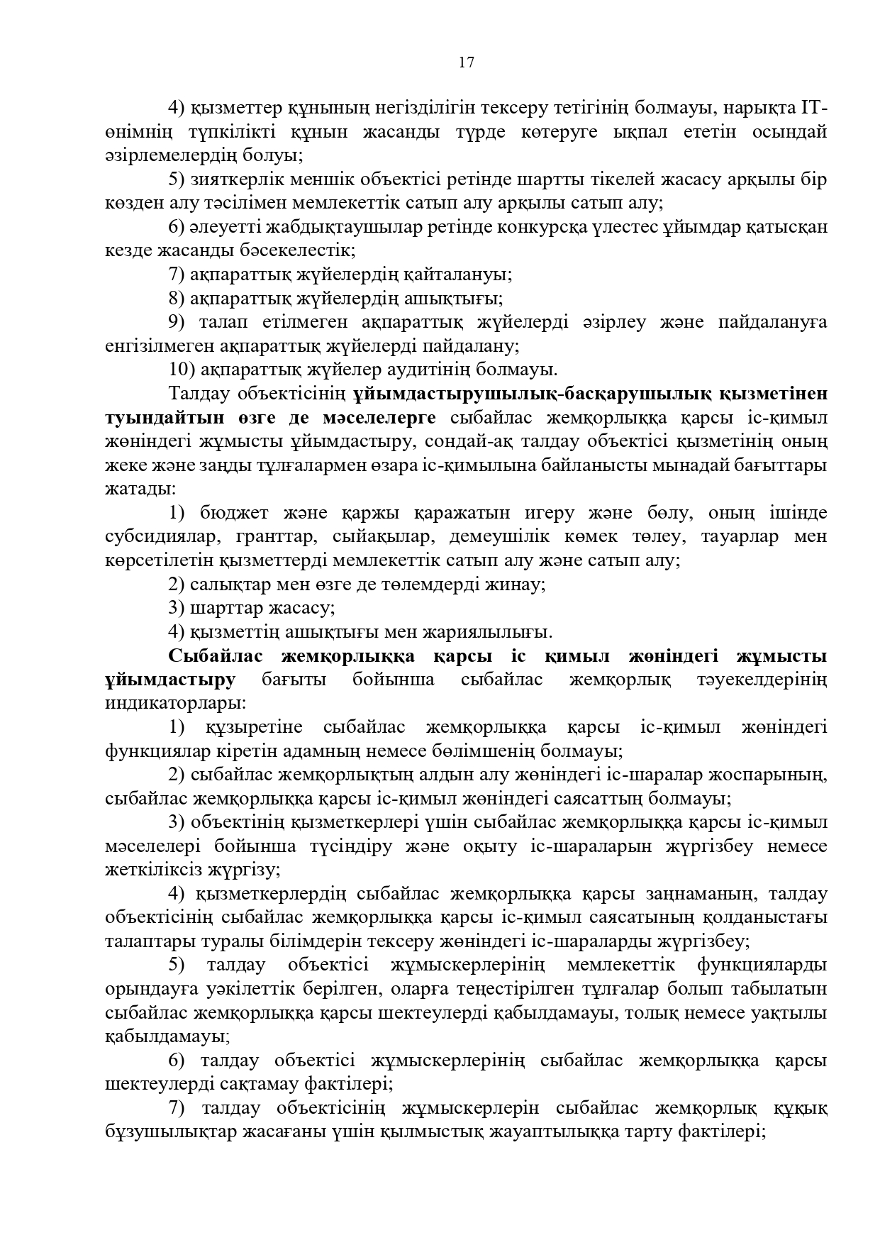 21 июль 2025 0 1 2 3 4 5 Сыбайлас жемқорлық тәуекелдеріне ішкі талдау жүргізу бойынша әдістемелік ұсынымдар