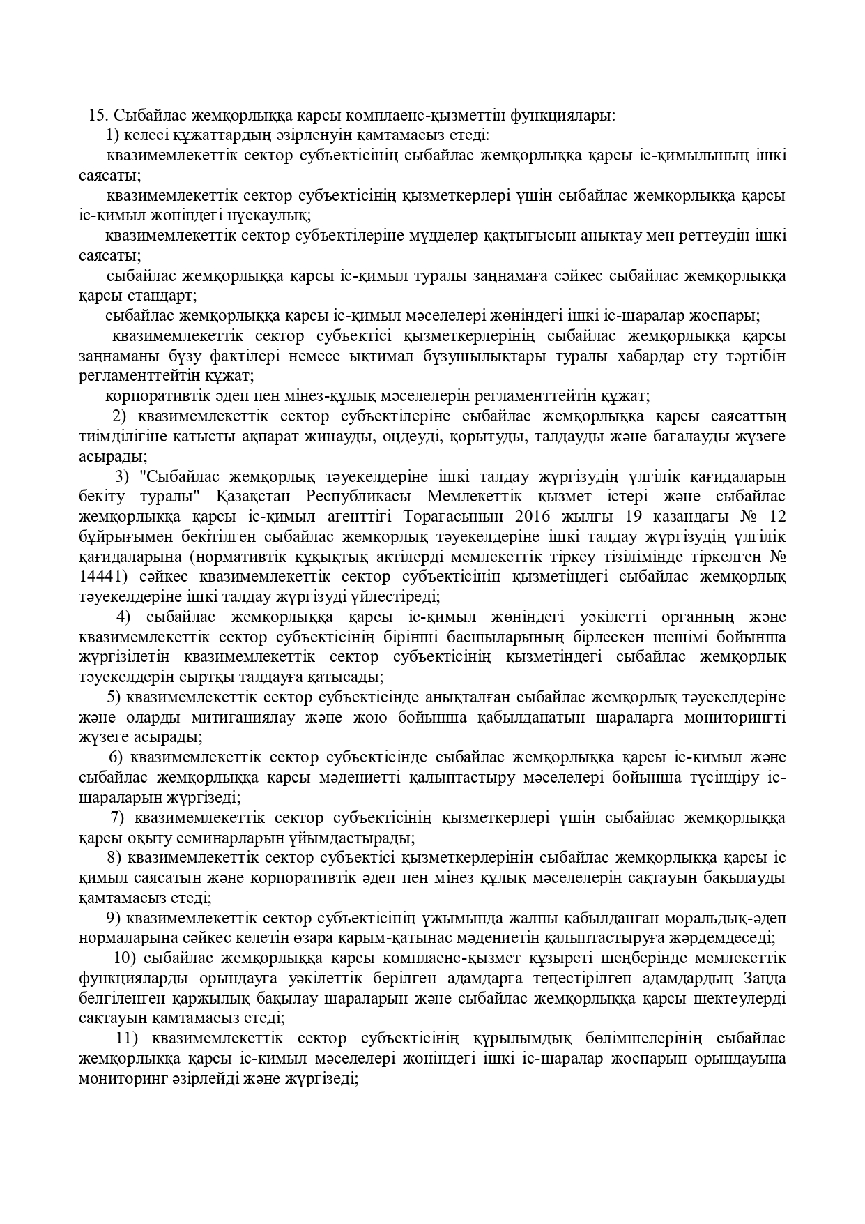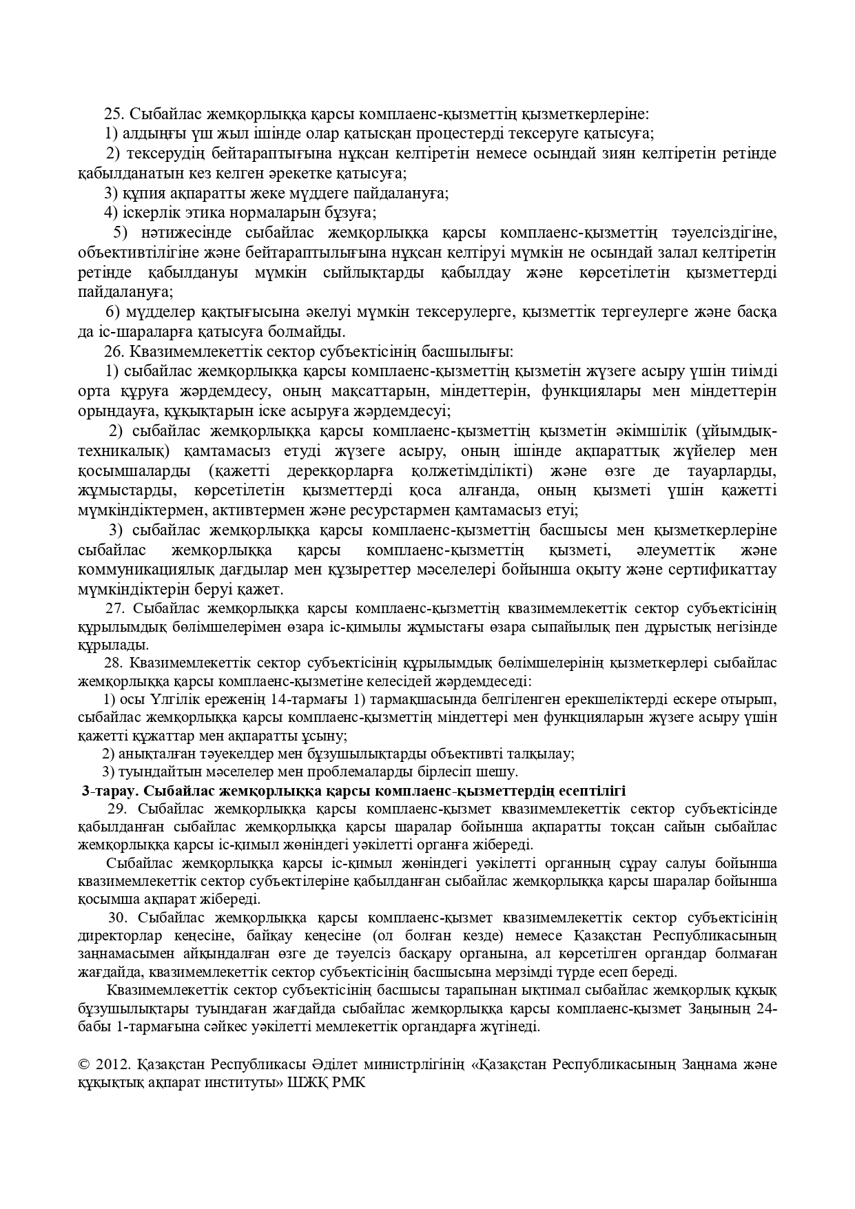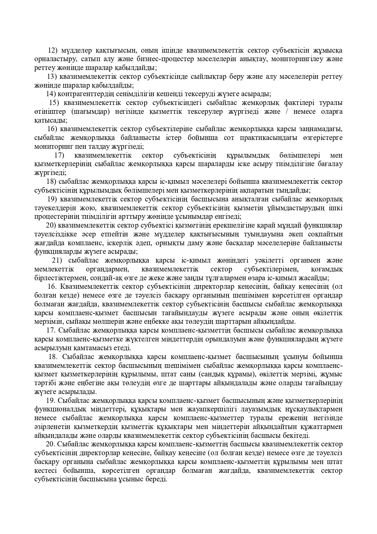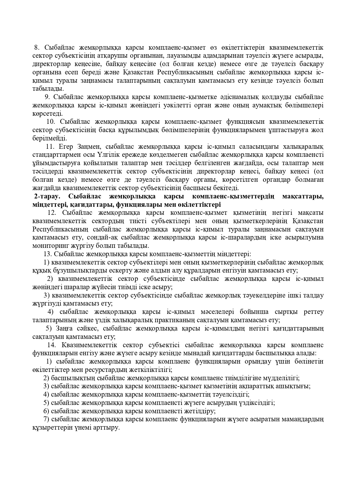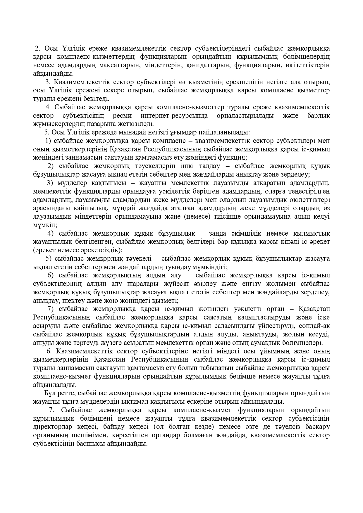 Квазимемлекеттік сектор субъектілеріндегі сыбайлас жемқорлыққа қарсы комплаенс- қызмет туралы үлгілік ережені бекіту туралы