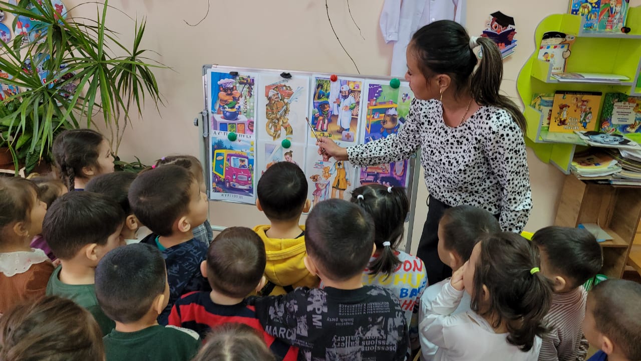 «Қарлығаш» ересек тобының тәрбиешісі У.К. Темирбаева «Мамандықтар» тақырыбында ұйымдастырылған іс-әрекет өткізді. Мақсаты: Мамандық иелерінің қызметімен таныстыра отырып, олардың маңыздылығын ойын арқылы түсіндіру. Әртүрлі мамандық түрлеріне, мамандық иелеріне құрметпен қарауға тәрбиелеу. Балалар жұмбақтар шешіп, мамандықтар туралы білімдерін көрсетті. Әр мамандық иелерінің қолданатын құралдарын тауып, олардың пайдасын айтты.
