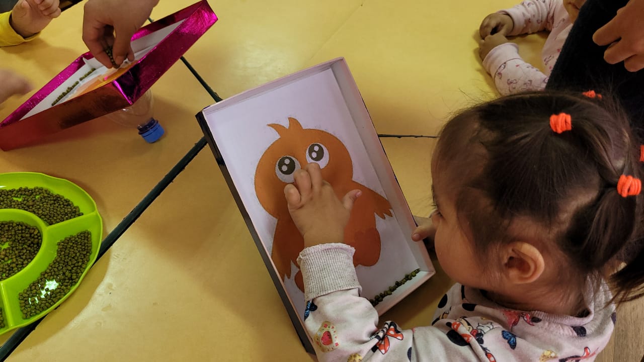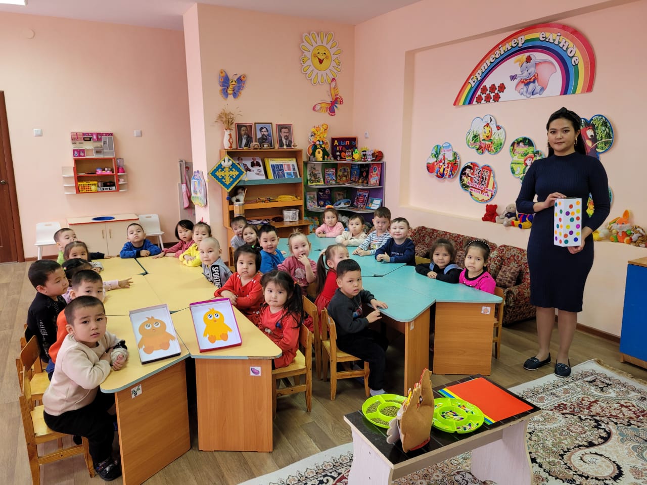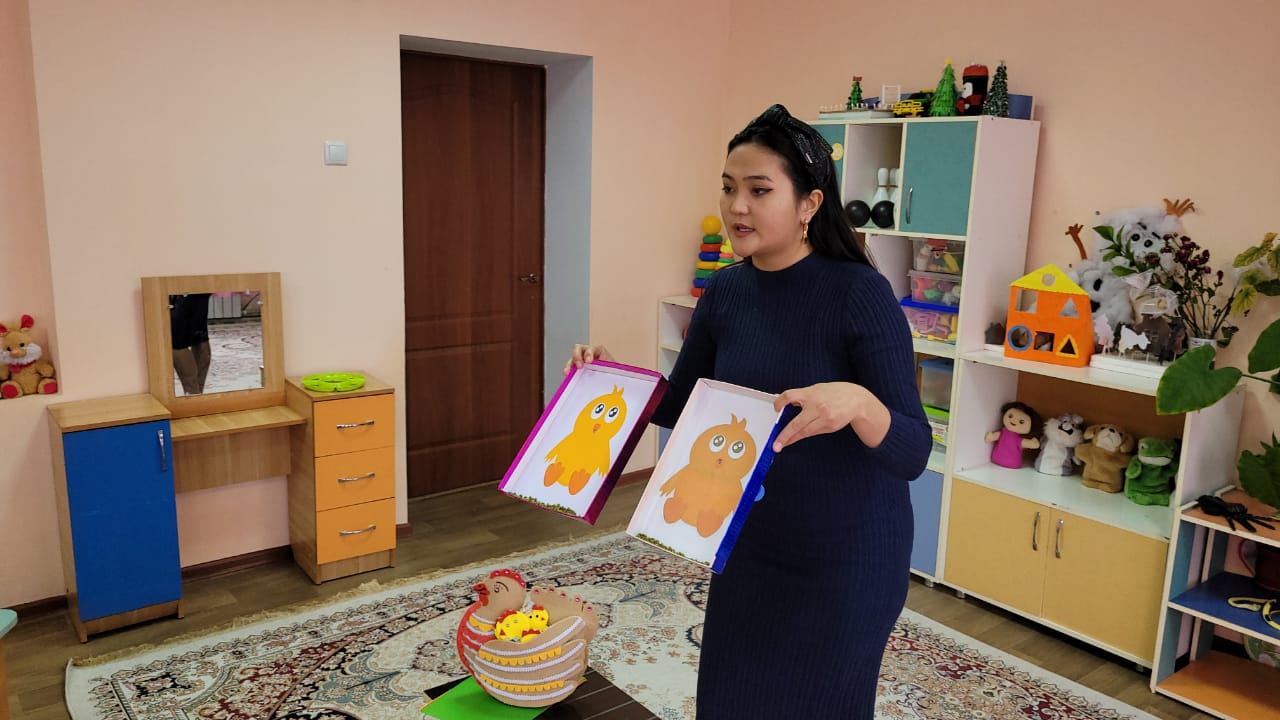 «Ботақан» ортаңғы тобының тәрбиешісі А.П. Абилсеитова балалардың ойлау қабілетін дамыту, үй жануарлары туралы білімдерін арттыру, оларға қамқоршылықпен қарауға тәрбиелеу мақсатында «Балапан» ойынын ойнатты. Балалар сұрақтарды түсініп, жауап берді. Балапанға жем беріп, қамқорлық танытты.