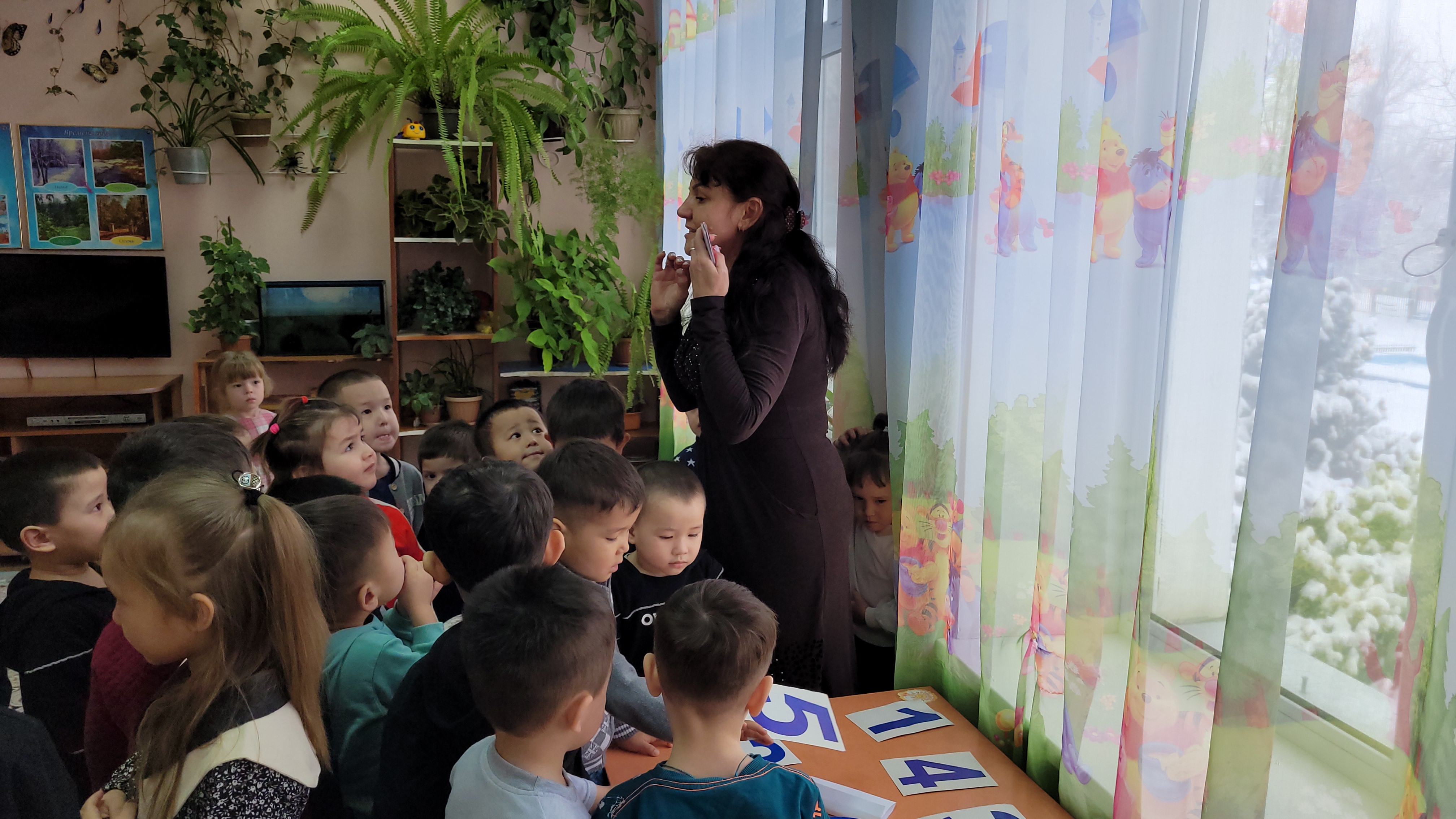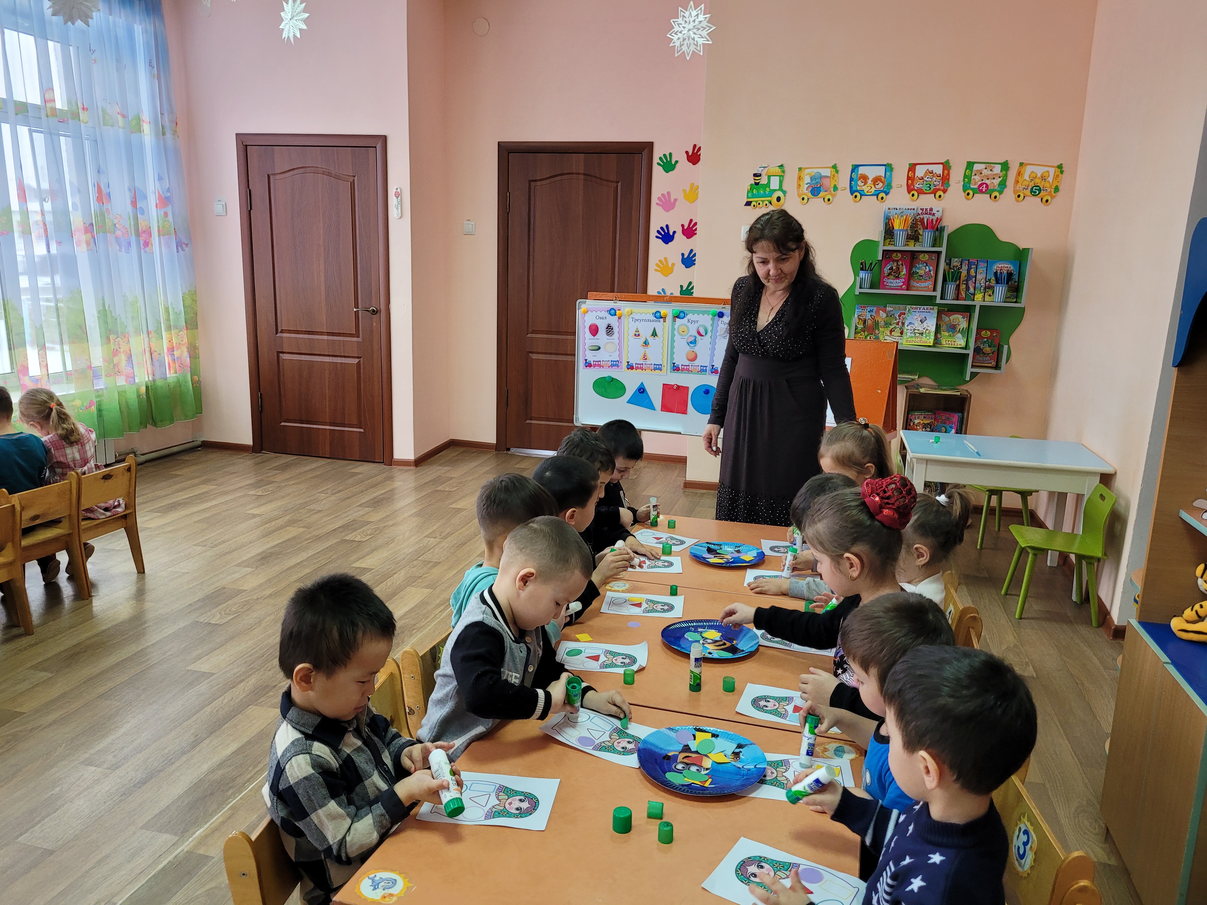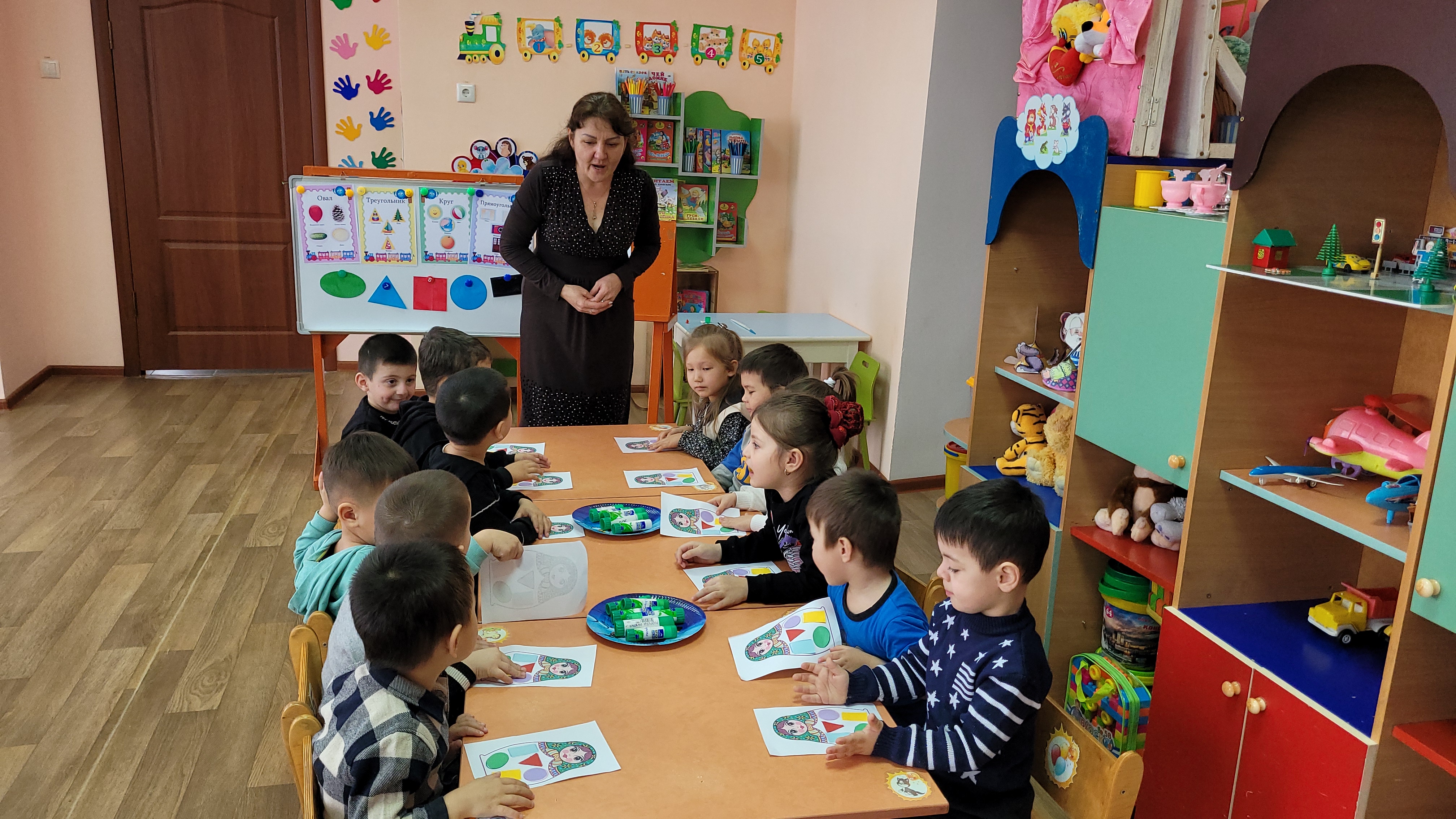 Тәрбиеші О.А. Тартан "Березка" ортаңғы тобымен ойын түрінде ұйымдастырылған іс-әрекет өткізді. Мақсаты: Балалардың логикалық ойлауын дамыту, заттардың санын, пішінін, кеңістікте орналасуын меңгерту. Балалар саяхатқа шығып, ондағы тапсырмаларды орындады. Гүлдің күлтелерін дұрыс орналастырып, санады. Геометриялық пішіндерді атап, қуыршақтың киімін пішіндермен сәндеді.