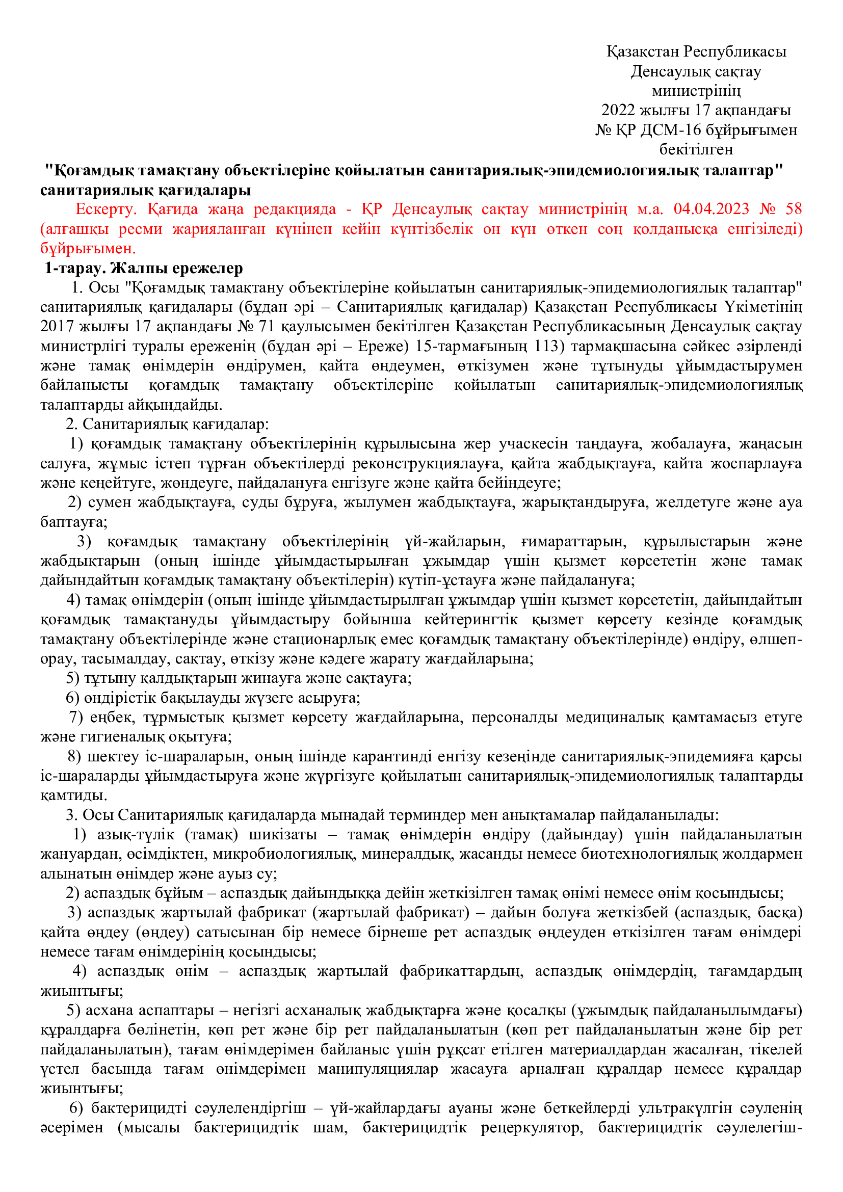 "Қоғамдық тамақтану объектілеріне қойылатын санитариялық-эпидемиологиялық талаптар" санитариялық қағидаларын бекіту туралы