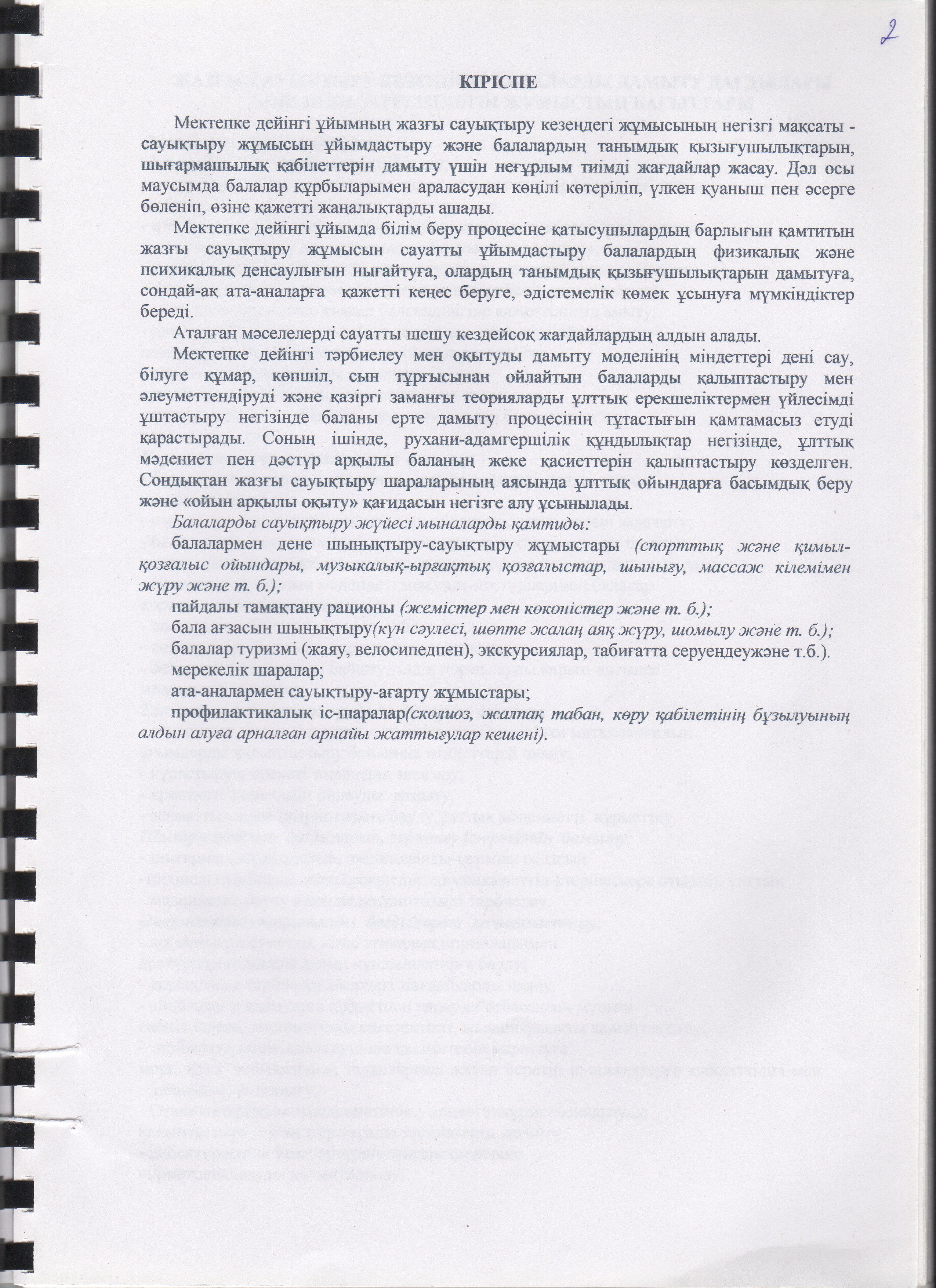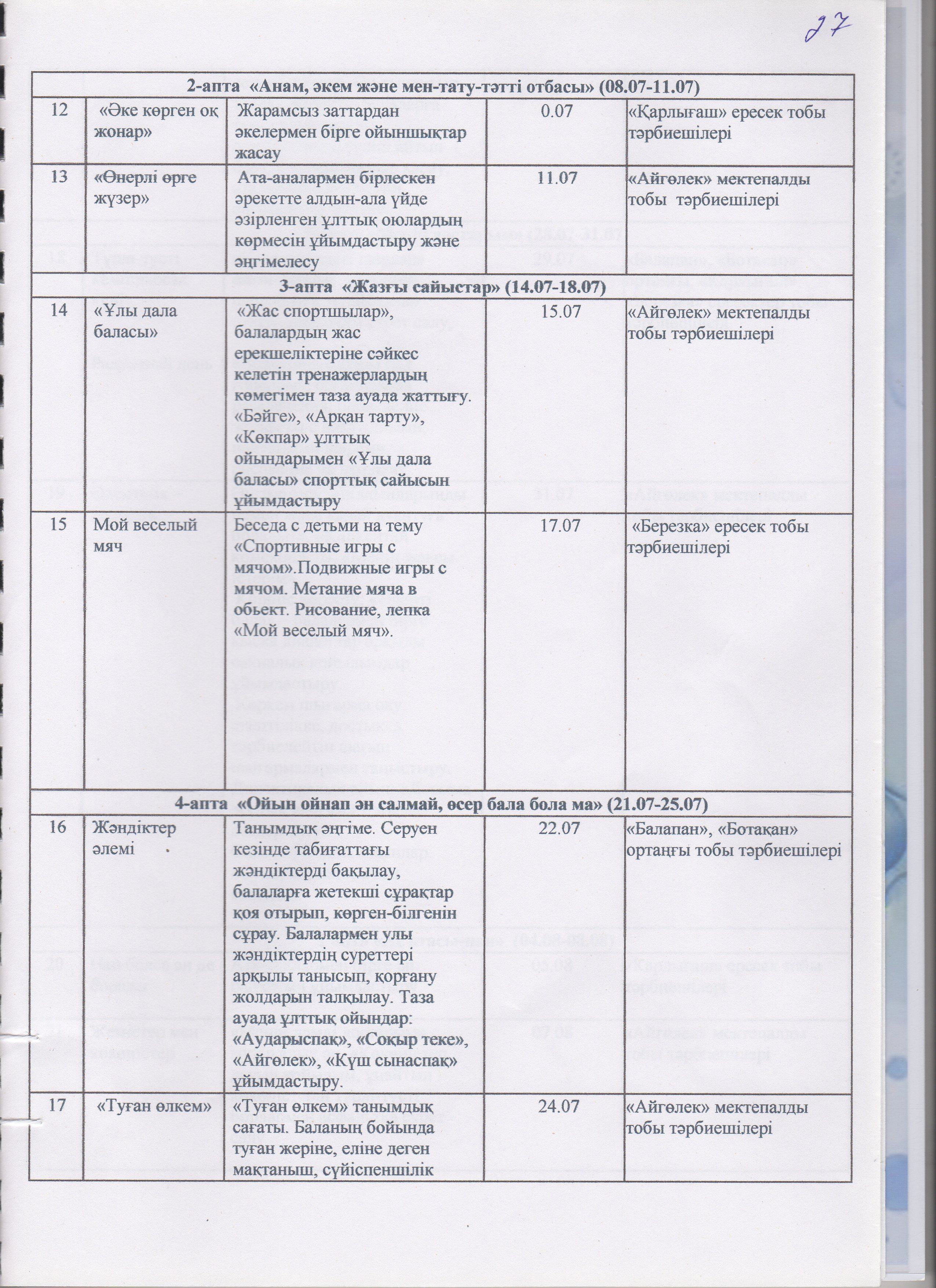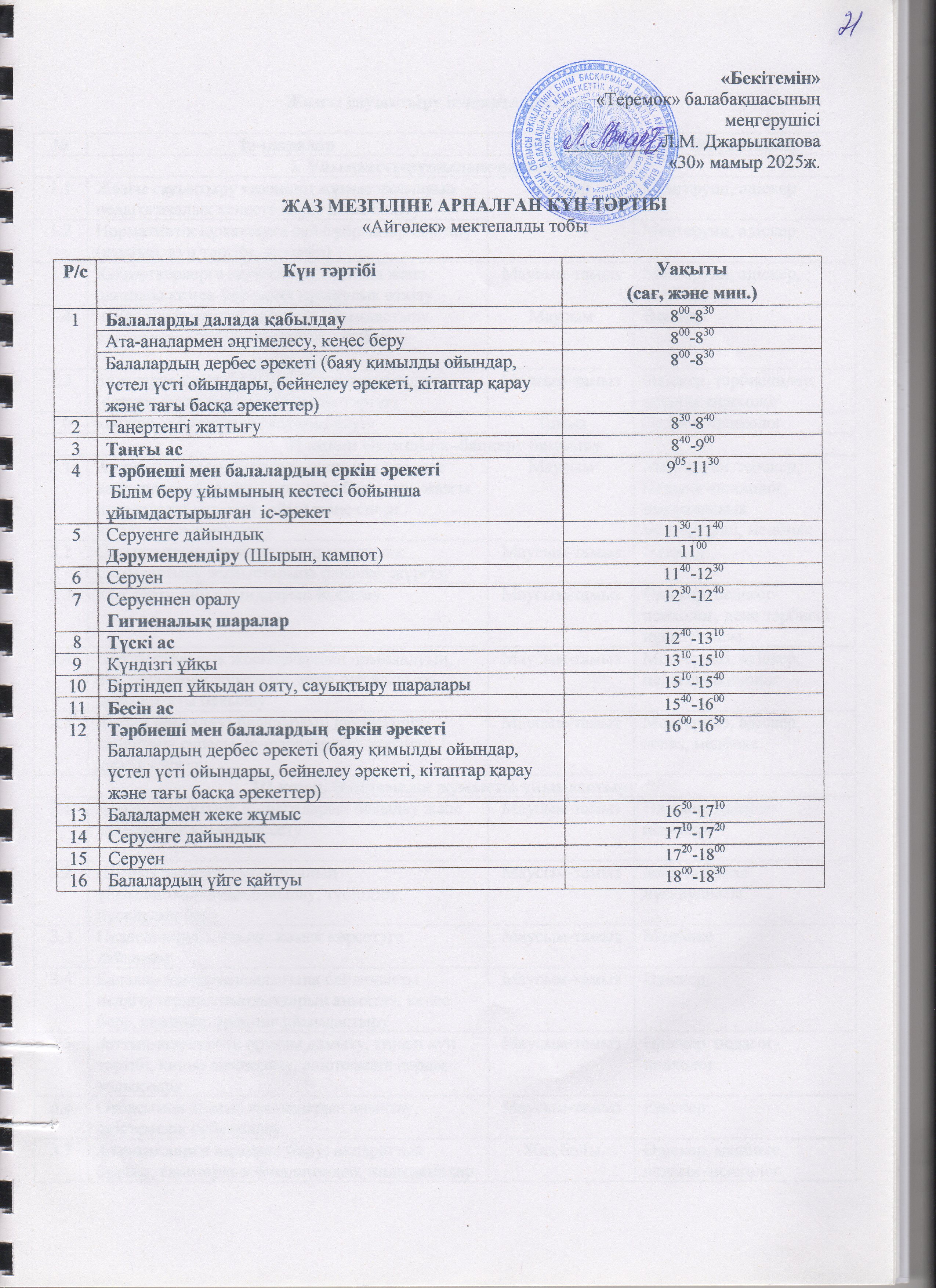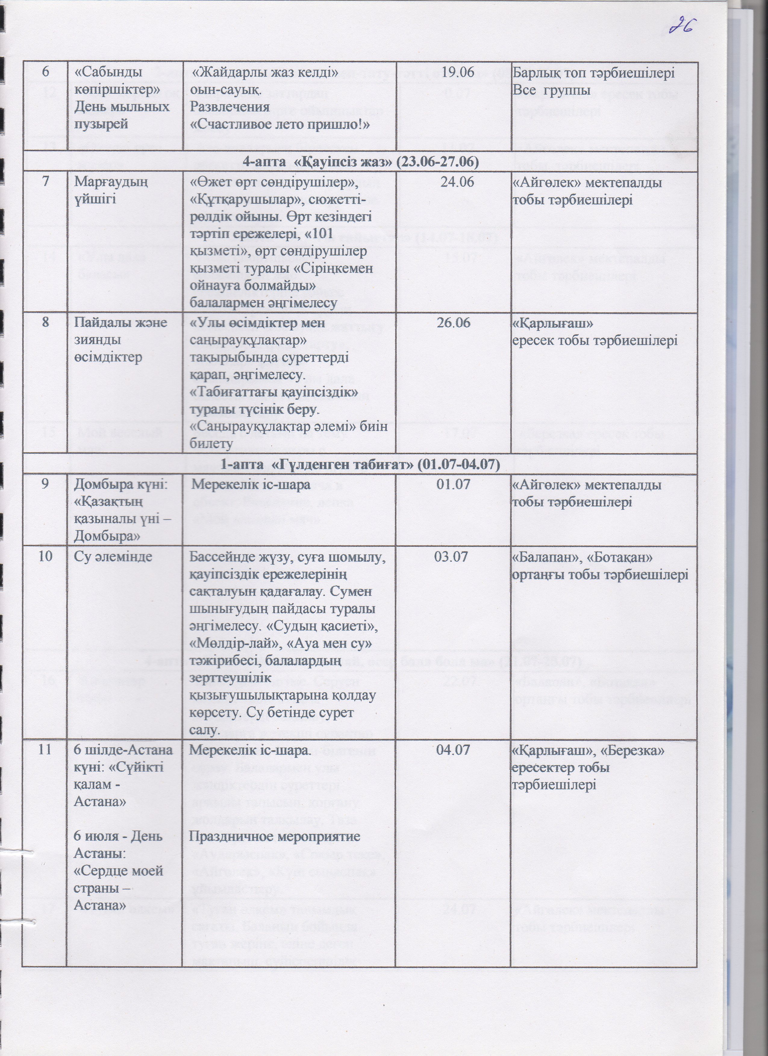 Жаз мезгілінің тәрбие мен оқытудың сауықтыру жұмыс жоспары