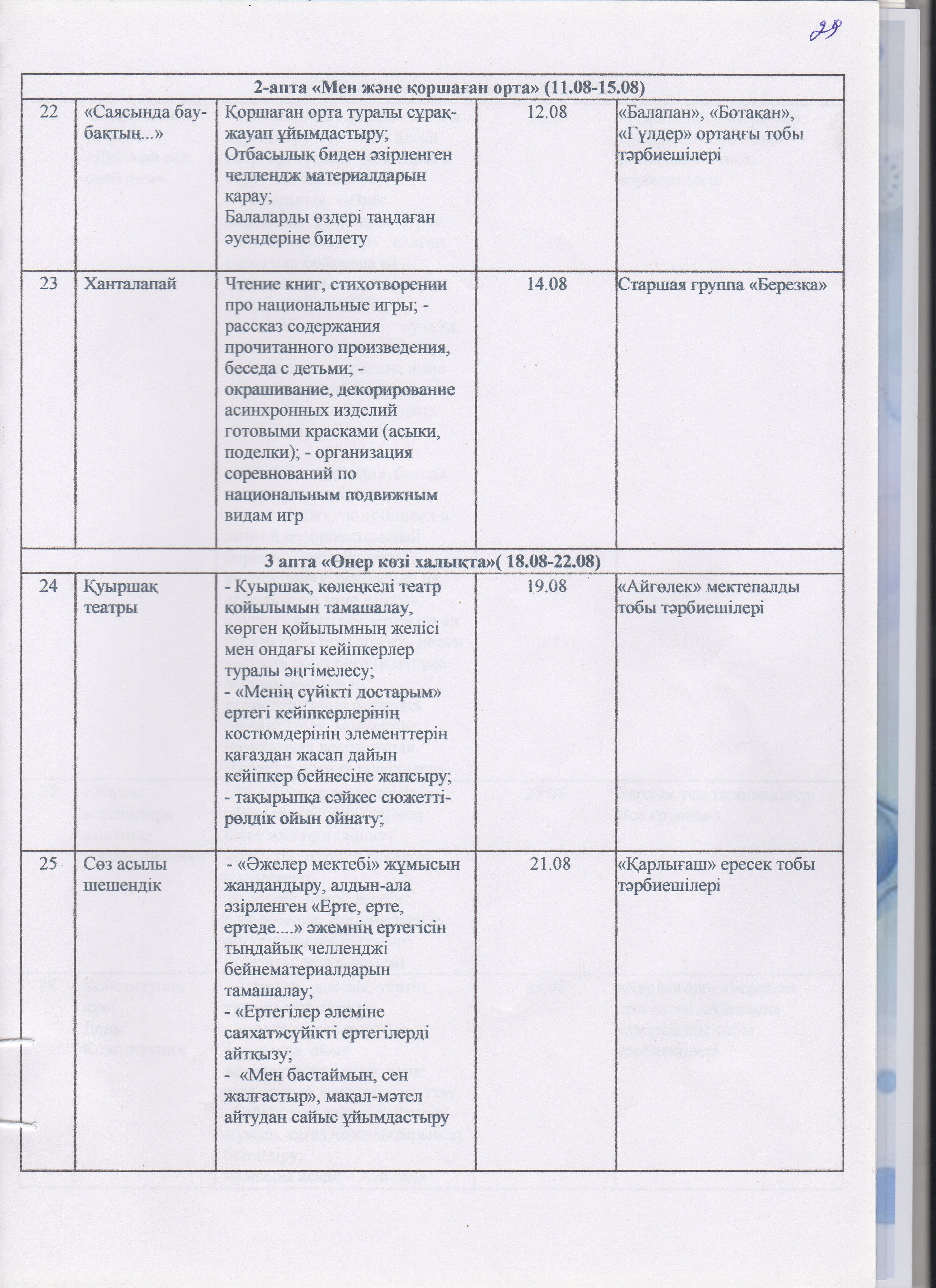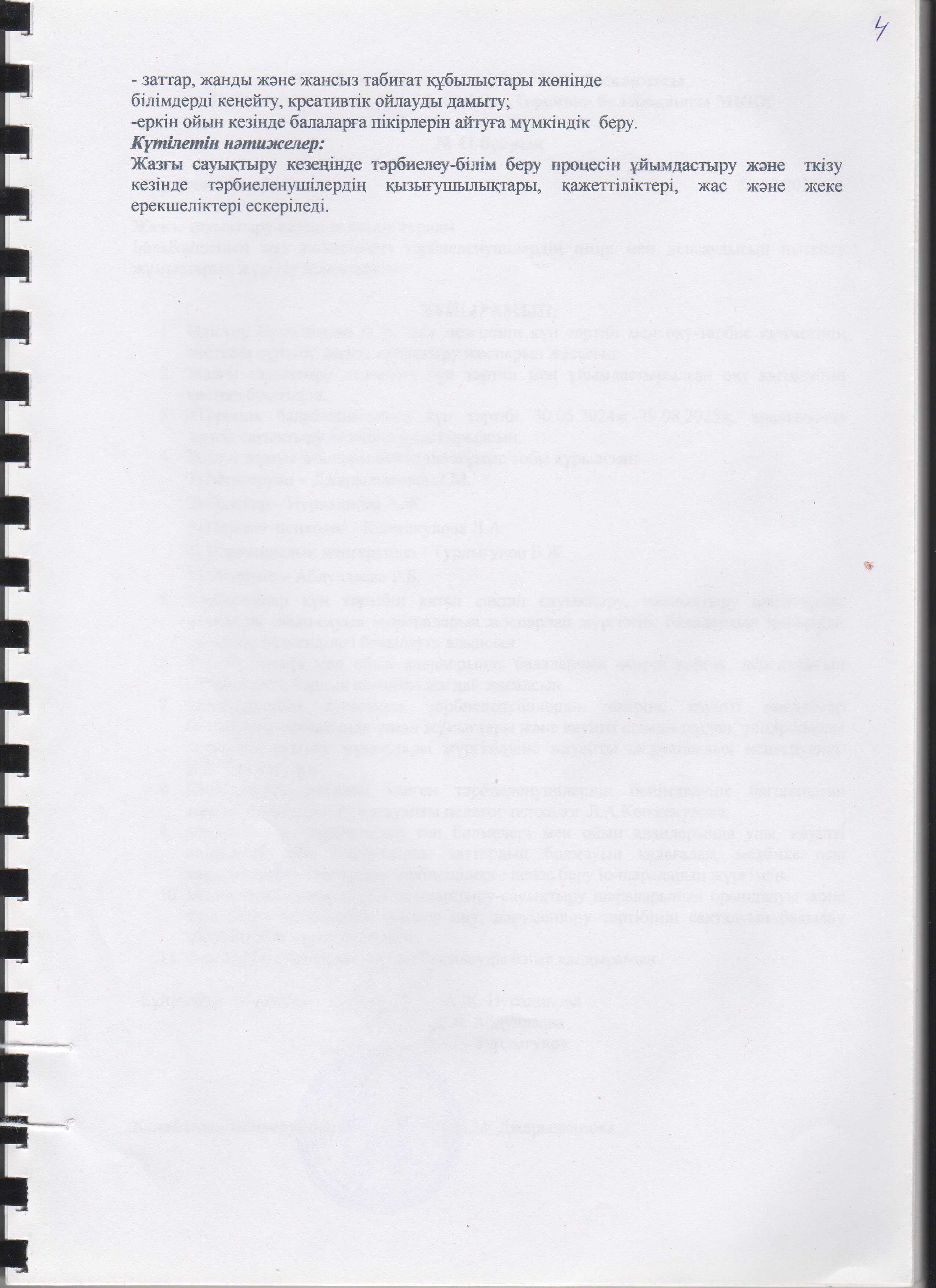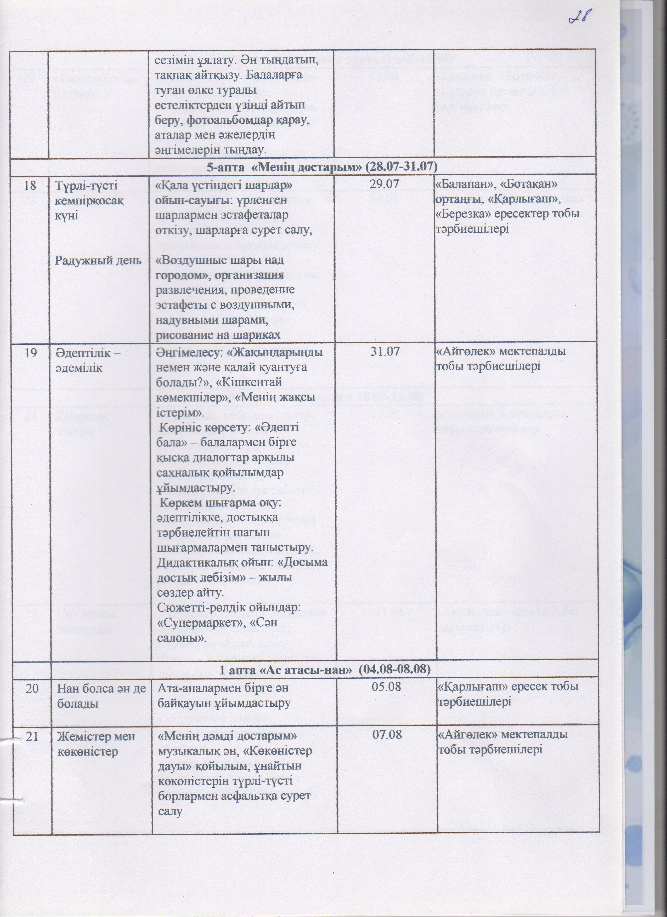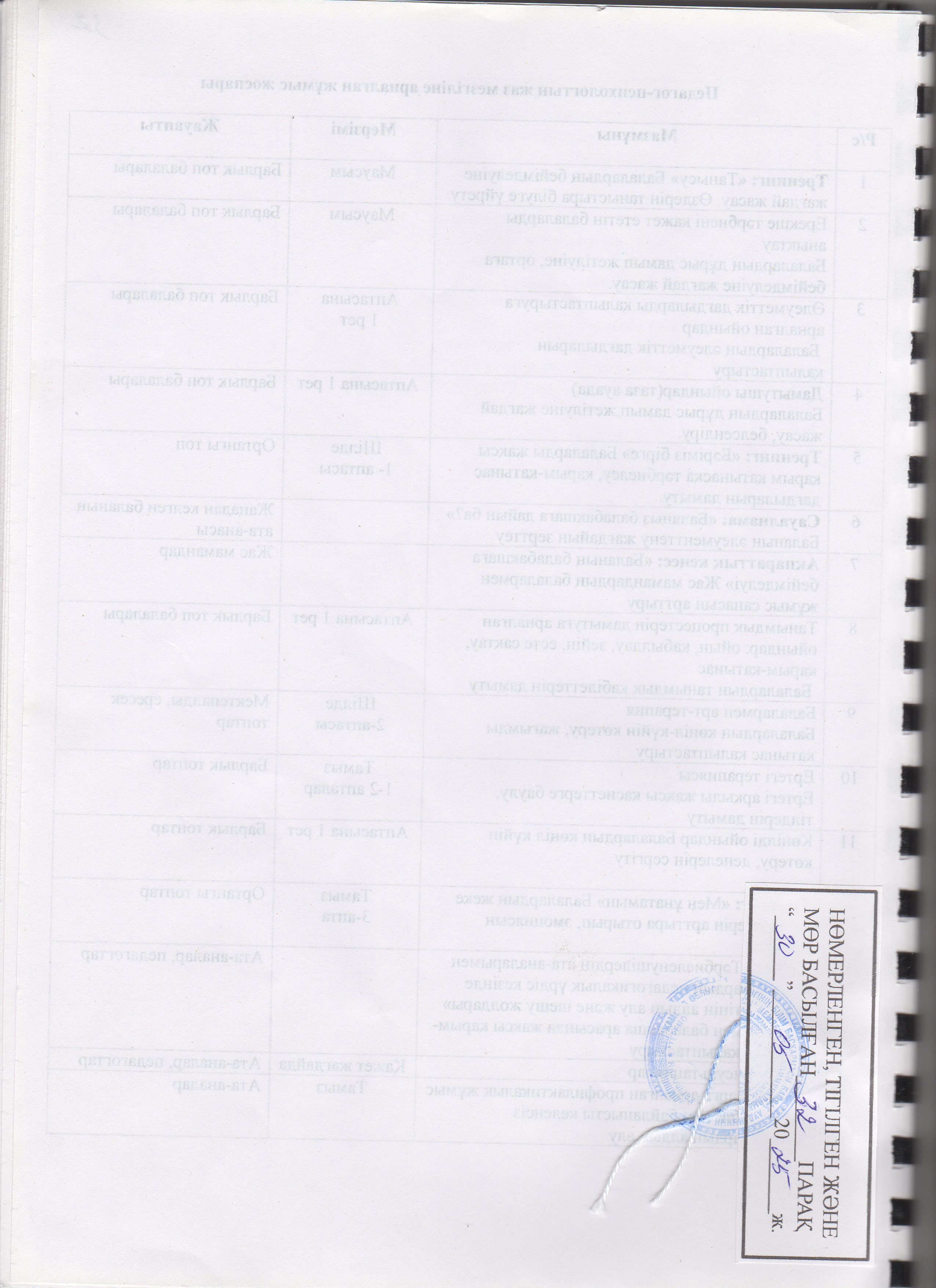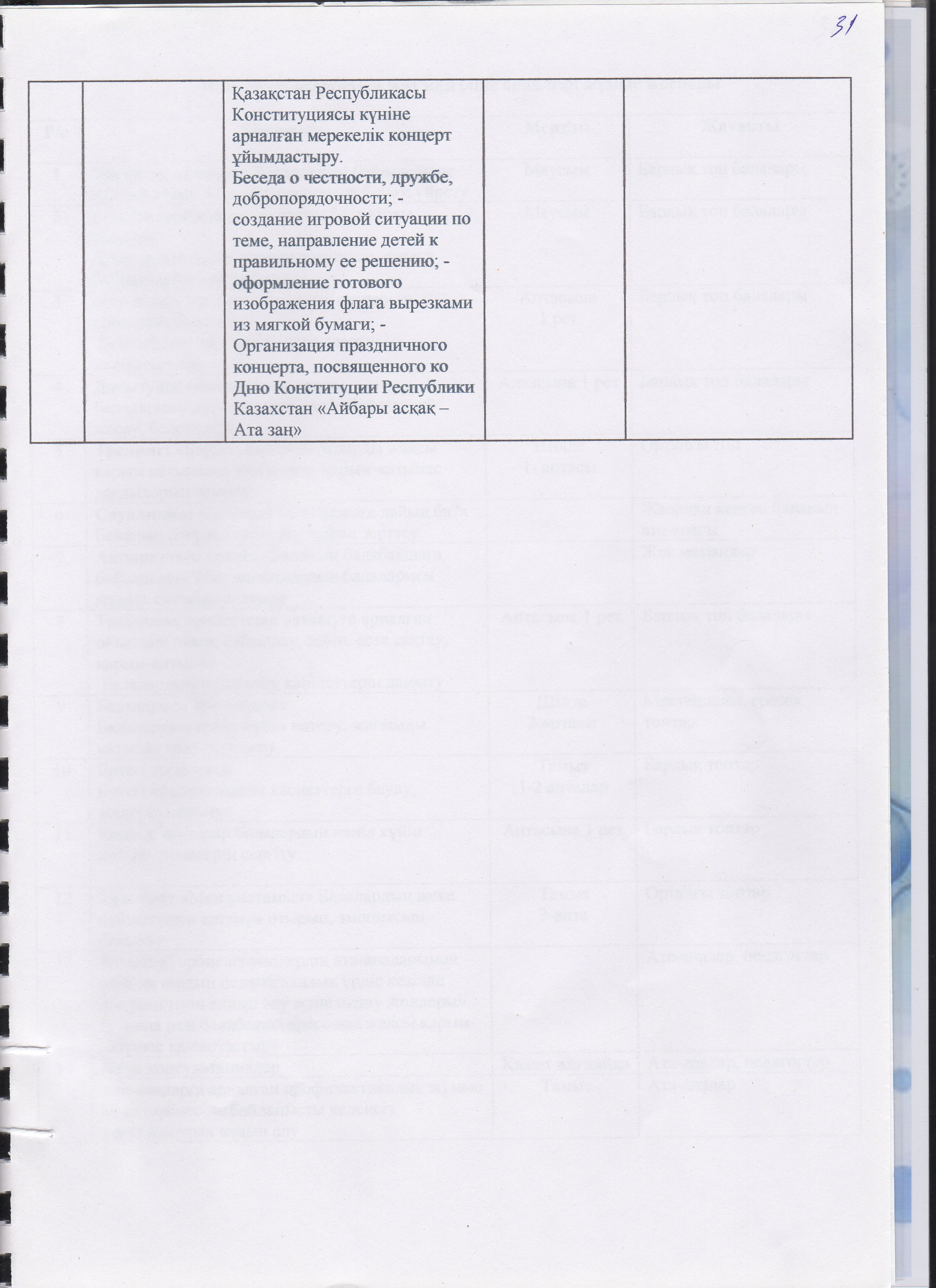 Жаз мезгілінің тәрбие мен оқытудың сауықтыру жұмыс жоспары