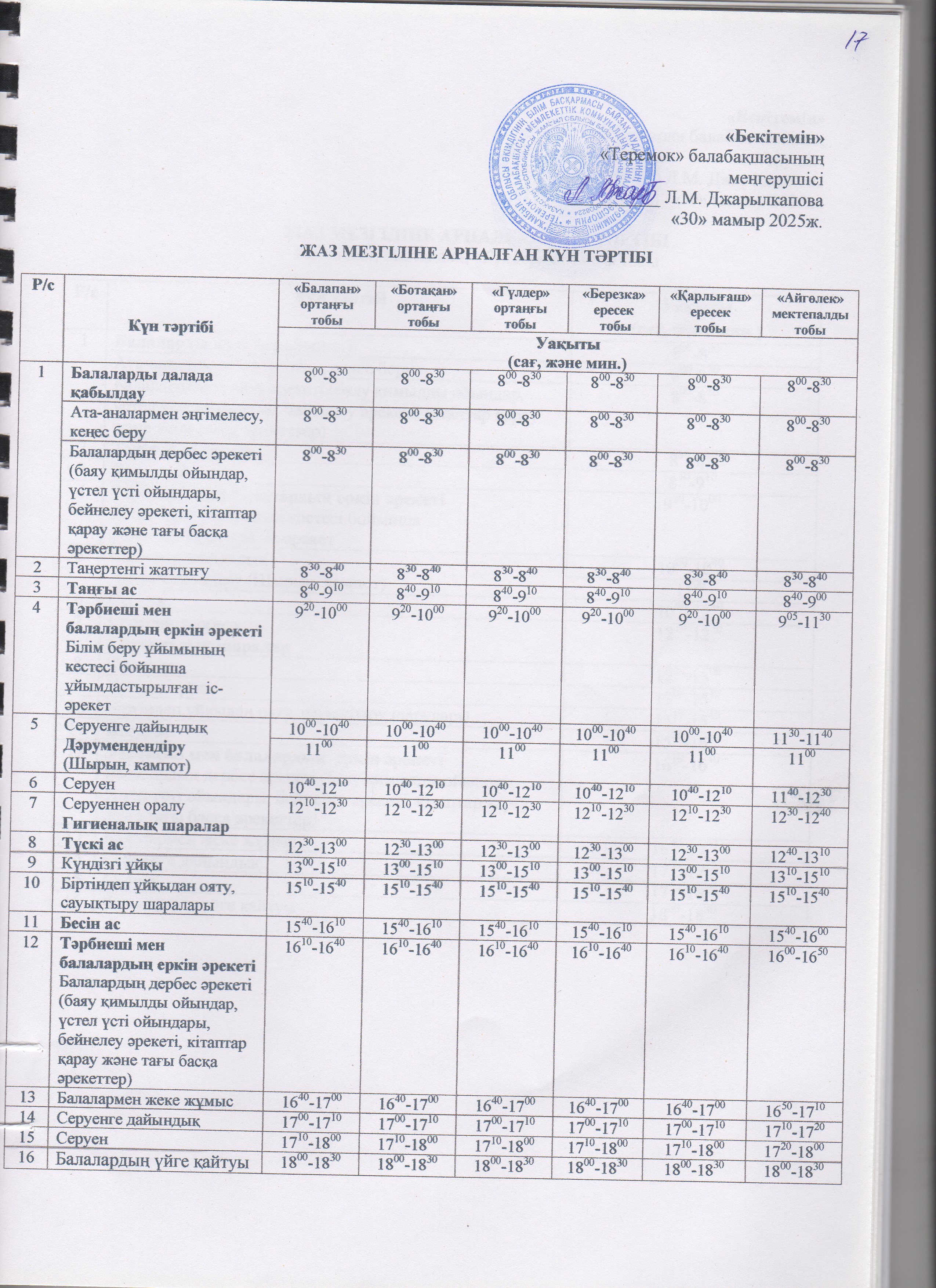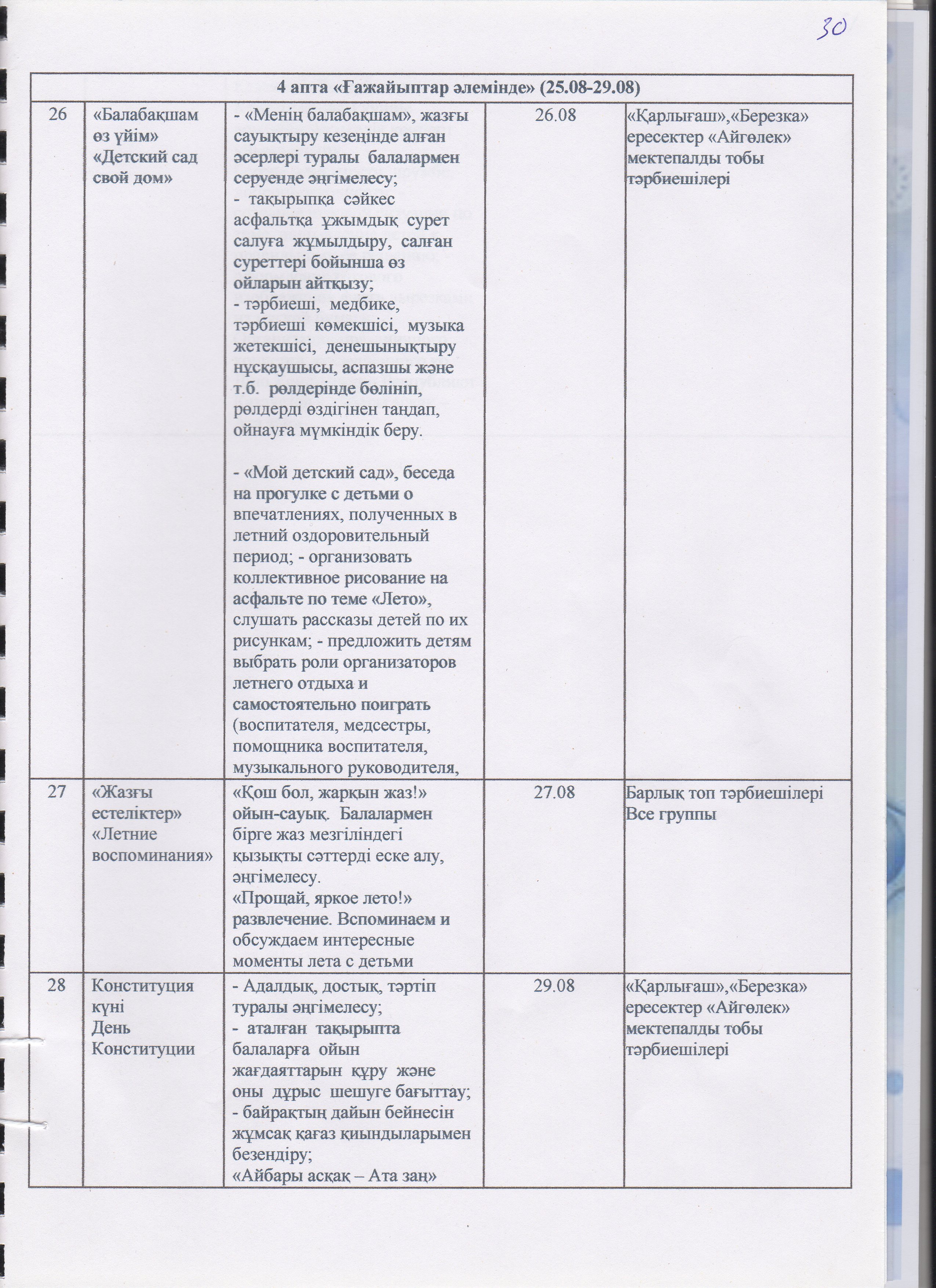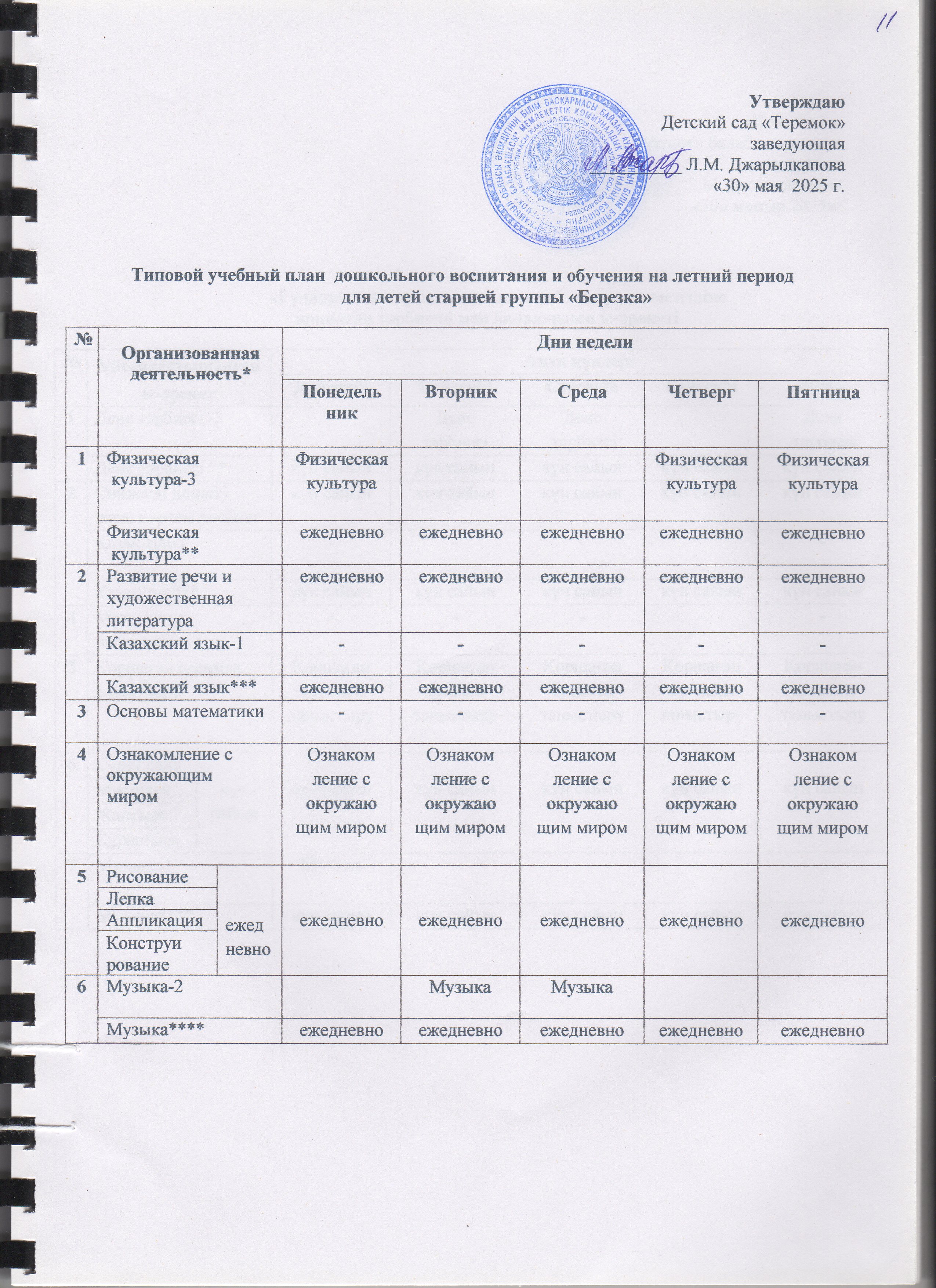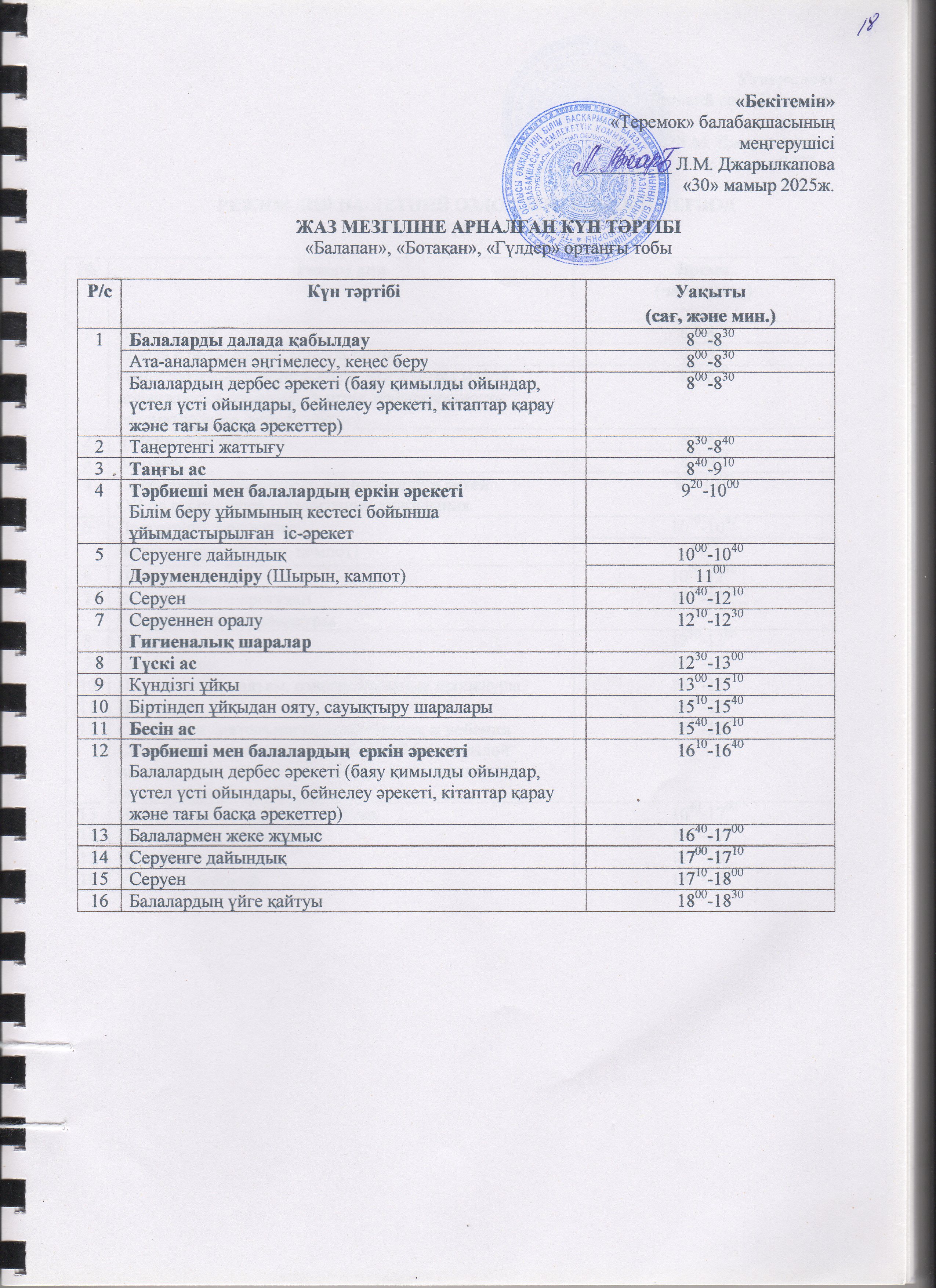 Жаз мезгілінің тәрбие мен оқытудың сауықтыру жұмыс жоспары