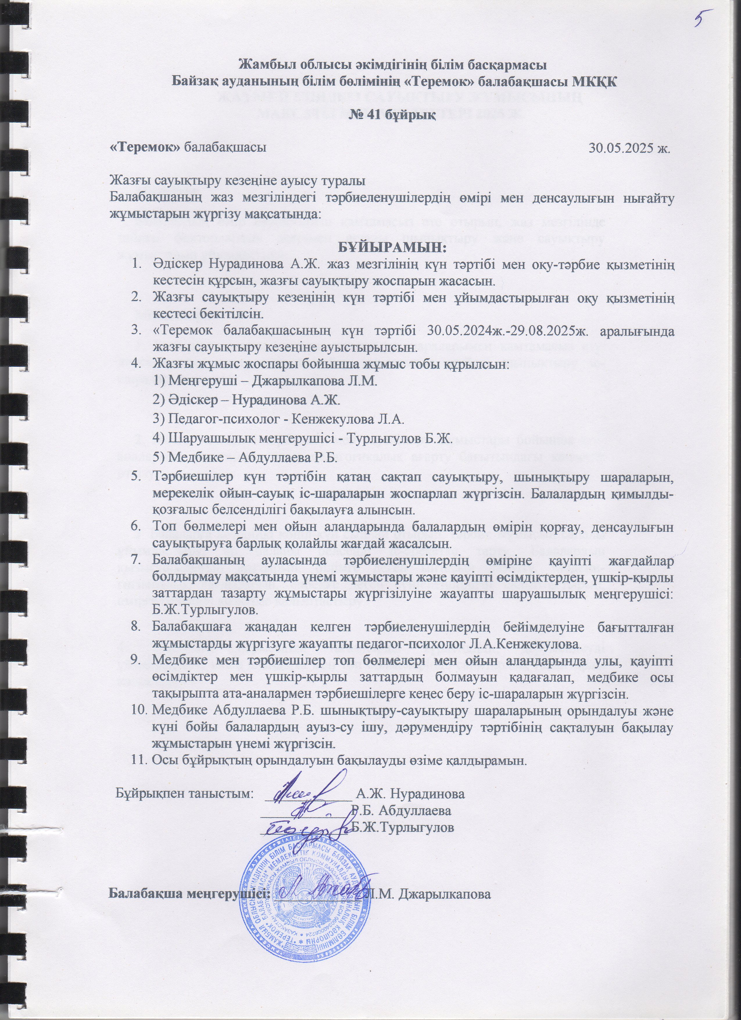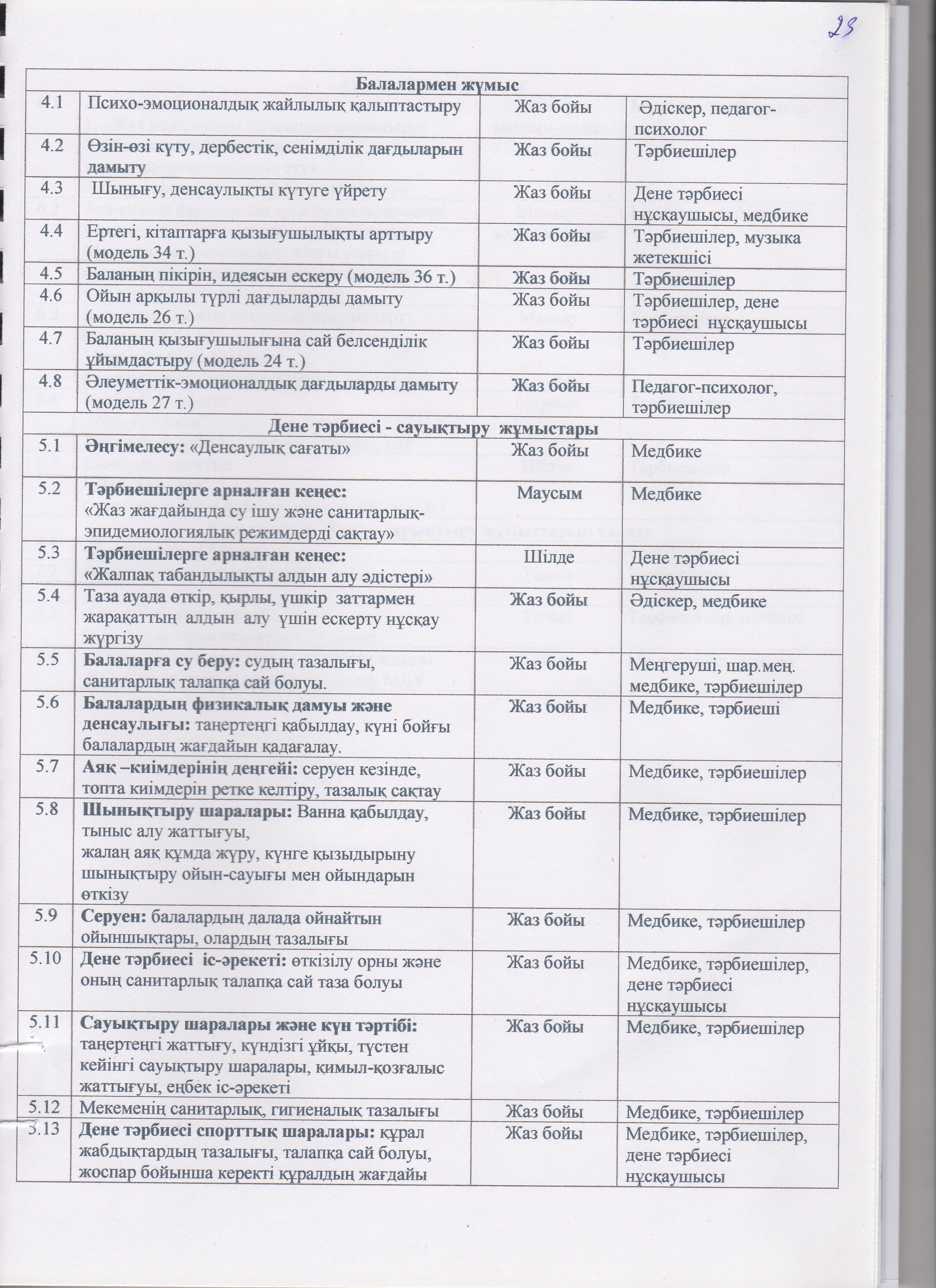 » » Жаз мезгілінің тәрбие мен оқытудың сауықтыру жұмыс жоспары