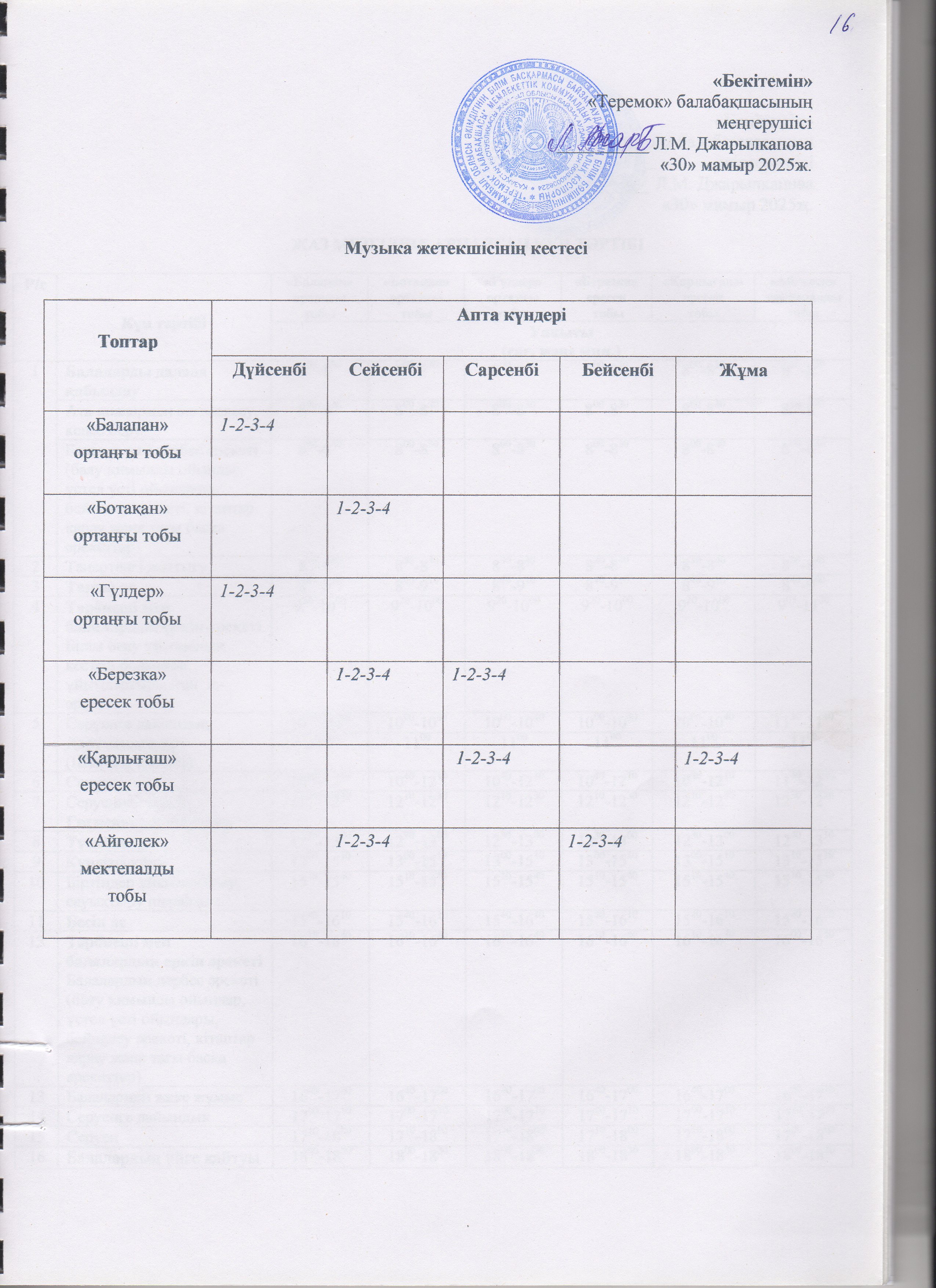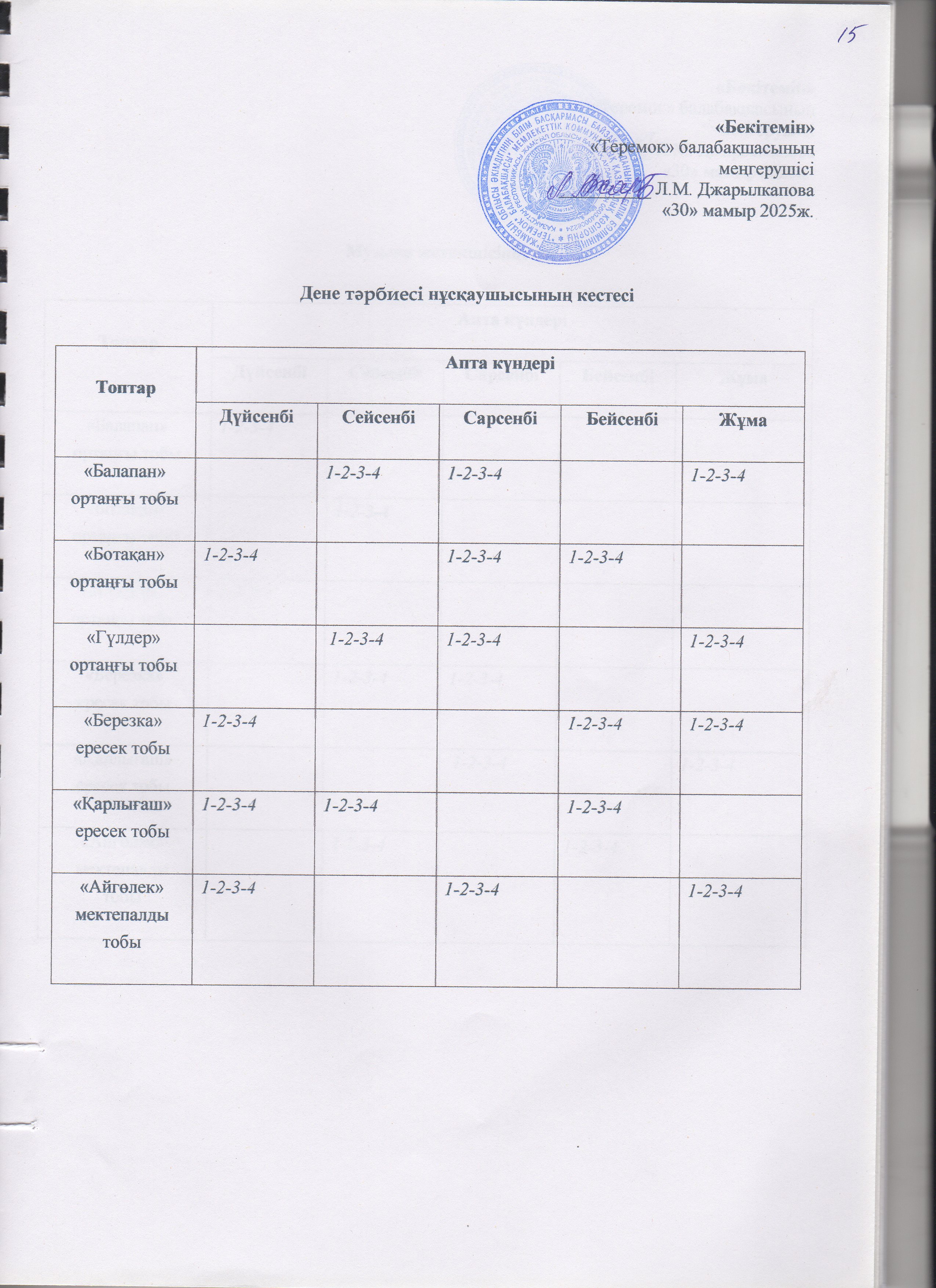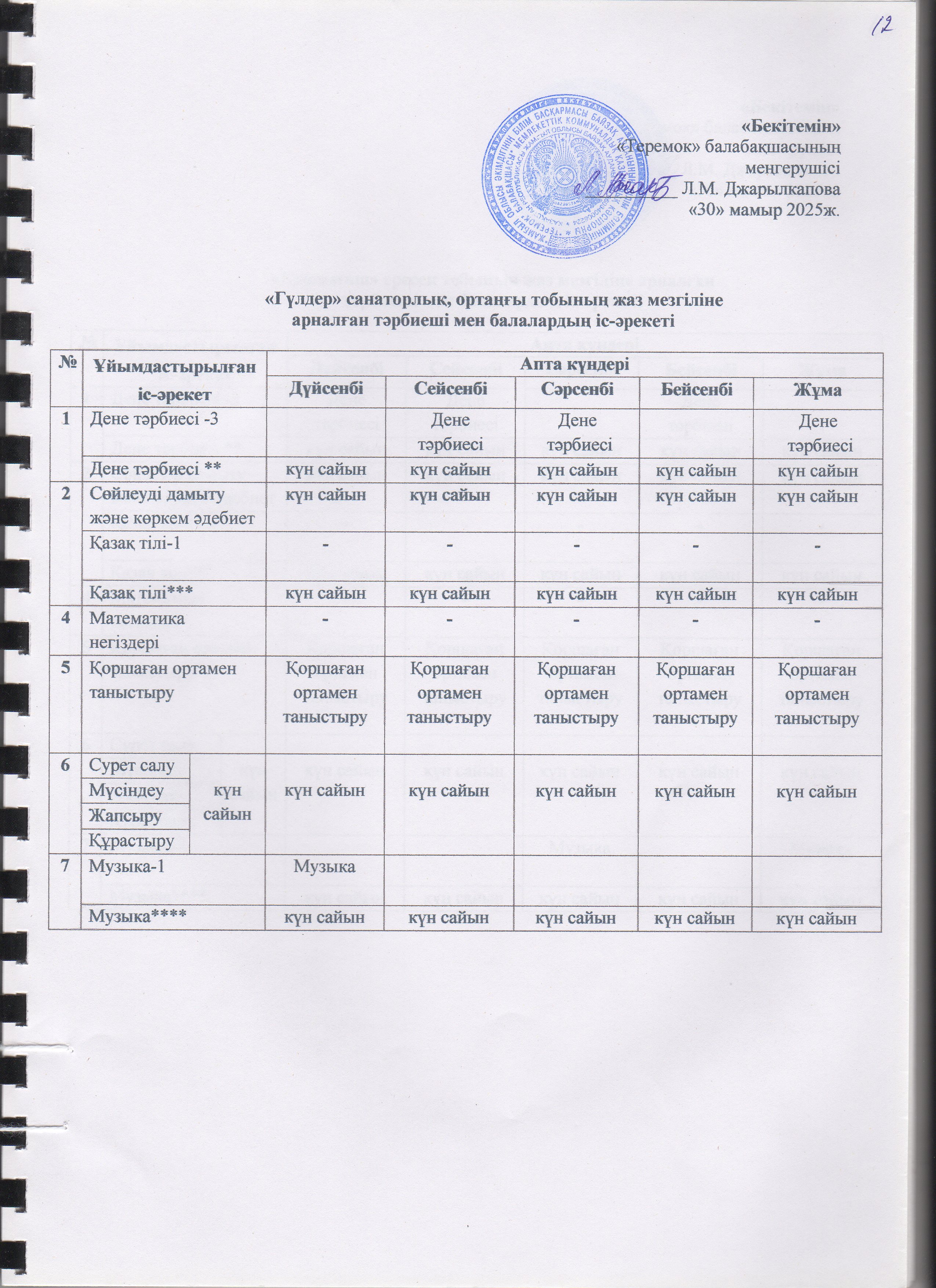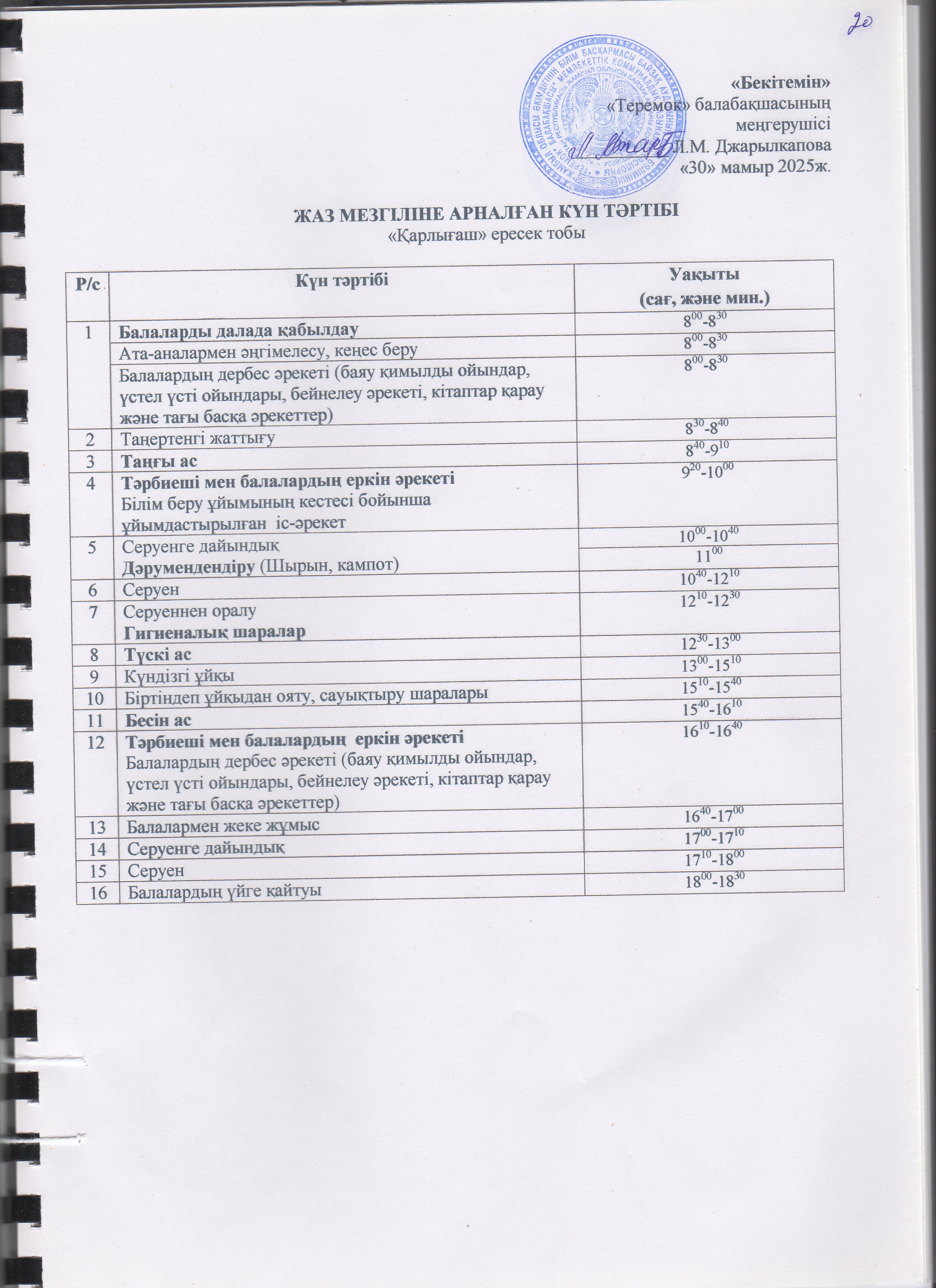 Жаз мезгілінің тәрбие мен оқытудың сауықтыру жұмыс жоспары » "Теремок" балабақшасы