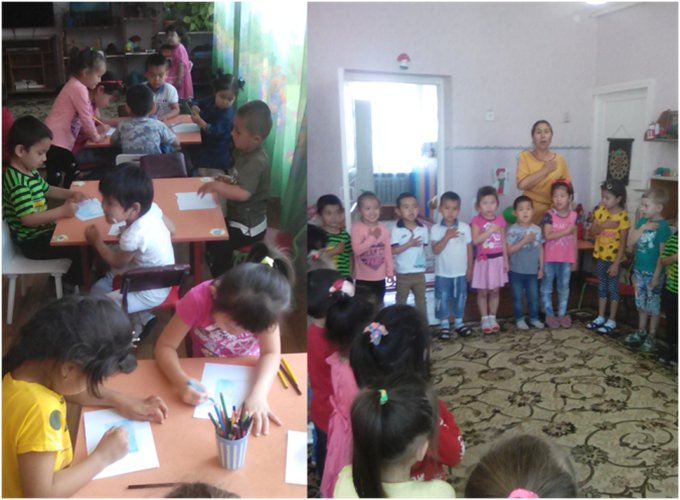 «Березка» ортаңғы тобында «Мои символы-моя гордость» тақырыбында тәрбие сағаты өткізілді. Балалар рәміздер туралы тақпақтарын айтты. Суреттер салды.