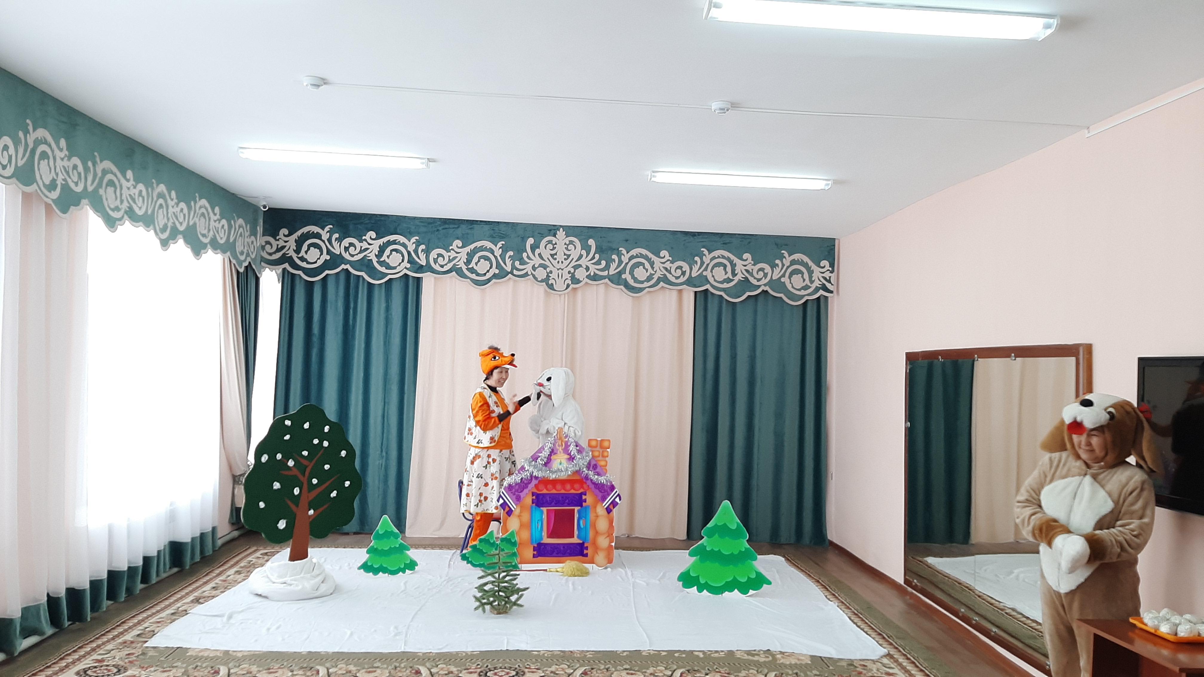 Тәрбиешілердің ұйымдастырған сахналық қойылымы "Түлкі мен қоян"