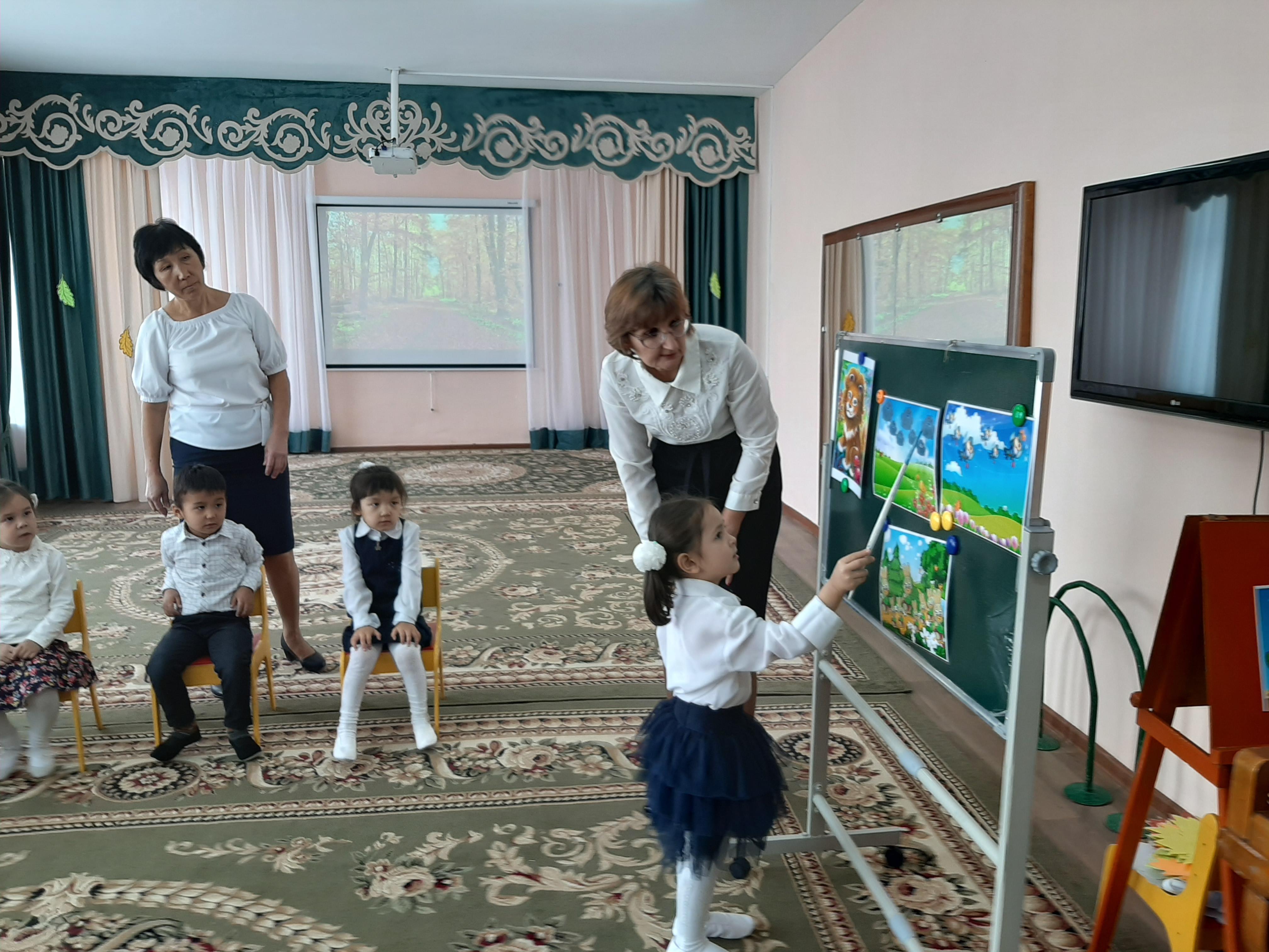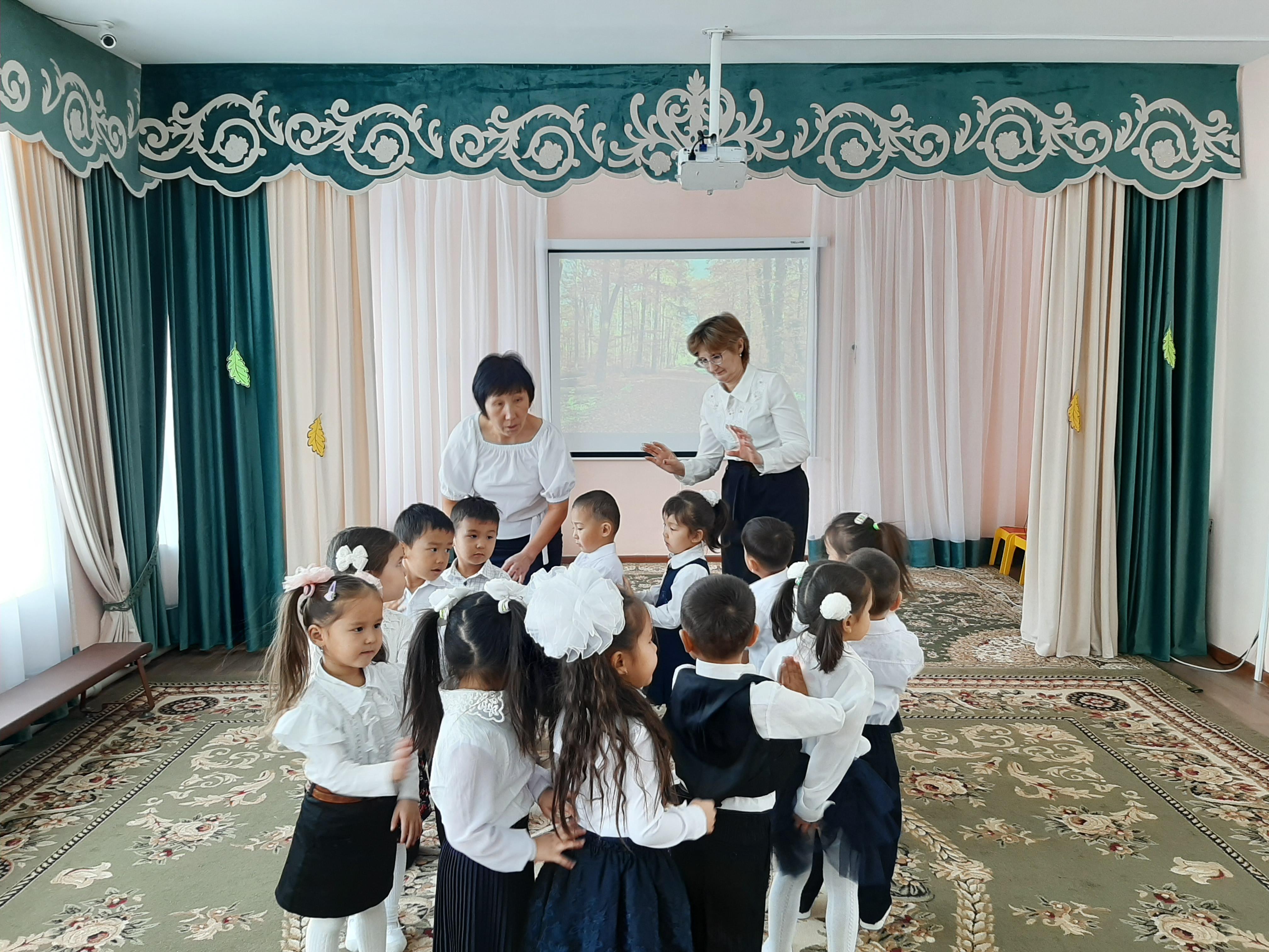 Музыка жетекшісі О.П.Трибунцева балалардың музыка тыңдауға қызығушылығын арттыру, музыка ырғағын сезе білуін дамыту, ептілікке тәрбиелеу, дене бұлшықетін дамыту мақсатында, «Қарлығаш» ересек тобымен кіріктірілген ашық оқу қызметін өтті. Ашық оқу қызметінде балалар музыканың авторы болатынын білді, музыканың ырғағын ажырата білуге үйренді, дыбыстарға мінездеме берді. Әнді дұрыс айуға үйренді.
