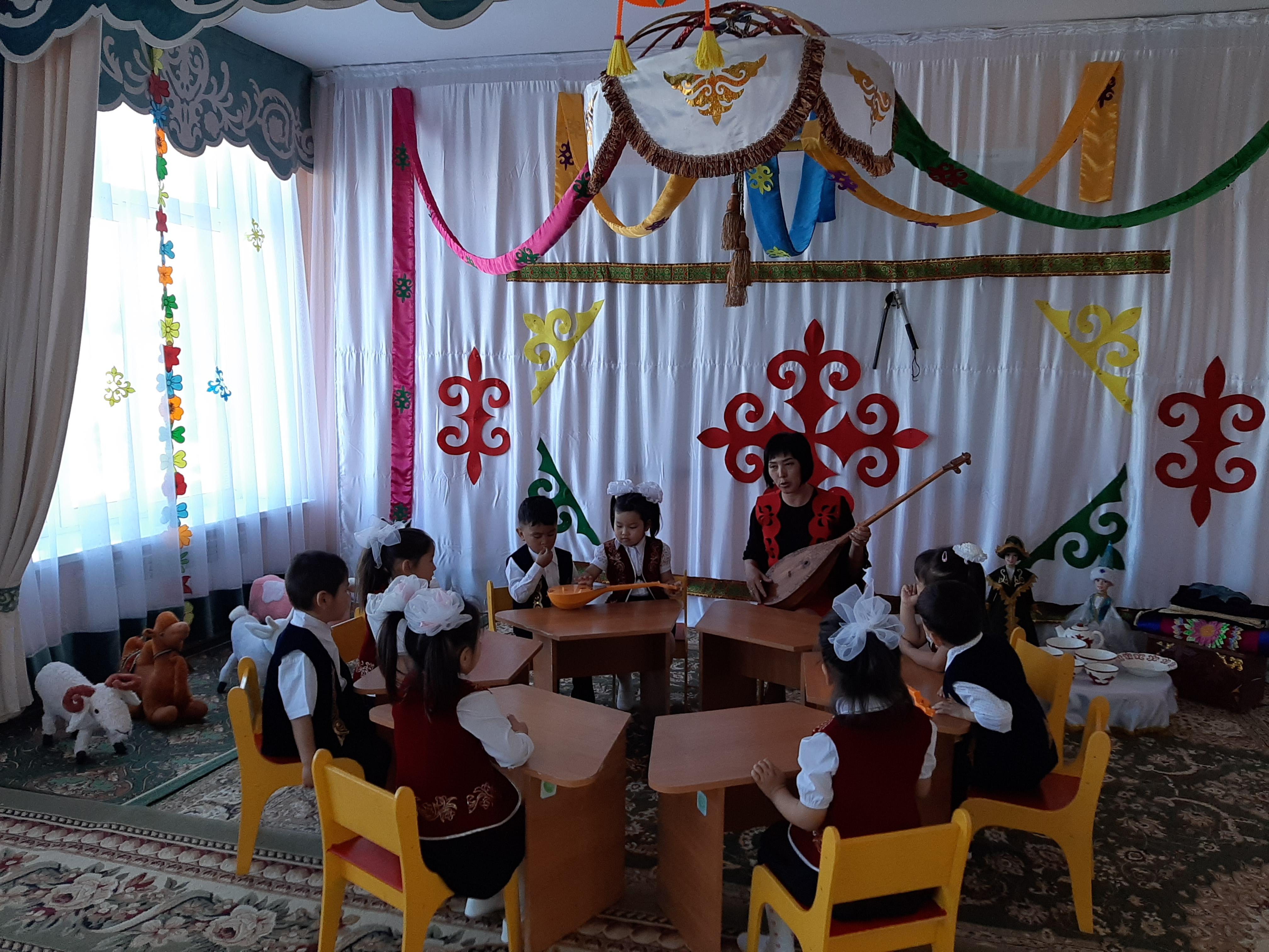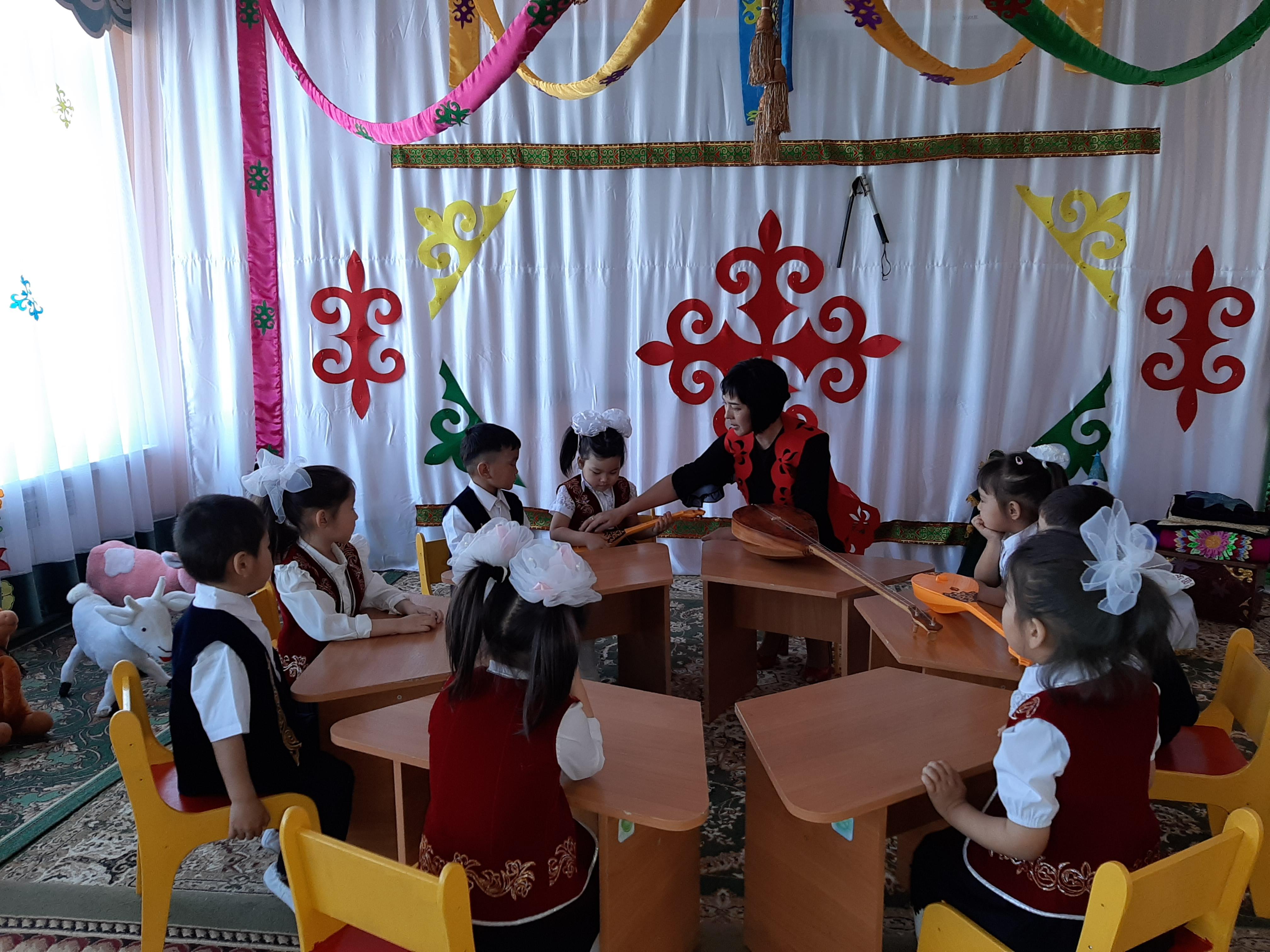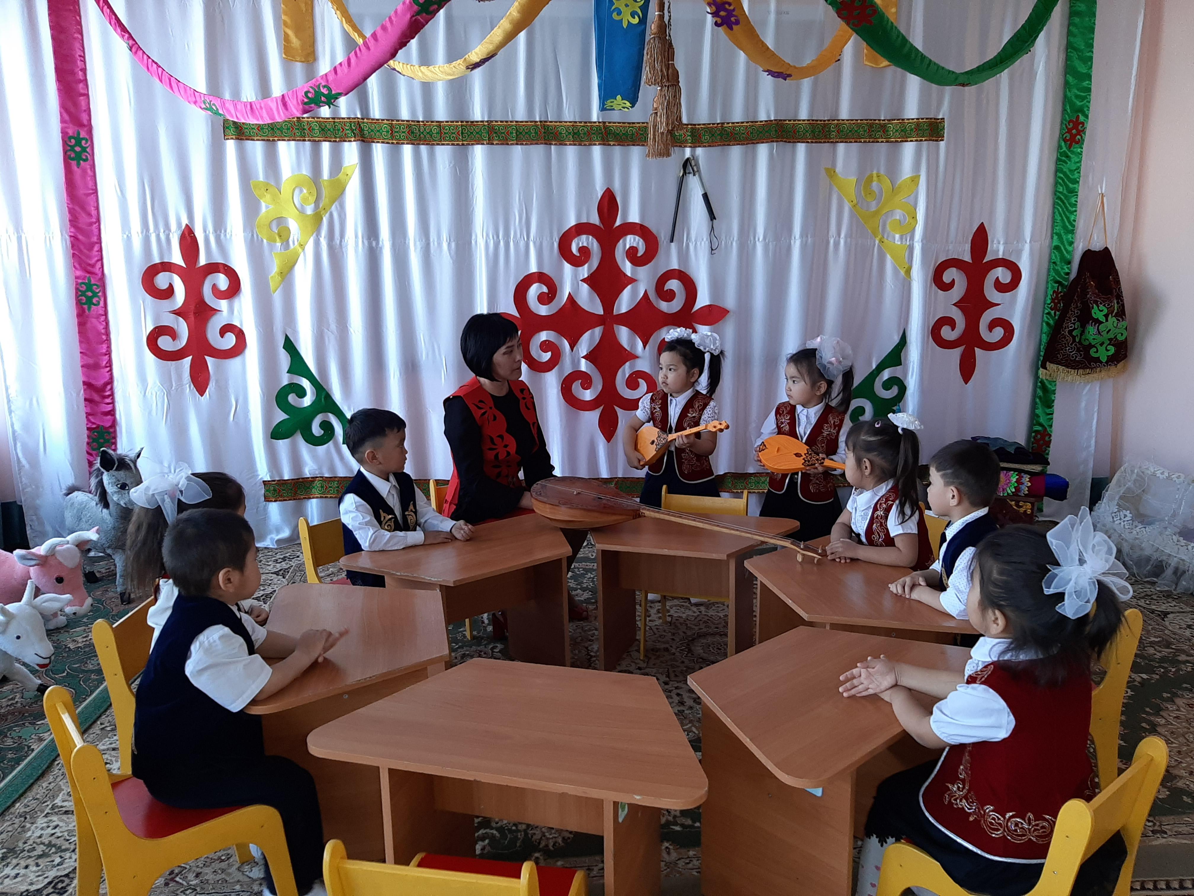 Тәуелсіздіктің 30 жылдық мерекесіне, Домбыра күніне орай тіл маманы Л.А.Кенжекулова "Ботақан" ересек тобы балаларымен "Күмбірле, асыл домбыра" тақырыбында тәрбие сағатын өткізді.