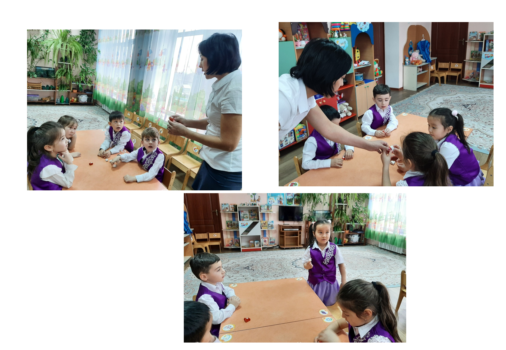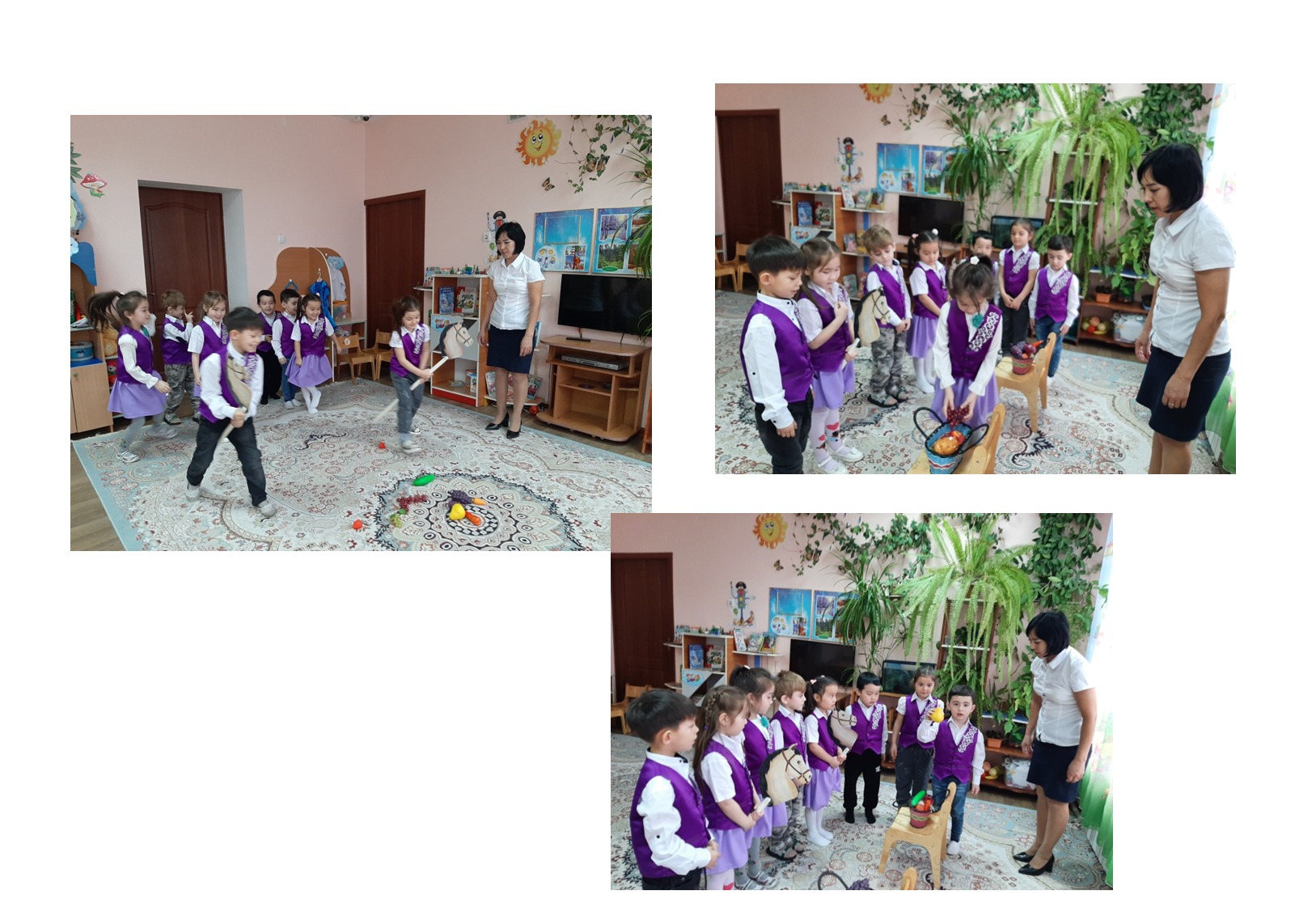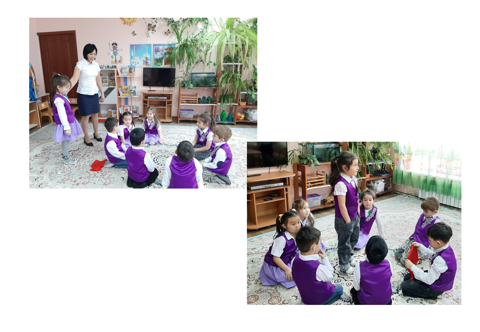 № 4 педагогикалық кеңесте тіл маманы Л.А. Кенжекулова педагогтарға балаларды ұлттық ойындар арқылы тәрбиелеу мақсатында "Кел, ойнайық!" тақырыбында шебер-сынып көрсетті. Топтық жұмыс жүргізілді. Балалар, "Мақал-мәтелдер" айтып, жұмбақ шешіп жарысты. Ұлттық ойындар "Тай жарысы", "Теңге алу", "Орамал тастамақ", ойындары ойналды. Ою-өрнектерді құрастырды. Соңында балалар "Менің Отаным" әнән орындады.