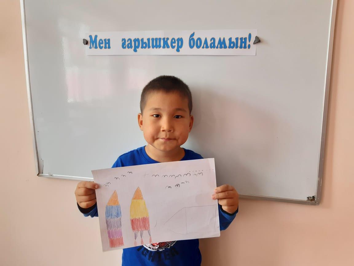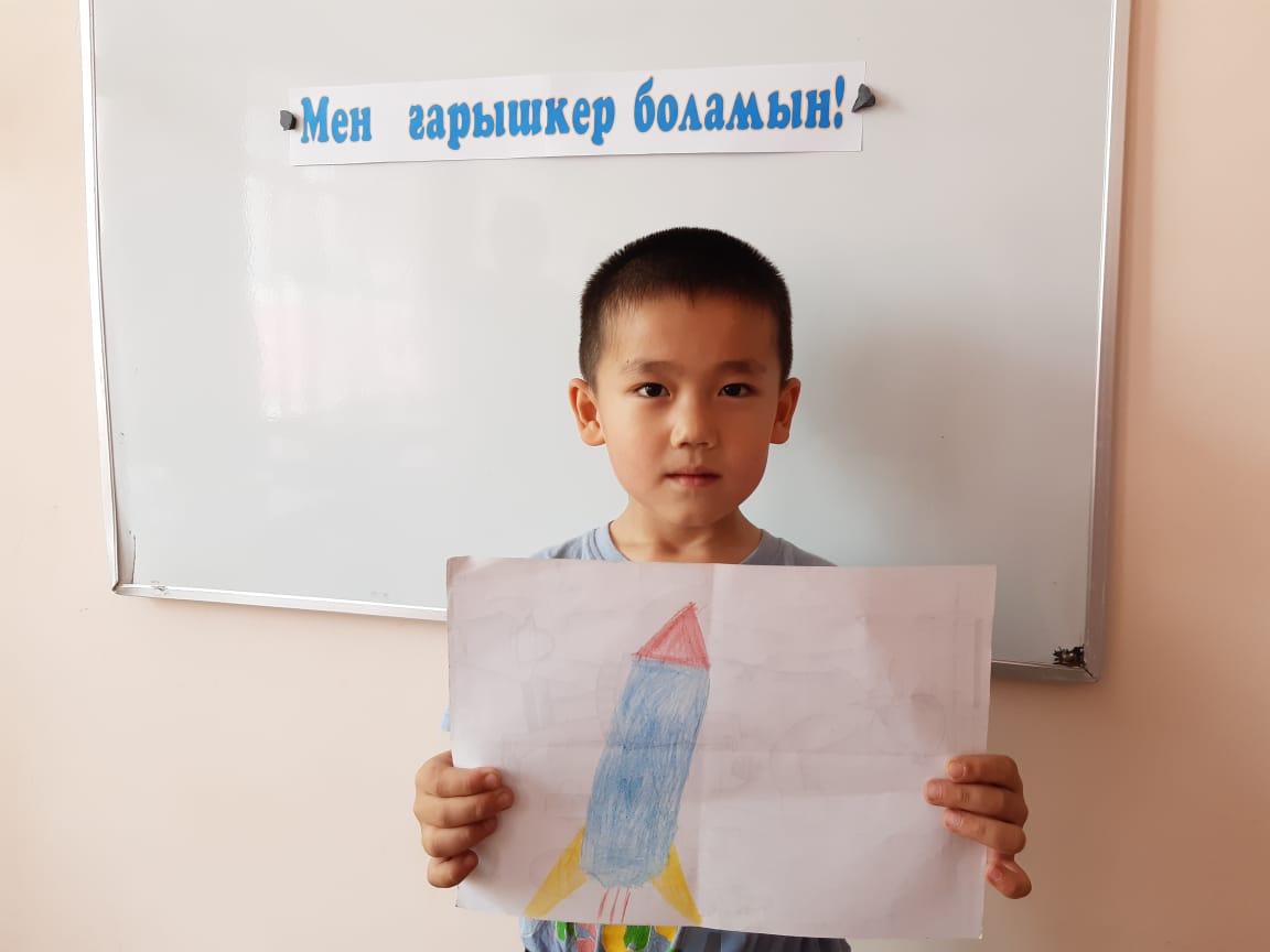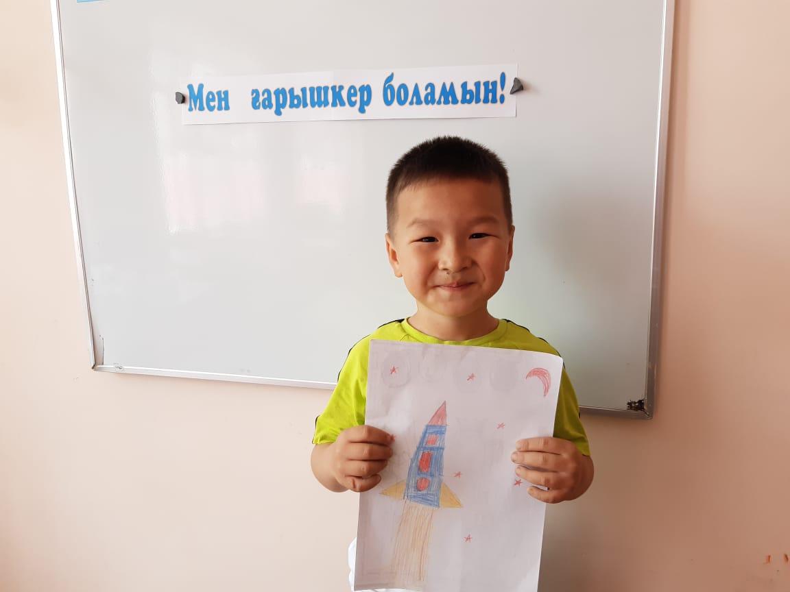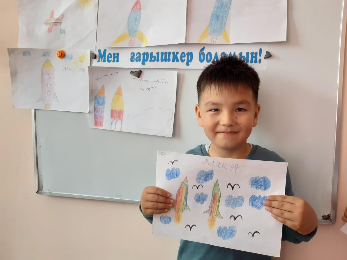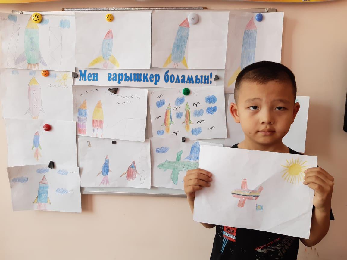12-сәуір Ғарышкерлер күніне орай "Айгөлек" мектепалды тобымен бейнелеу өнері жетекшісі А.Т. Садыбаева "Мен ғарышкер боламын" тақырыбында ұйымдастырылған оқу қызметін өткізді. Оқу қызметі барысында балалардың ғарыш, ғарышкер туралы білімдері, шығармашылық қабілеттері артты. Балалар Ғарыш кемесінің суретін салды.