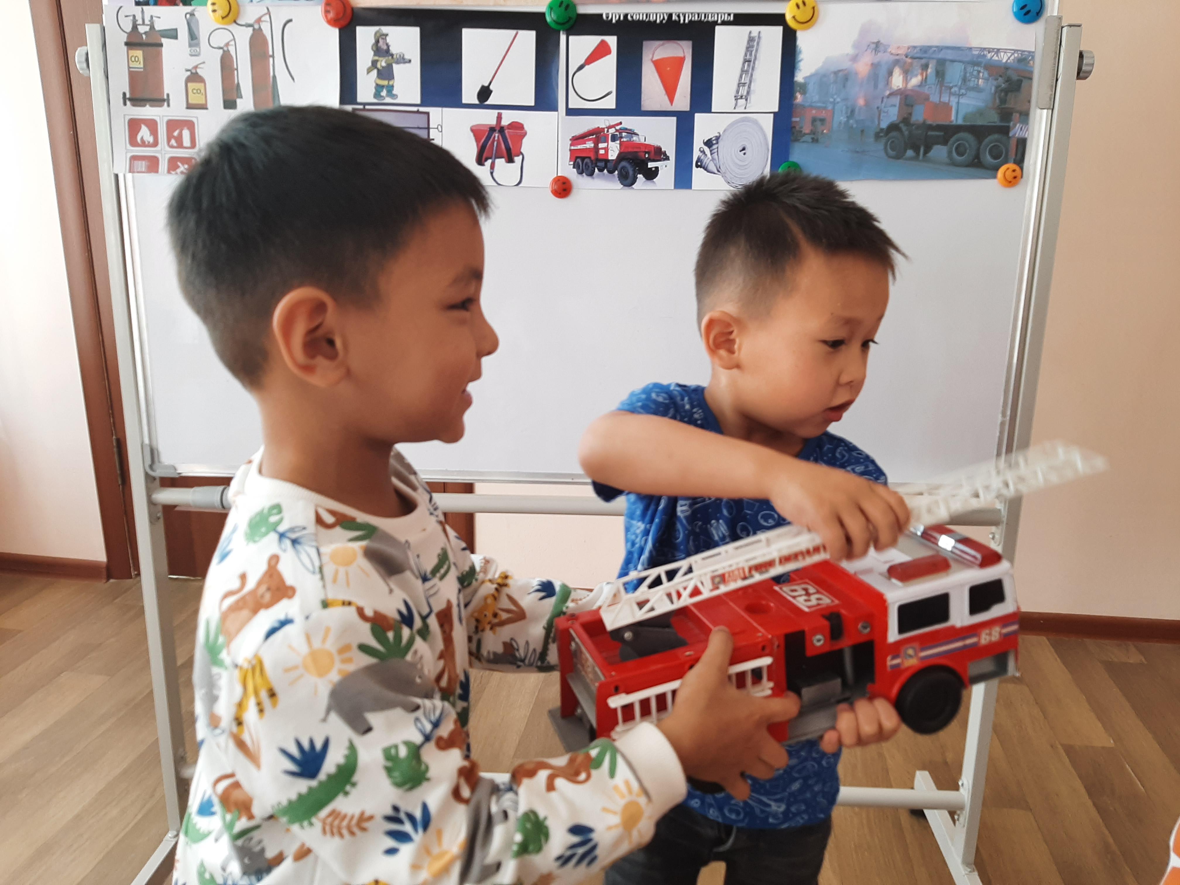 Тәрбиеші А.К. Ярыханова «Ботақан» ересек тобымен «Өрт сөндіру көлігі» тақырыбында ойын-сауық өткізді.
