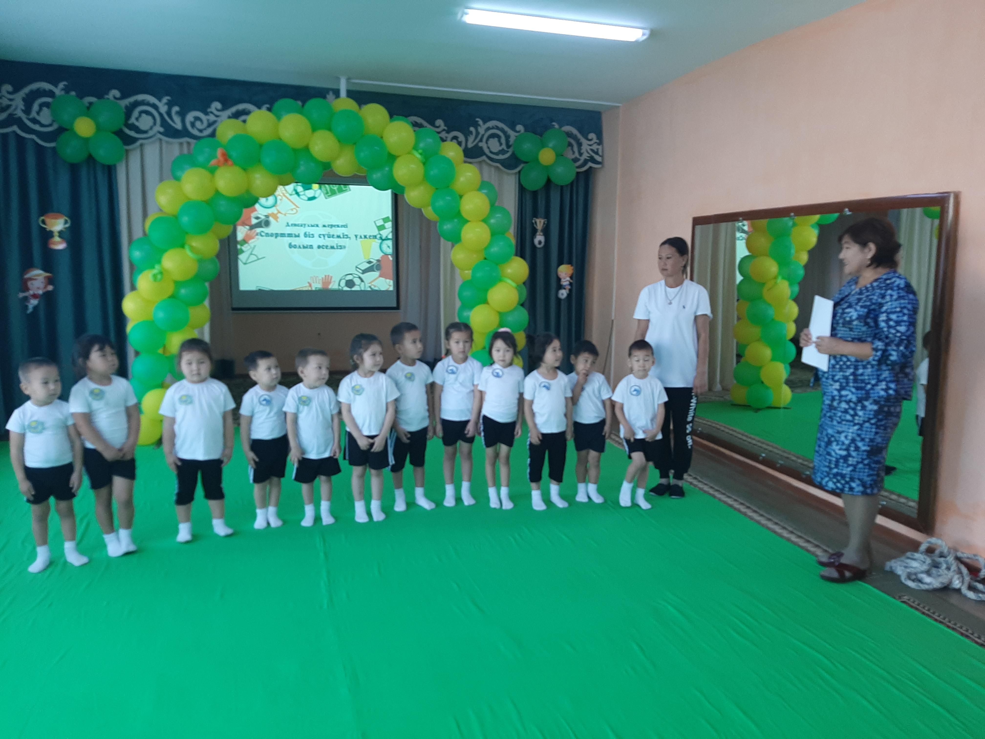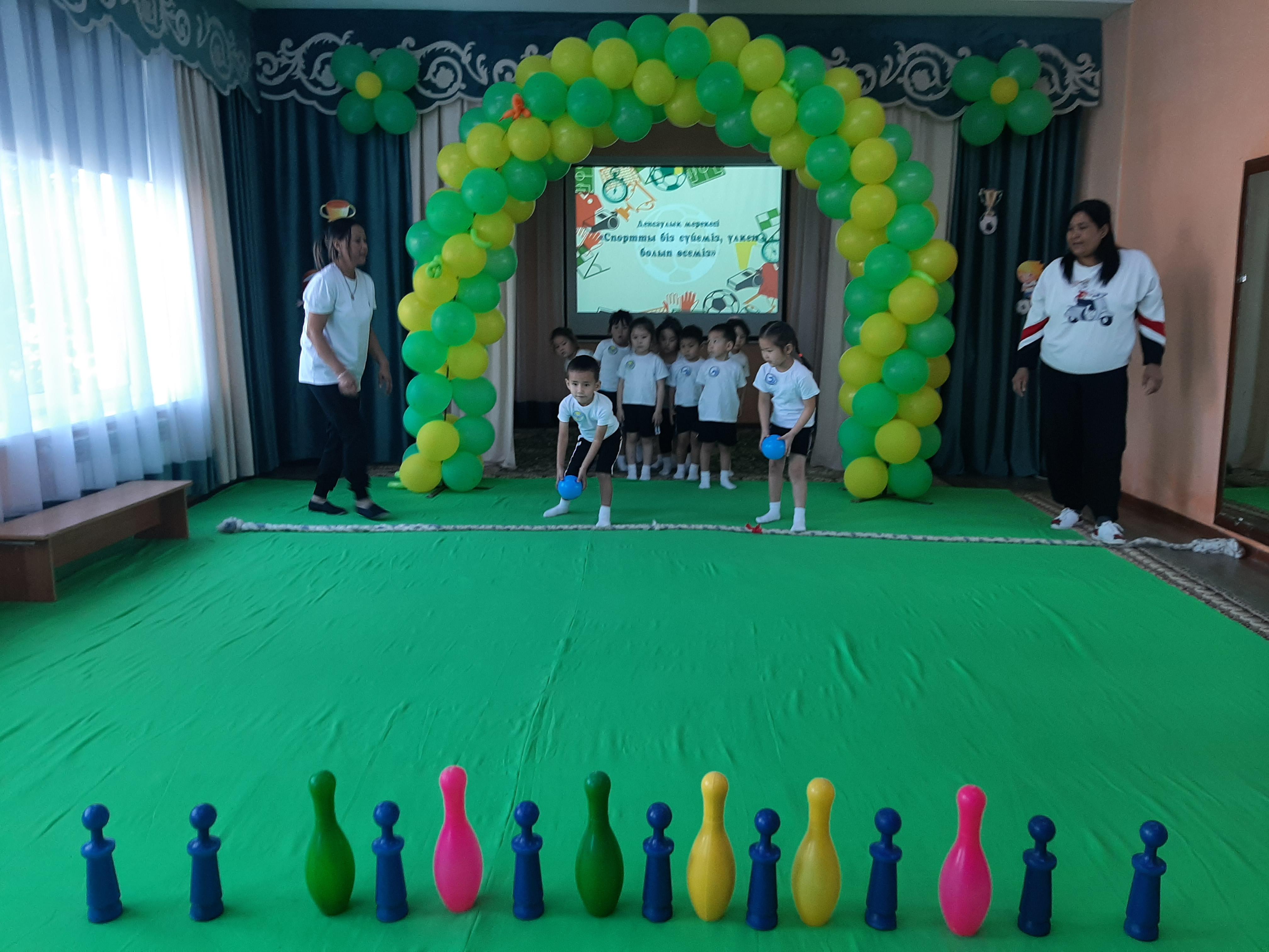 Әр топ өз ұрандарын айтты. "Кім жылдам", "Кедергіден өту", "Доппен секіру", "Кегілді доппен құлату", "Арқан тарту" кезеңдері бойынша балалар өз белсенділіктерін көрсетті. Жеңімпаз топ анықталып, екі топқа да мақтау қағазы беріліп марапатталды.