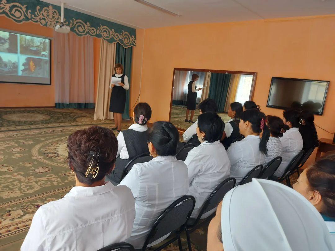ТЖ бойынша қоғамдық инспекторы О.П. Трибунцева "Табиғат апатынан қорғану" тақырыбында қызметкерлерге кеңес берді. Төтенше жағдай болып қалған жағдайда көшіру шығатын жолдары туралы түсіндіру жұмысын жүргізді. Барлық қызметкерлер қатысып, ТЖ жағдайында қорғану әдістерін меңгерді.