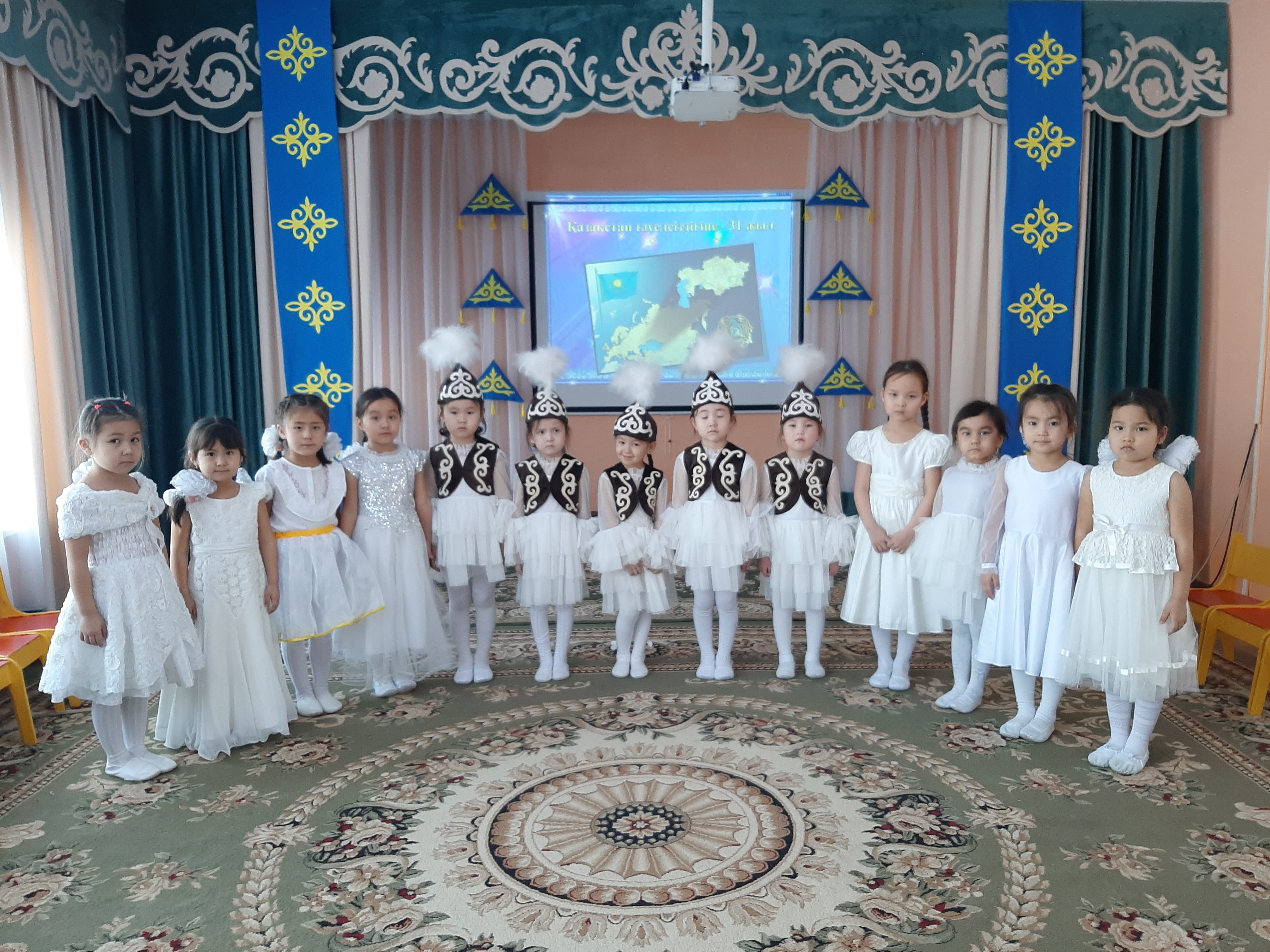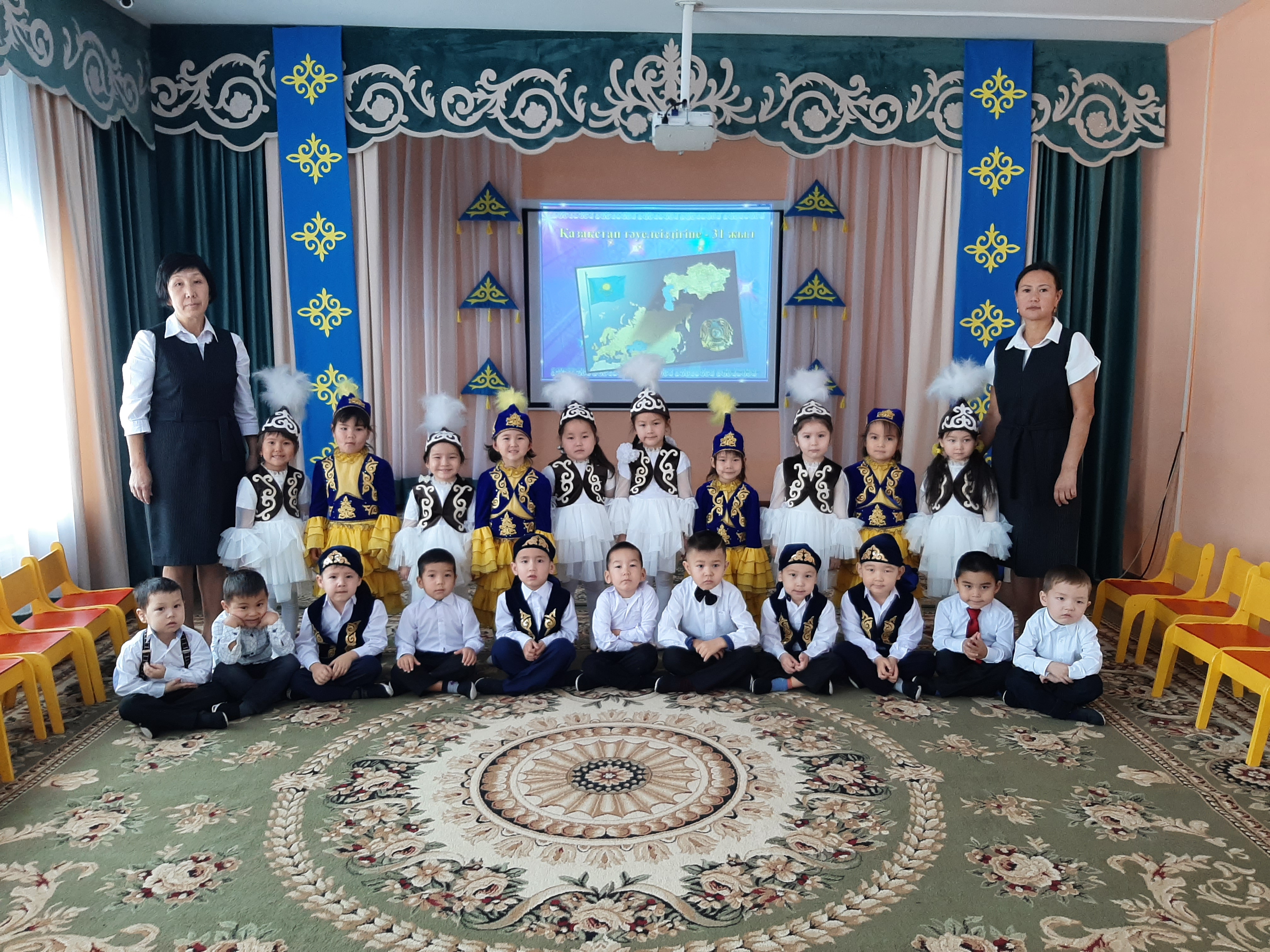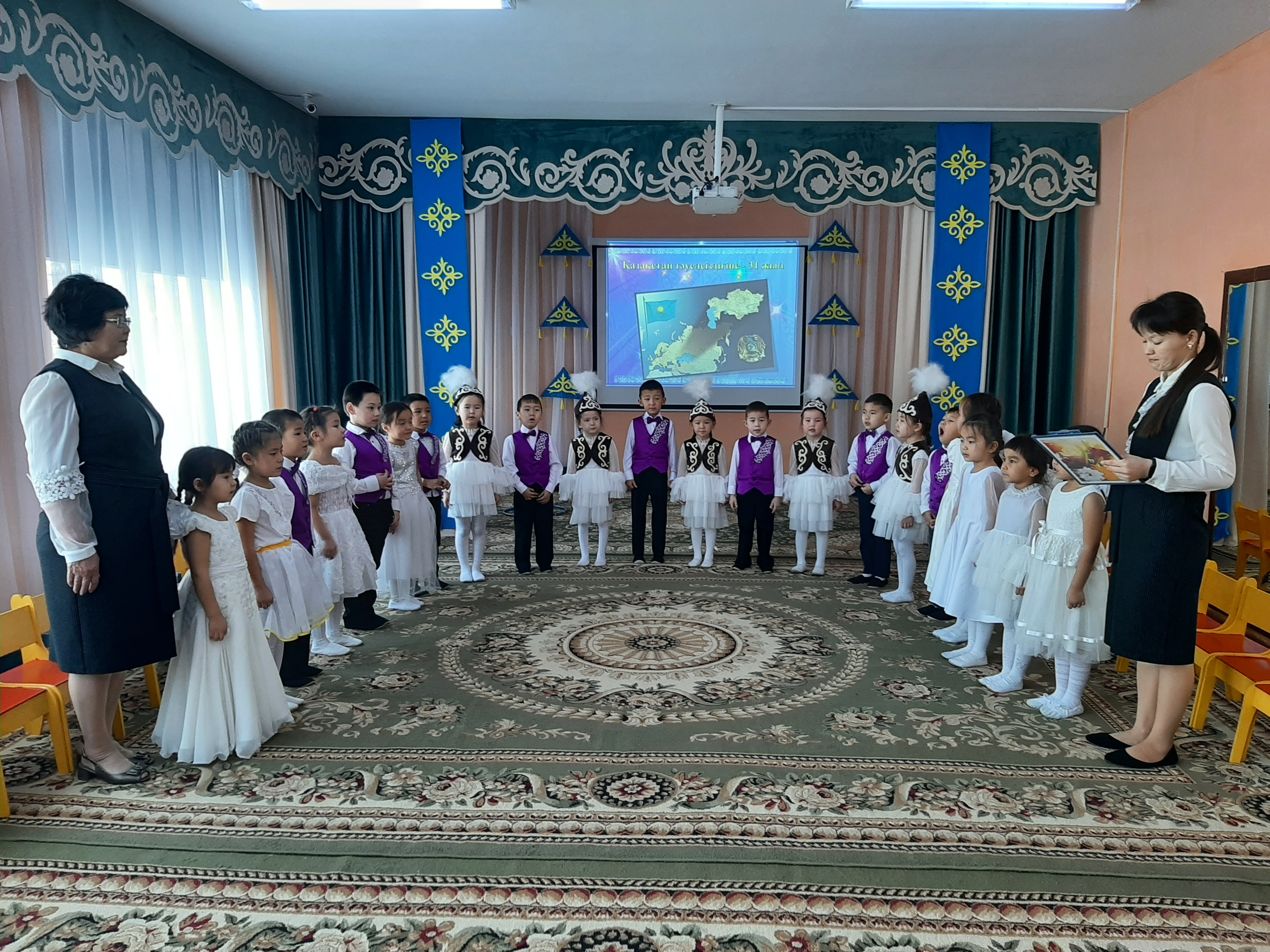 "Айгөлек" мектепалды тобының тәрбиешісі Н.А.Сарсенбекова тәрбиеленушілерге тәуелсіздік күні мерекесі туралы кеңінен түсінік берді. Балалар Отан, Тәуелсіздік, туған жер туралы тақпақтар, мақал-мәтелдер айтты. Балалардың бойында Отанға деген патриоттық сезім қалыптасты.