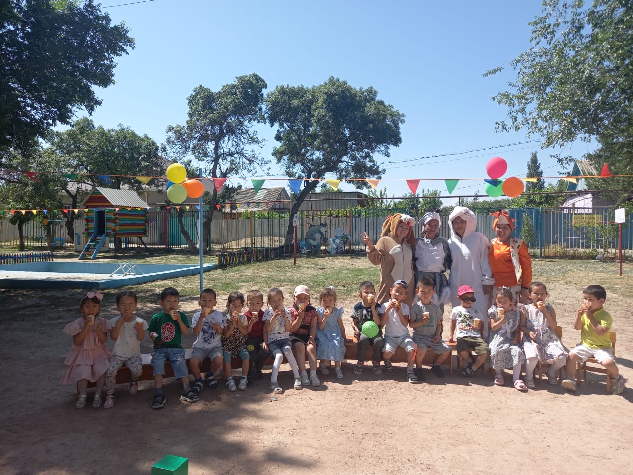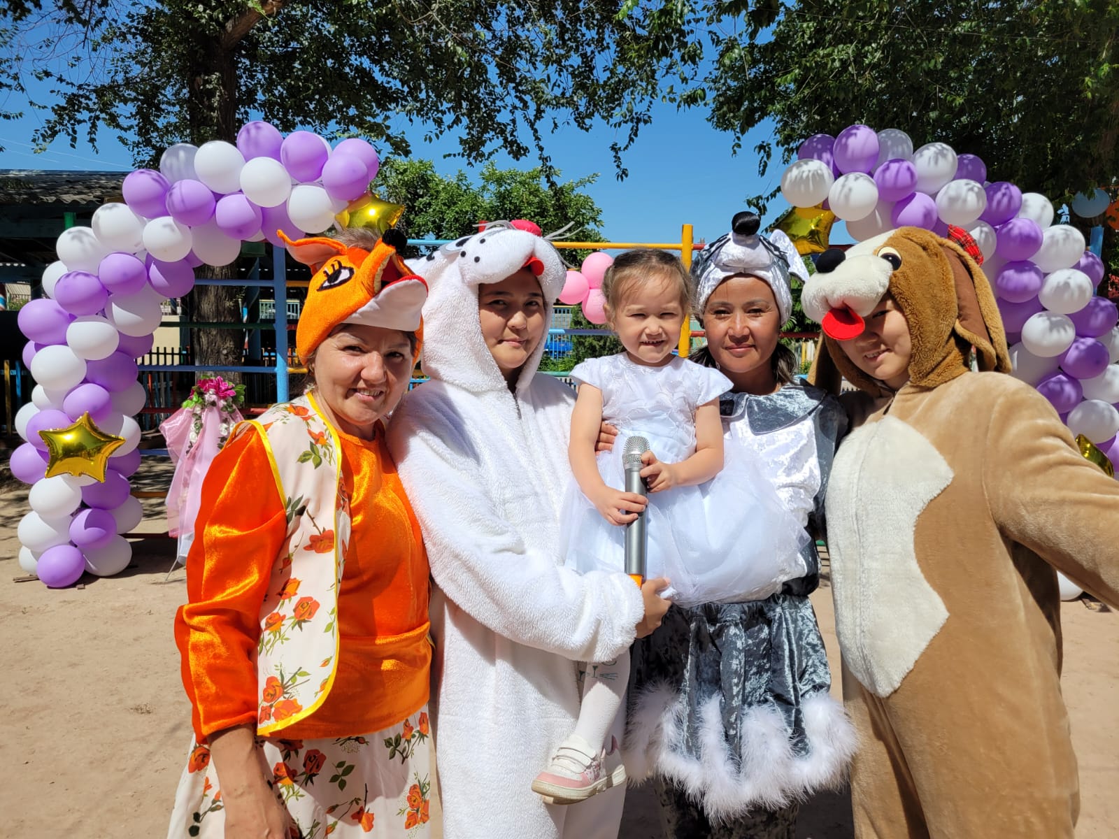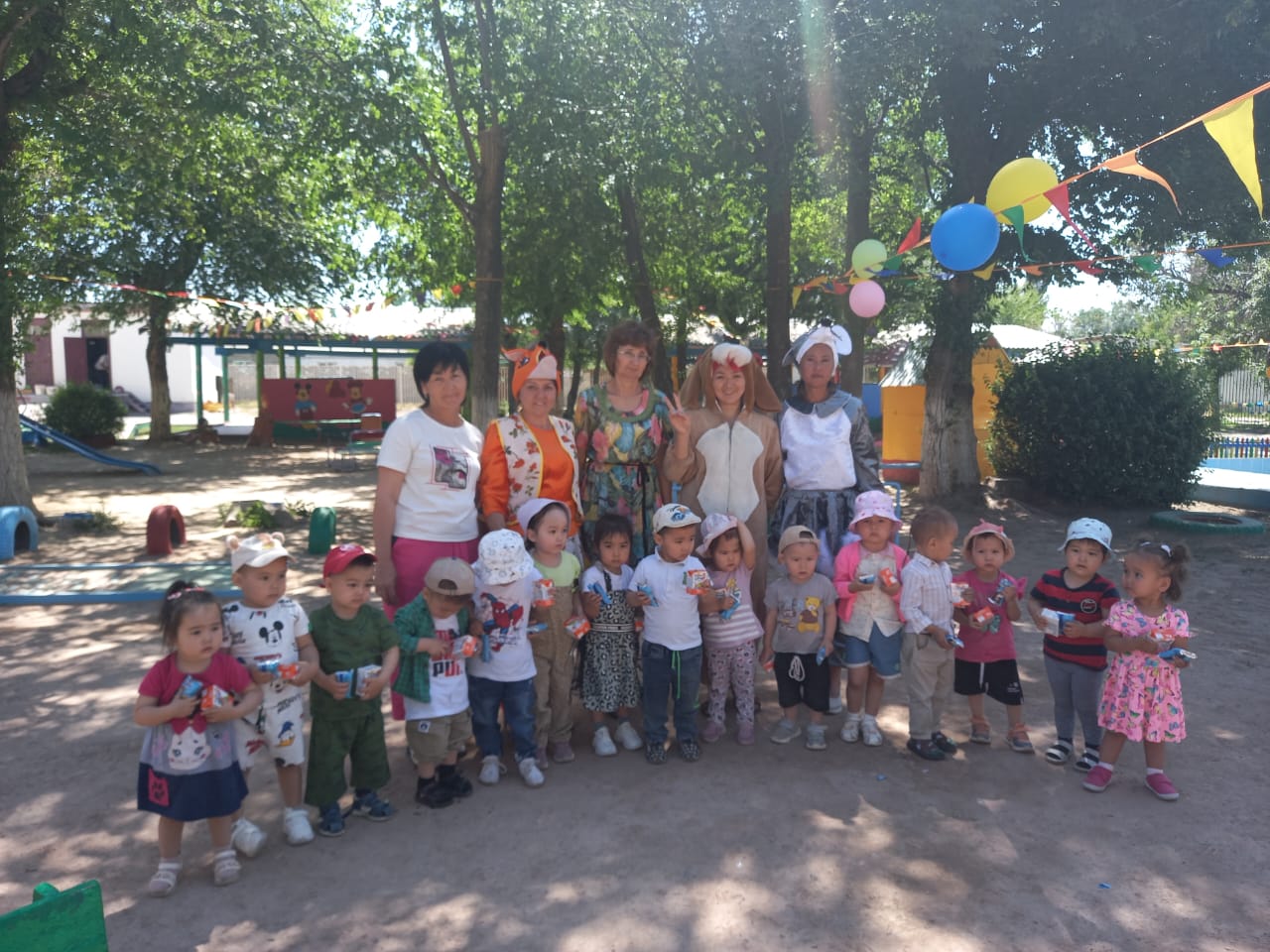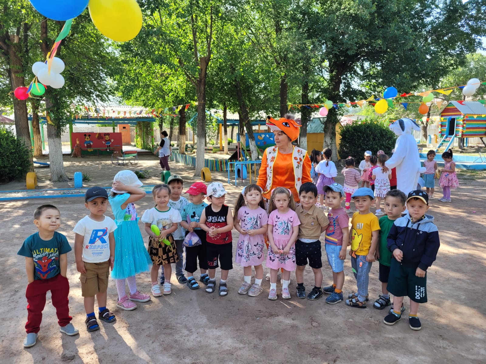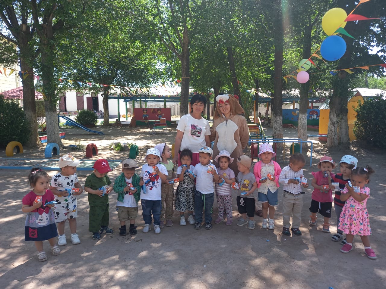 Балаларды қорғау күніне орай "Біз бақытты балдырған" тақырыбында ойын-сауық өткізілді. Балалардың көңілін көтеру мақсатында ата-аналар тәтті сыйлықтар сыйлап, балабақша мен ата-ана арасындағы ынтымақтастықты танытты. Ойын-сауықта балалар қызықты ойындар ойнап, тақпақтарын, әндерін айтты. Көңілді кейіпкерлер балаларды қызықтырып, қуанышқа бөледі.