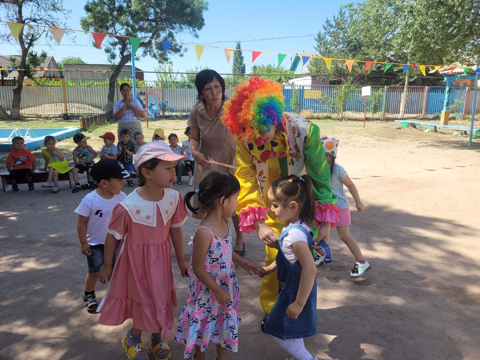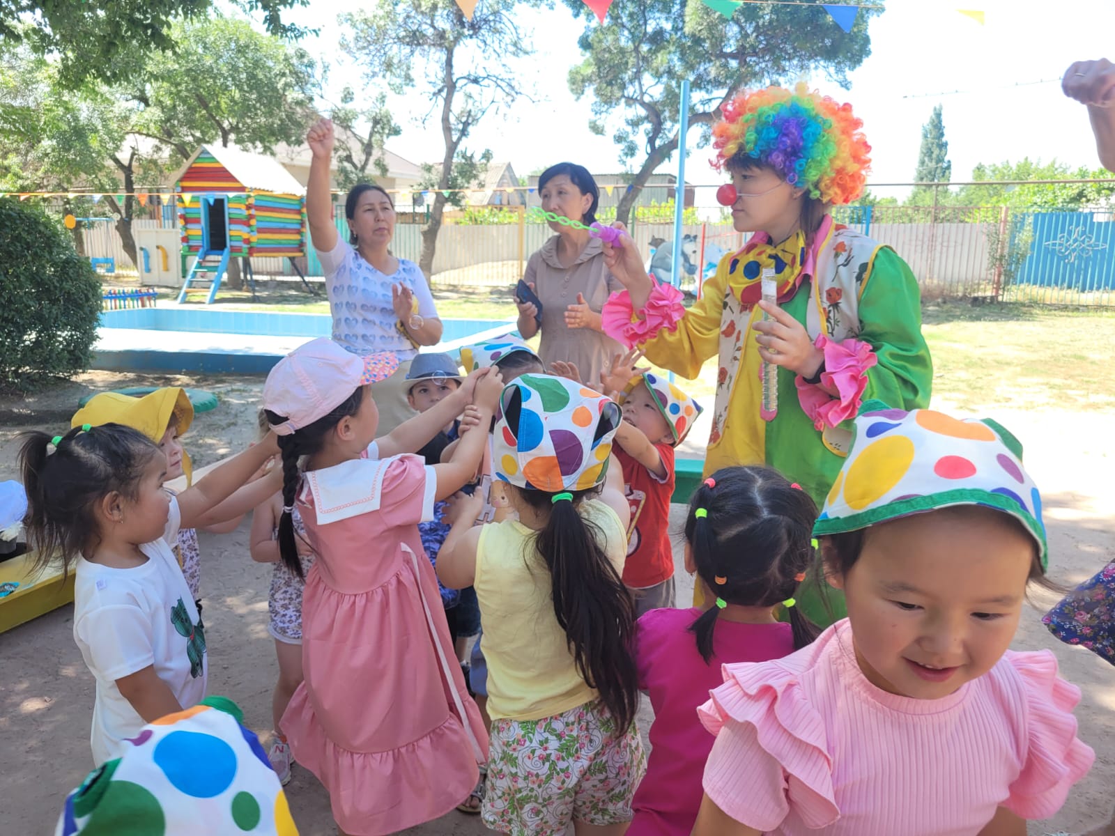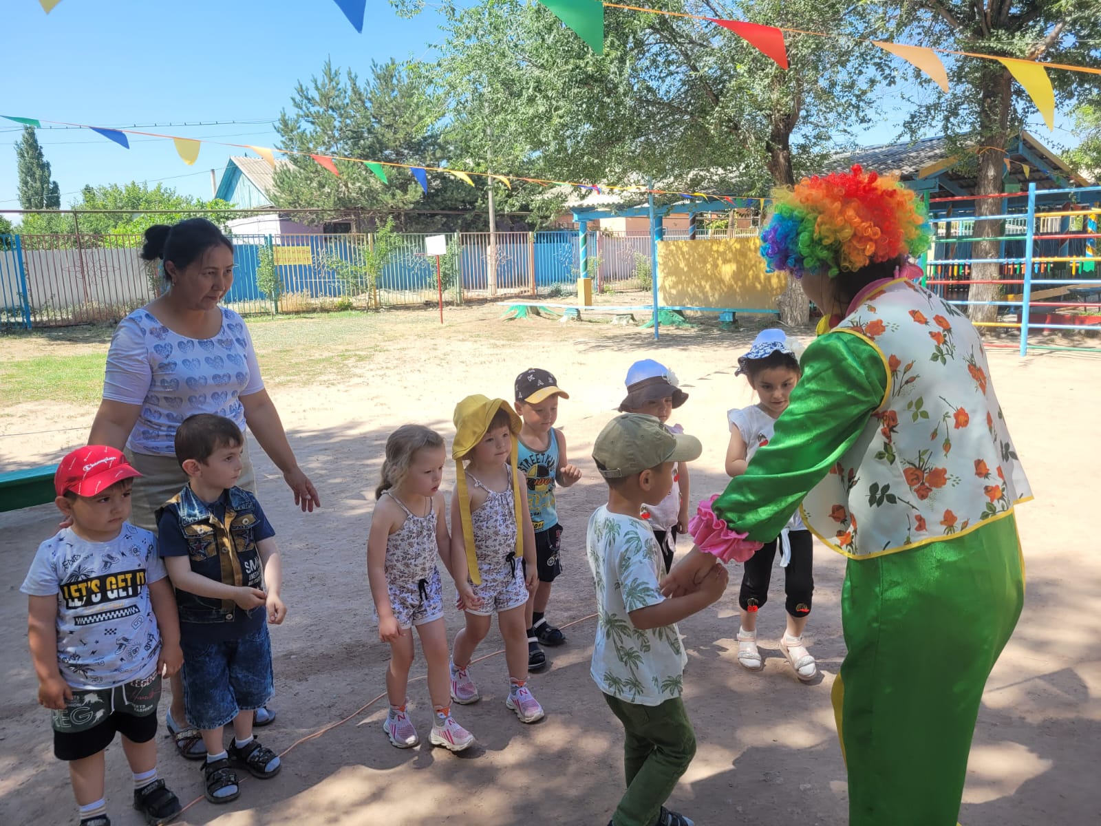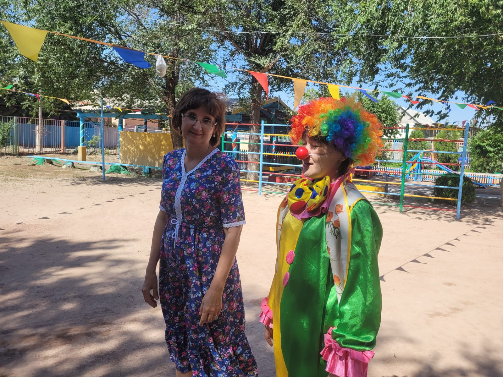 "Жазғы қуаныш" апталығы өткізілуде. Апталықтың жоспарына сай музыка жетекшісі Трибунцева О.П. тәрбиеленушілермен "Давай поиграем с клоуном" атты ойын-сауық өткізді. Қонаққа Сайқымазақ келіп, балалармен ойындар ойнап, би билеп, балақайлардың көңіл-күйлерін көтерді.