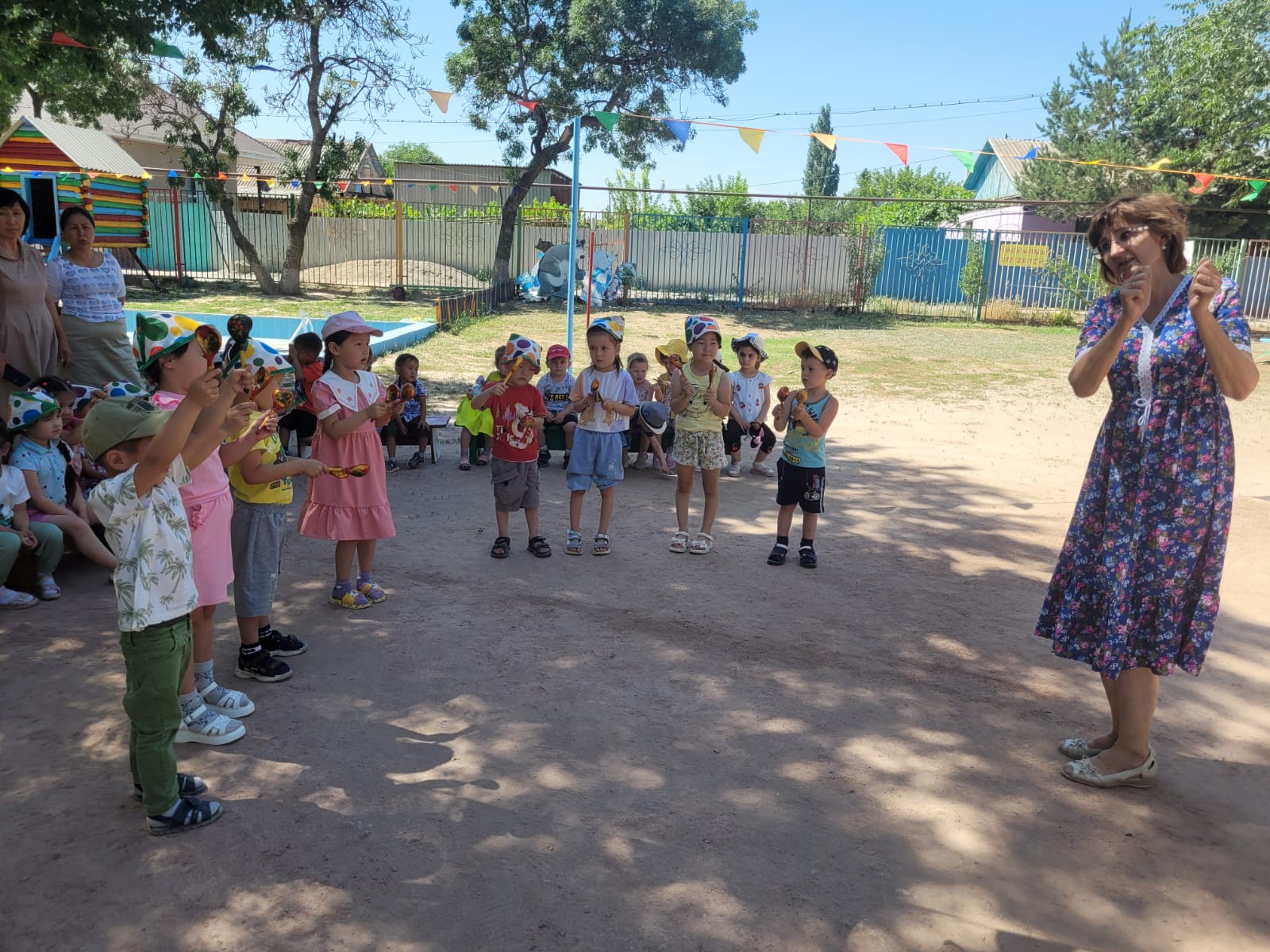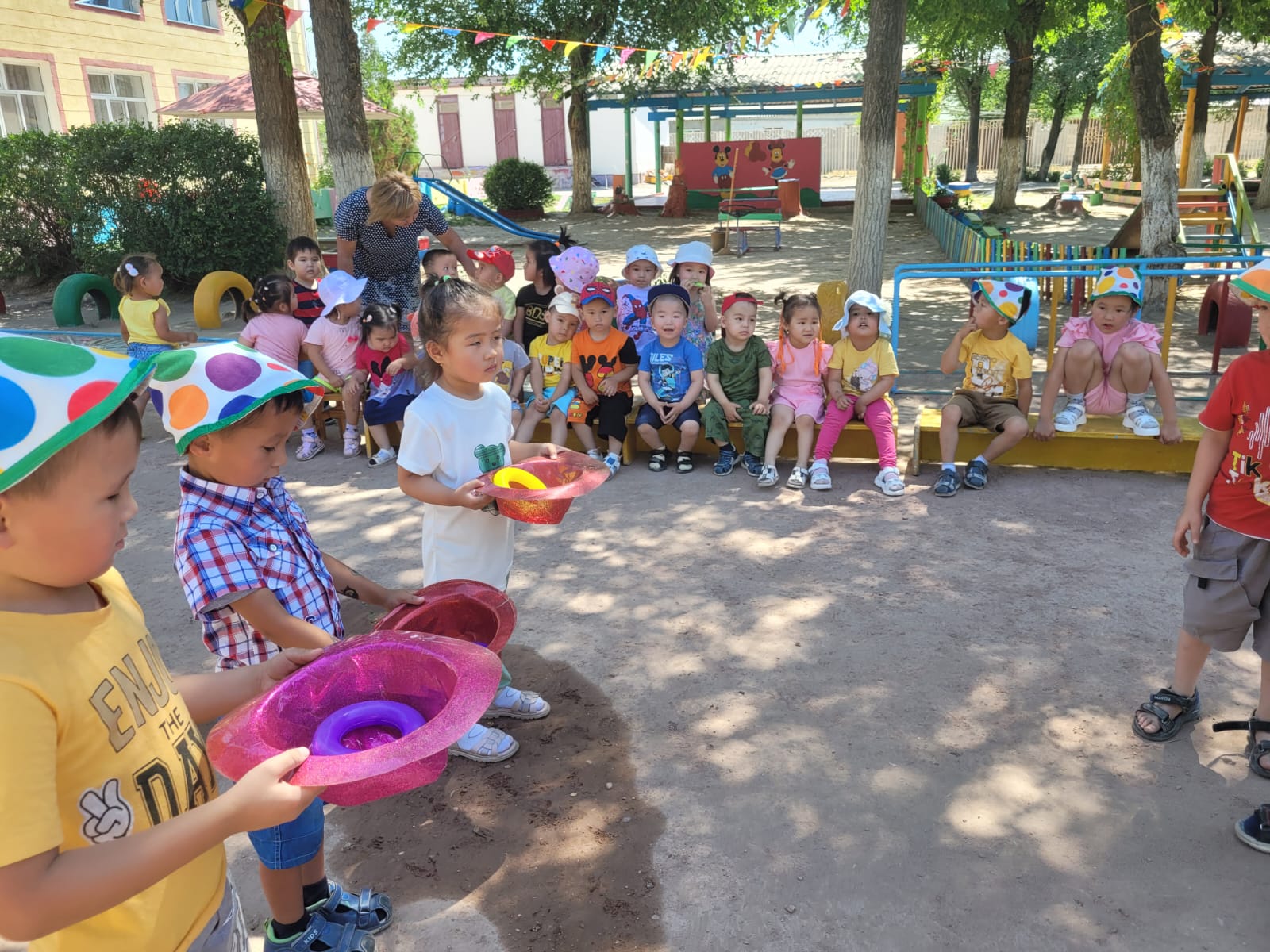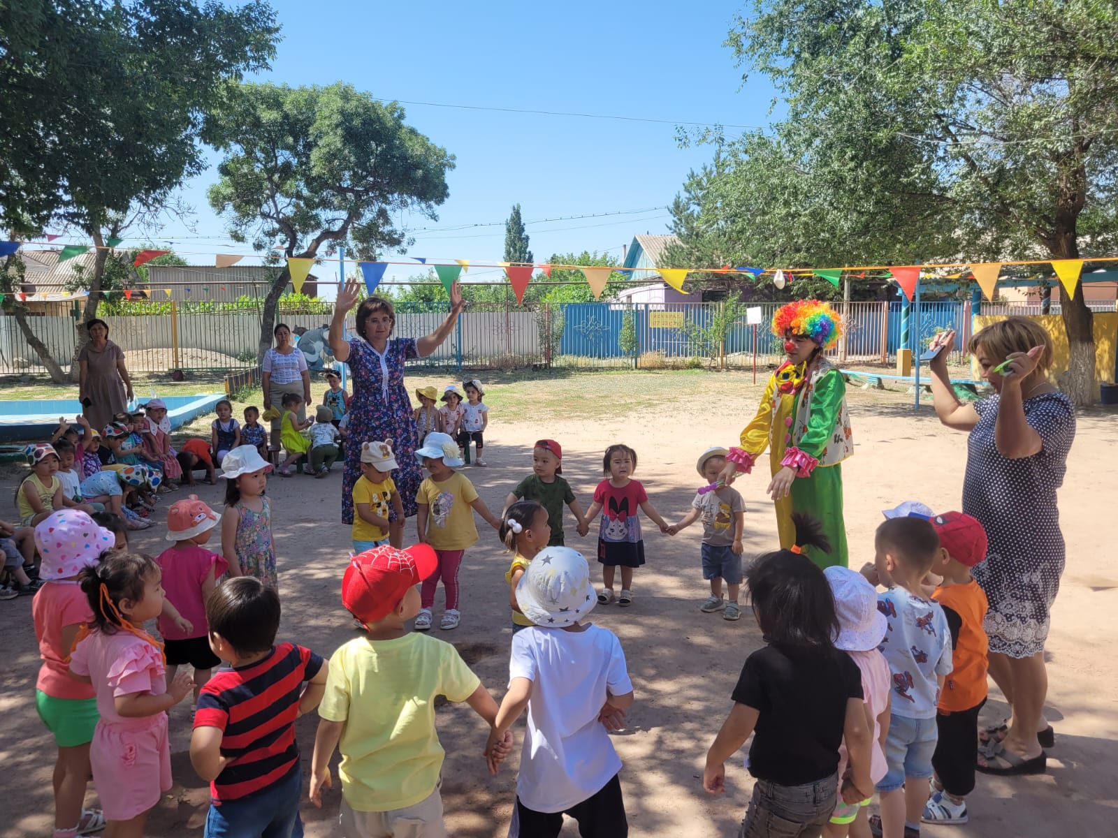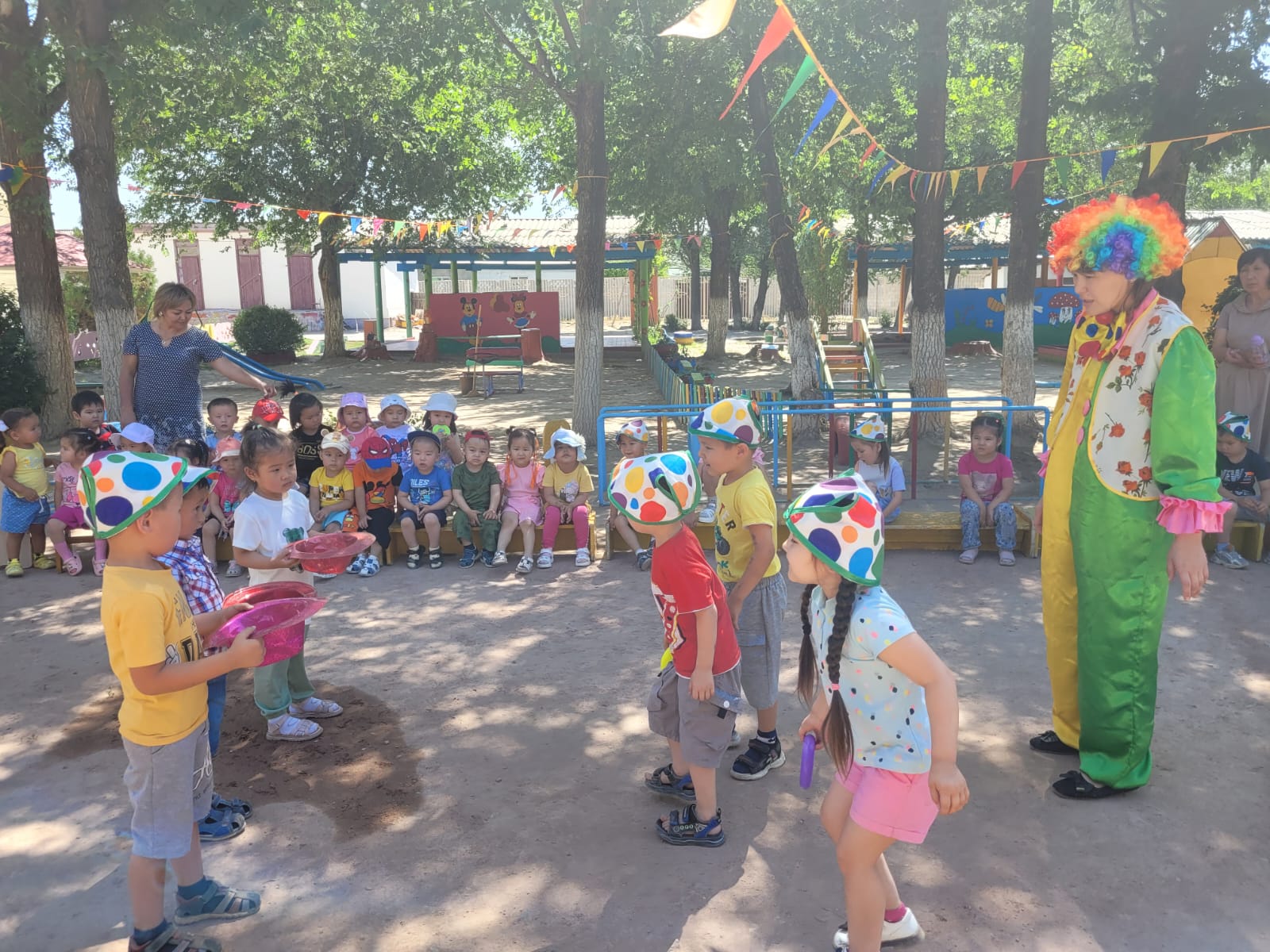 "Жазғы қуаныш" апталығы өткізілуде. Апталықтың жоспарына сай музыка жетекшісі Трибунцева О.П. тәрбиеленушілермен "Давай поиграем с клоуном" атты ойын-сауық өткізді. Қонаққа Сайқымазақ келіп, балалармен ойындар ойнап, би билеп, балақайлардың көңіл-күйлерін көтерді.