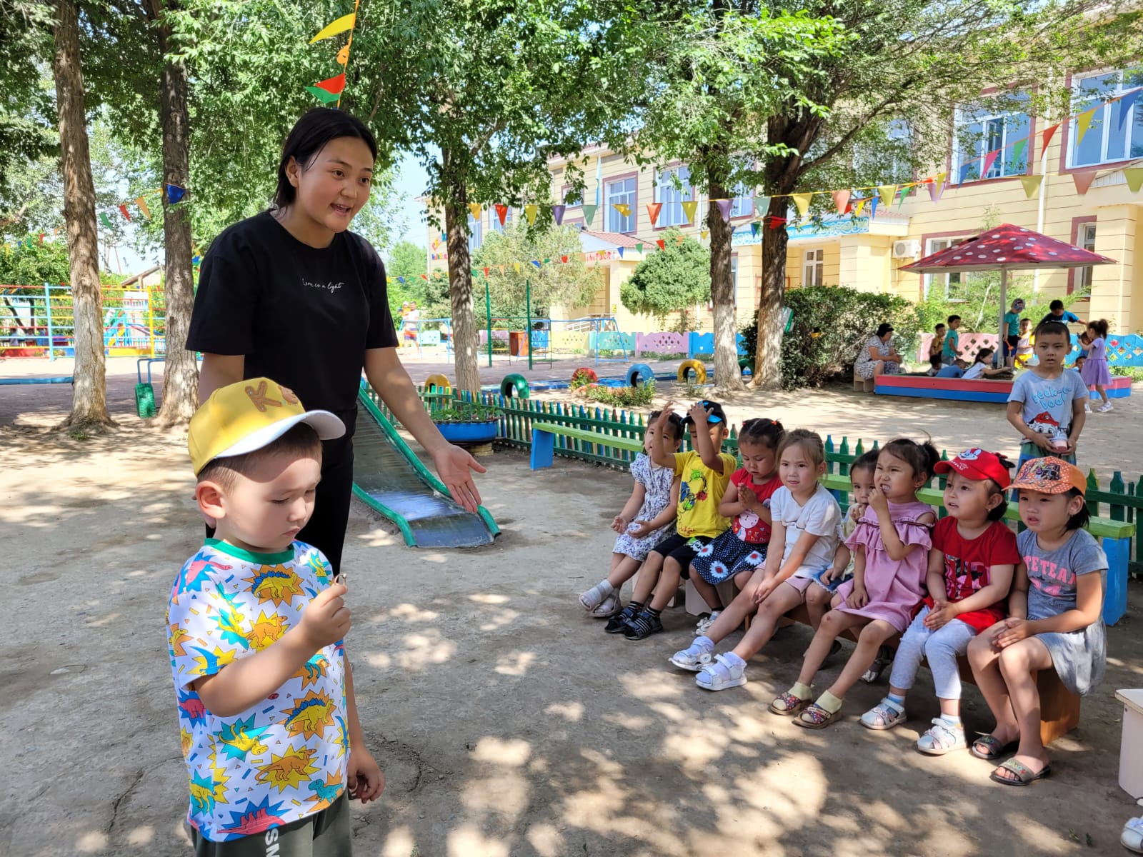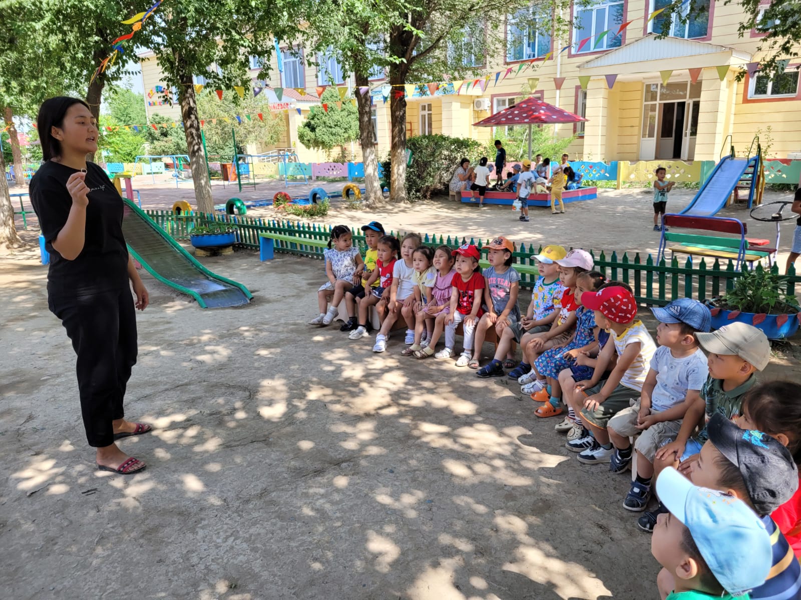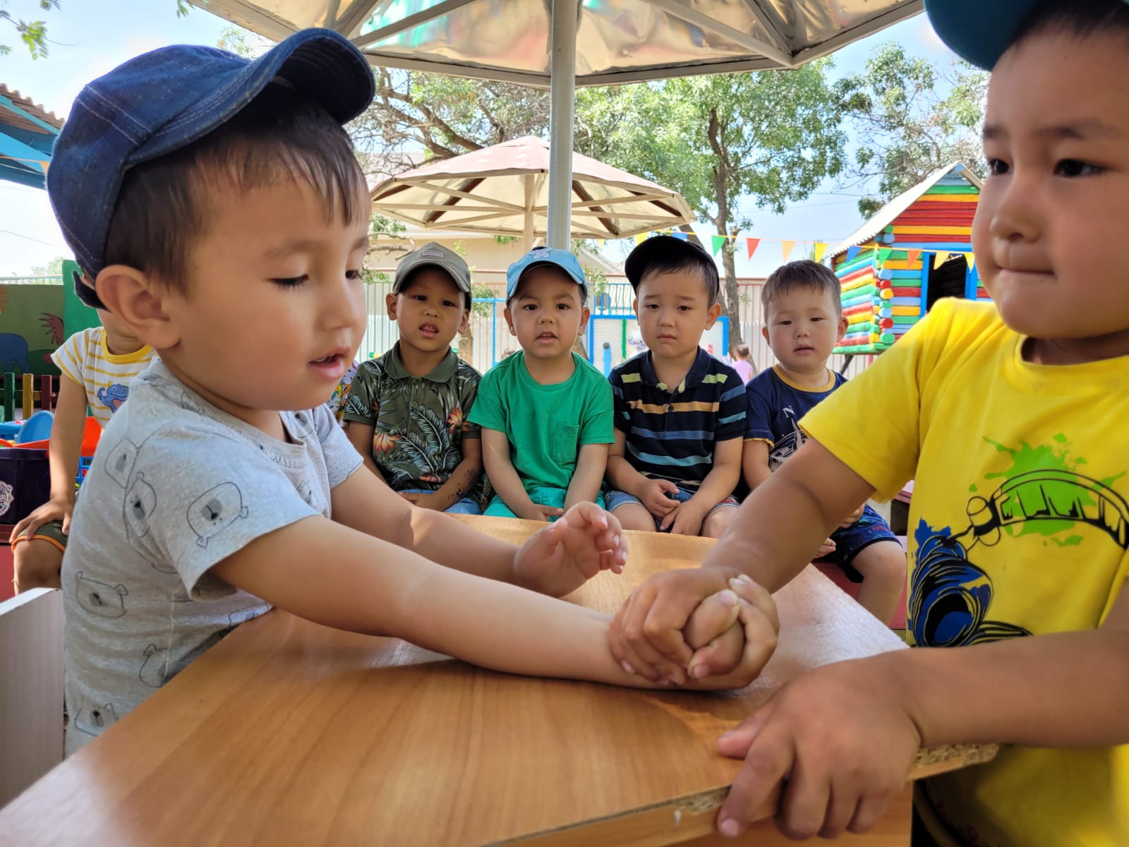 14.06.2023ж. күні "Денсаулық" апталығы өткізілуде. Апталықтың жоспарына сай «Ботақан» ересек тобының тәрбиешісі Абилсеитова Н.П. "Ұлттық ойындар" тақырыбында «Қол күрес», «Асық ату », «Сақина тастамақ», «Ақ серек, көк серек» ұлттық ойындар ойнатылды.Ойын кезінде жасалған қимыл-қозғалыстар балалардың ептілік , шапшаңдық, күштілік, батылдық, төзімділік қабілеттерін дамытуға ықпал етті. Ойын барысында балалар бір-бірімен жақын араласып, тату, ұйымшыл болуға жұмылдырылды.