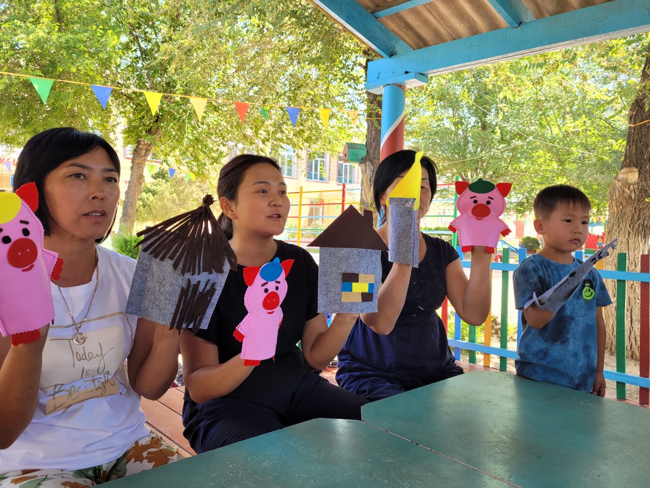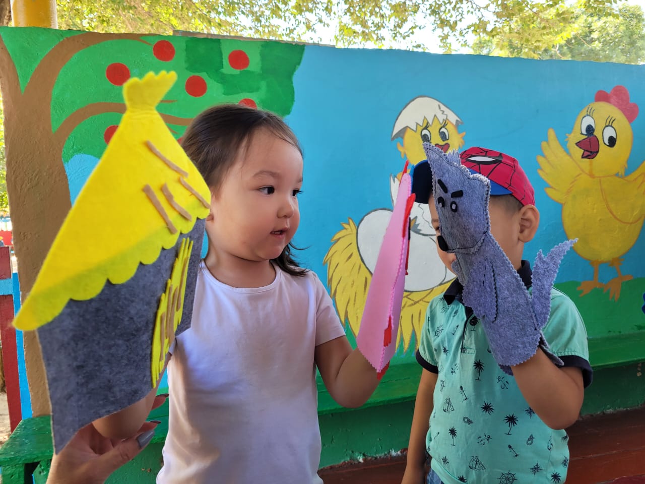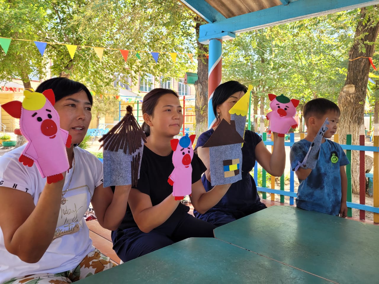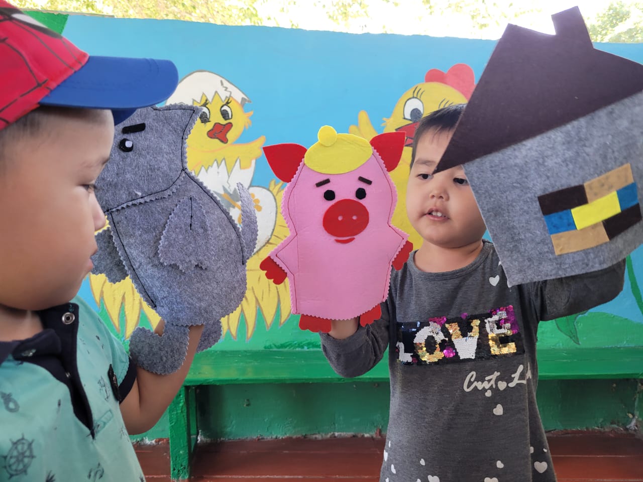 26.06.2023 ж. күні "Өнер апталығы" апталығы өткізілуде. Апталықтың жоспарына сай педагогтер қолғап театры арқылы «Үш торай » ертегісін сахналады. Сахналау барысында балалар кейіпкерлердің жағымды және жағымсыз қасиеттері мен олардың әрекеттерін танып, оларды атай білді. Сонымен қатар балалар ертегі мазмұны бойынша өздері де сахналап, қойылған сұрақтарға жауап берді.
