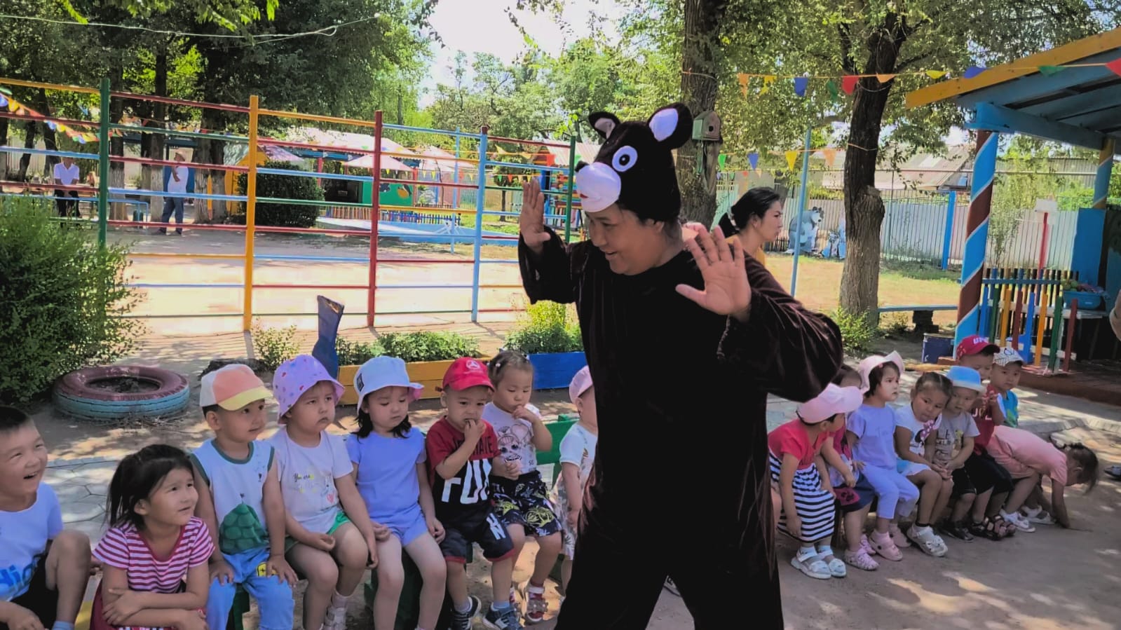 Мақсаты: Театр - әр баланың бойына сұлулық пен шығармашылықты қатар сіңдіретін сұлу өнердің бірі. Тәрбиеленушілерге сахна мәдениетімен сахна талабын үйрету мақсатында педагогтер түрлі театрландырылған көріністер «Ормандағы мектеп», «Қасқыр мен аңшы», «Шалқан» қуыршақ театр ертегісін сахыналады. Ең бастысы балалардың көңіл күйлері көтеріңкі болды.