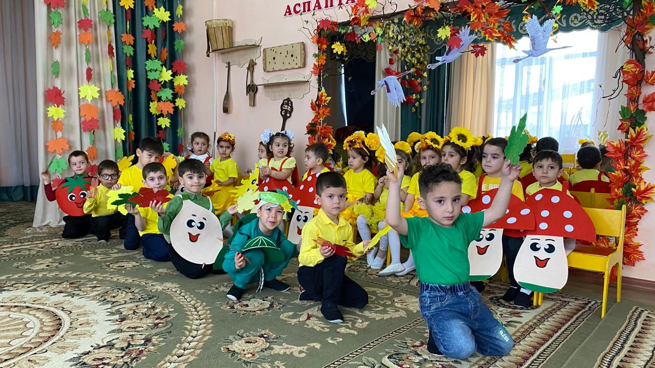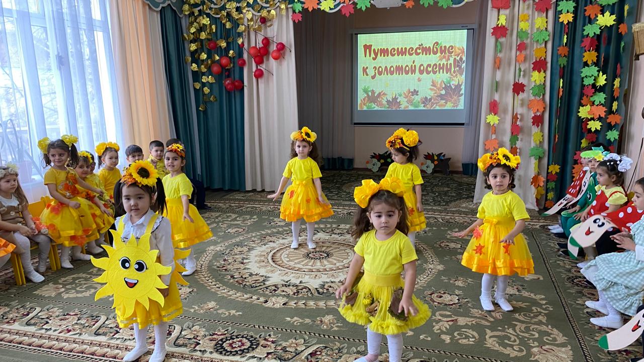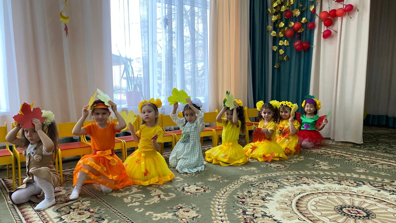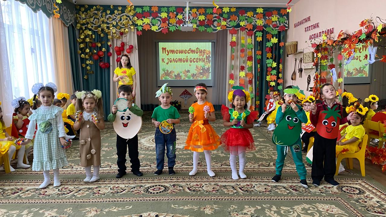 “Березка” ересек тобында күз мезгіліне арналған “Путешествие к золотой Осени” тақырыбында ойын-сауық өткізілді. Балалар күз мезгіліне арналған тақақтарын айтты. Ішке күз мезгілі кіріп, балалардың көңіл күйін көтерді. Балалардың күз мезгілі туралы білімдерін нығайтуға ықпал етті. “Проказница Осень”, “Подсолнухи”, “Грибочки”билерін көңілді биледі. “Что случилось?”, “Осенняя песенка”, “Серый дождик” әндерін орындады. Көкөністер мен жемістердің кимін киіп рольдік тақақтар айтты, Көкөністер оркестрін орындады. Жұмбақтар шешіп, көңілді ойындар ойнады. Балалар мерекені сезініп, күздің сыйлығын алды.