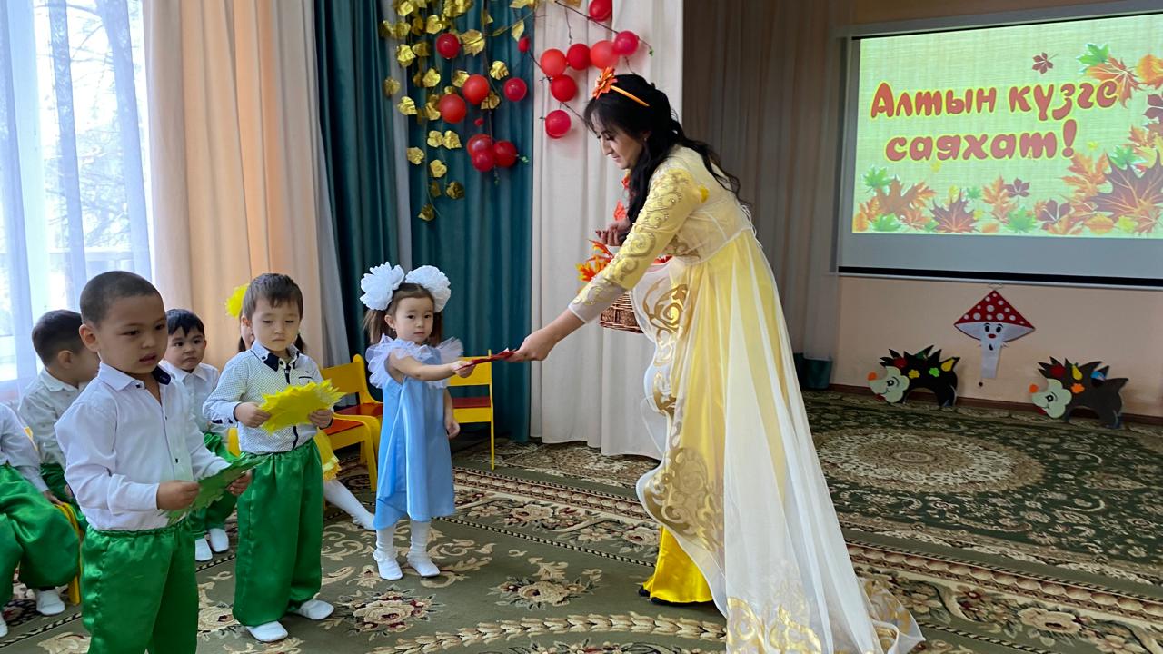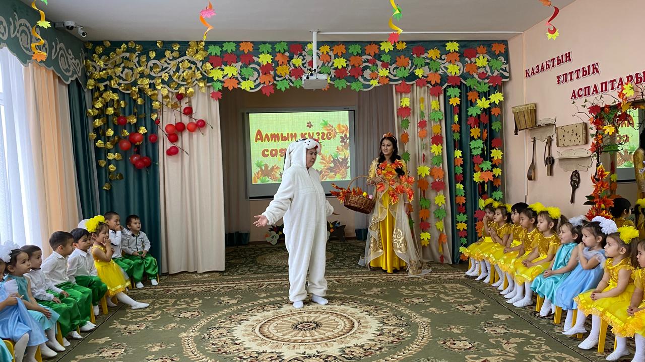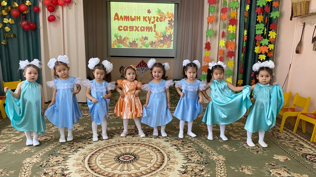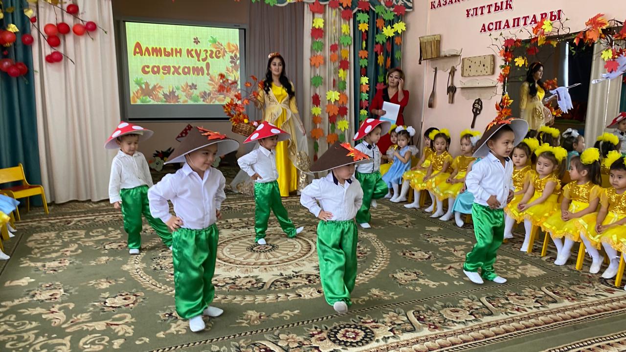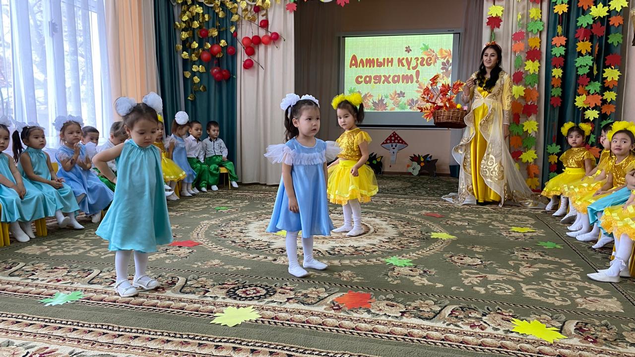 "Ботақан" ортаңғы тобының тәрбиешілері "Алтын күзге саяхат!" тақырыбында ойын-сауық өткізді. Балалар күз мезгіліне байланысты тақпақтар, "Жаңбыр", "Күз келгенде" әнін айтты. "Жапырақтар" "Қолшатыр ", "Саңырауқұлақ " биін биледі. "Жапырақтарды түсіне қарай жина", "Көкөністер мен жемістерді ажырат" ойынын ойнады. Балалардың көңіл-күйі өте тамаша болды.